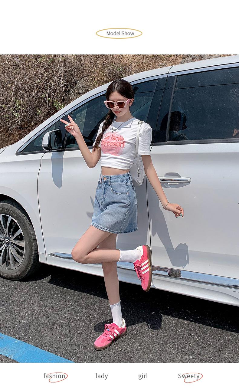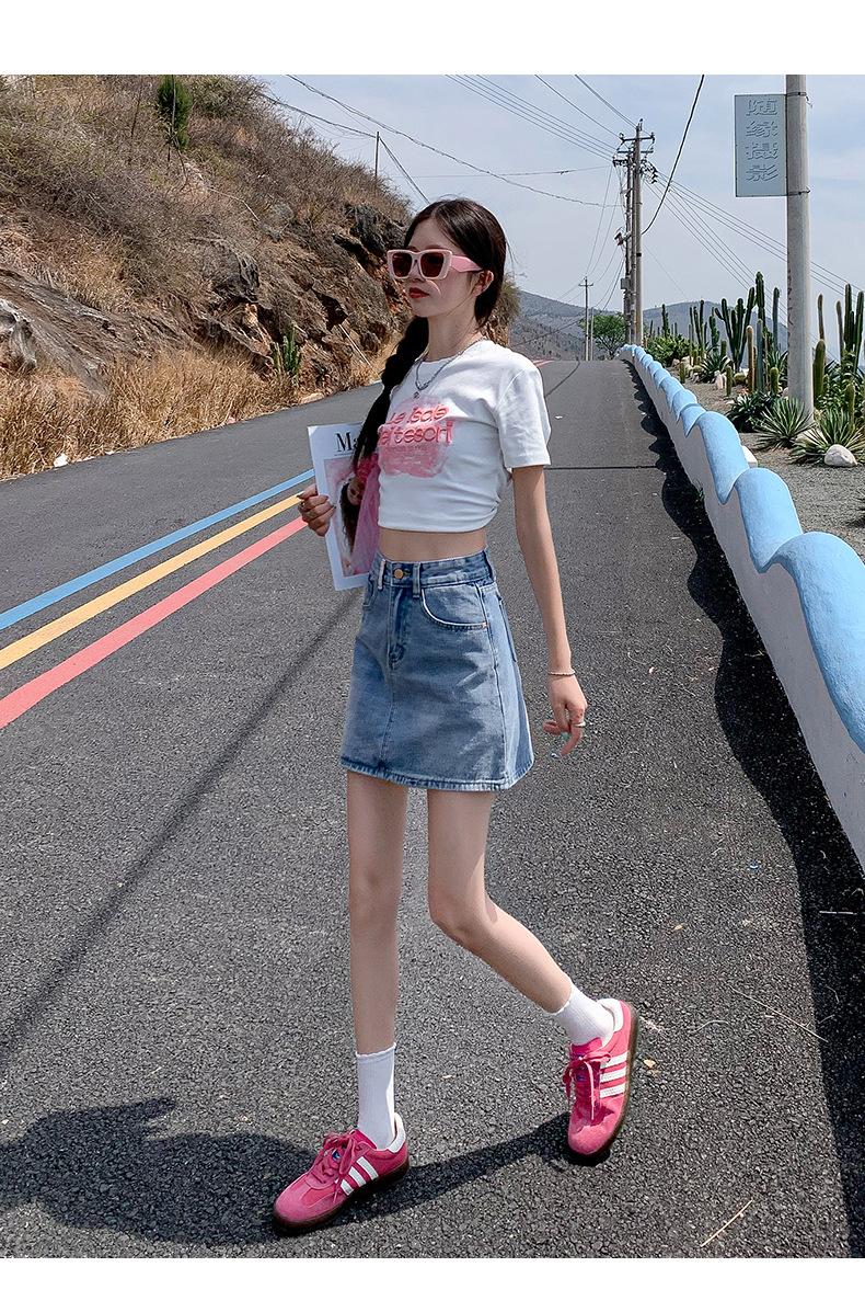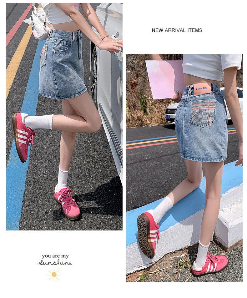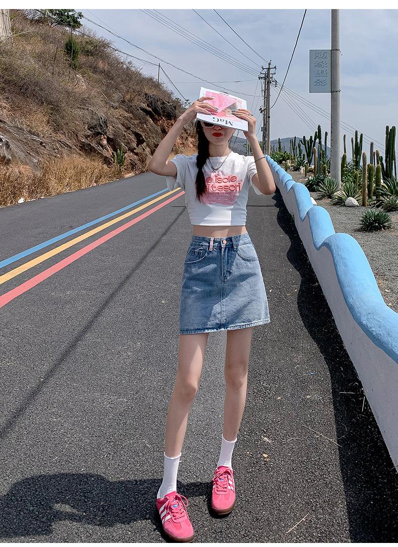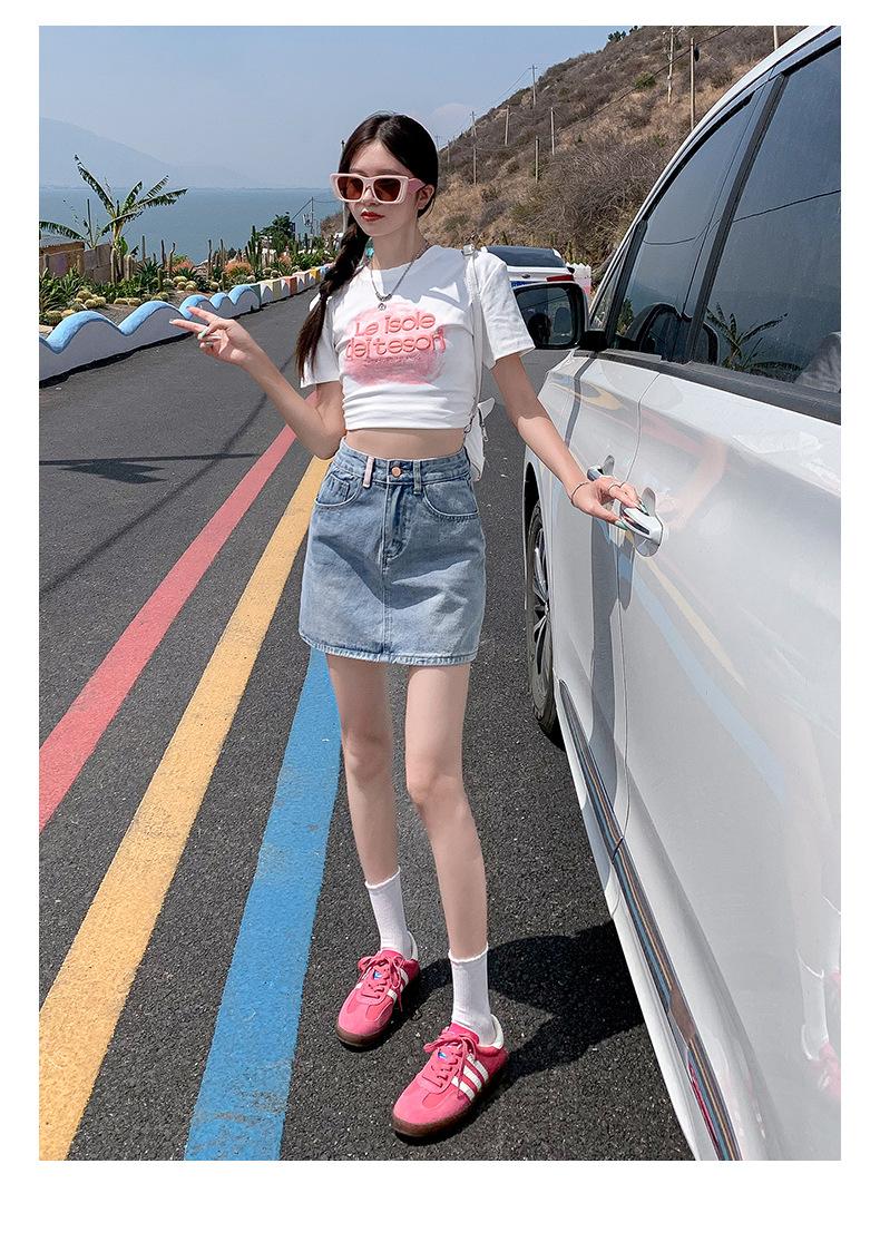 Falda Corta de Mezclilla para Mujer Verano Nuevo 2025 Cintura Alta Blanco Arroz Falda Pantalón Antiluz Línea A Falda Ajustada Media Falda