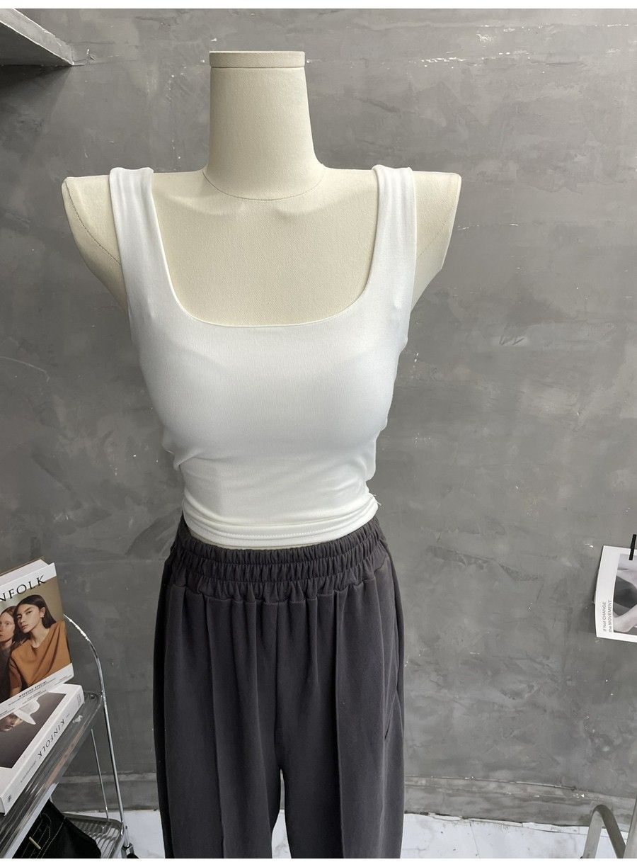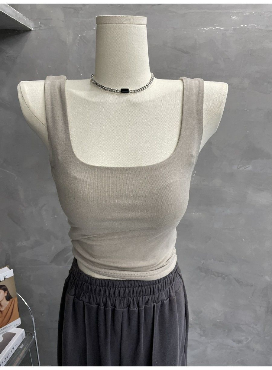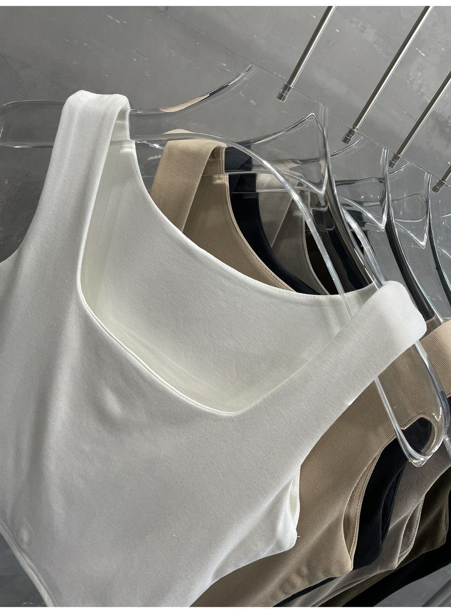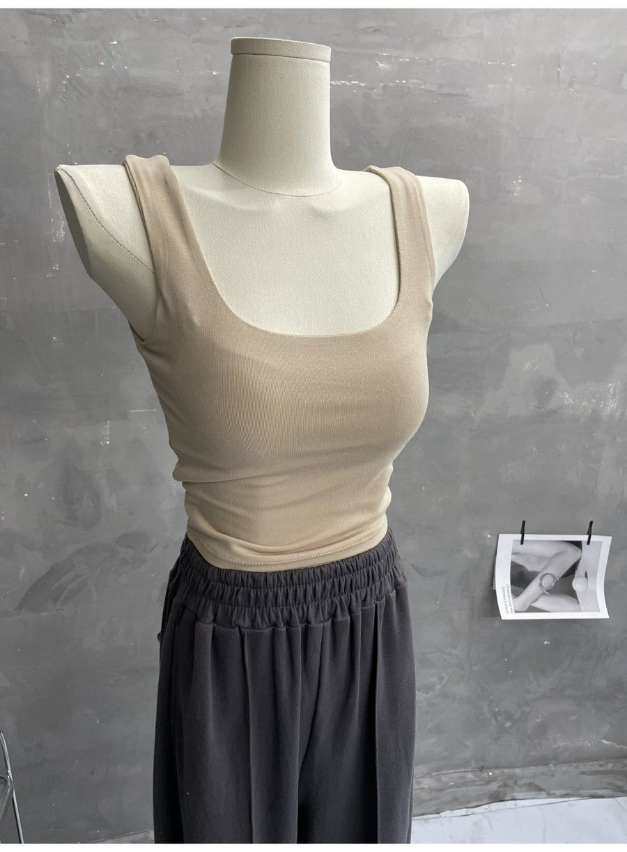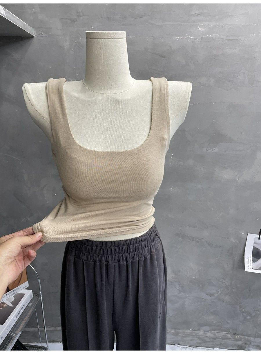 Compra 2453#2025 Camisola Slim sin Mangas con Cuello en U de Tela de Doble Capa para Mujer Primavera/Verano al por mayor en Joom.pro