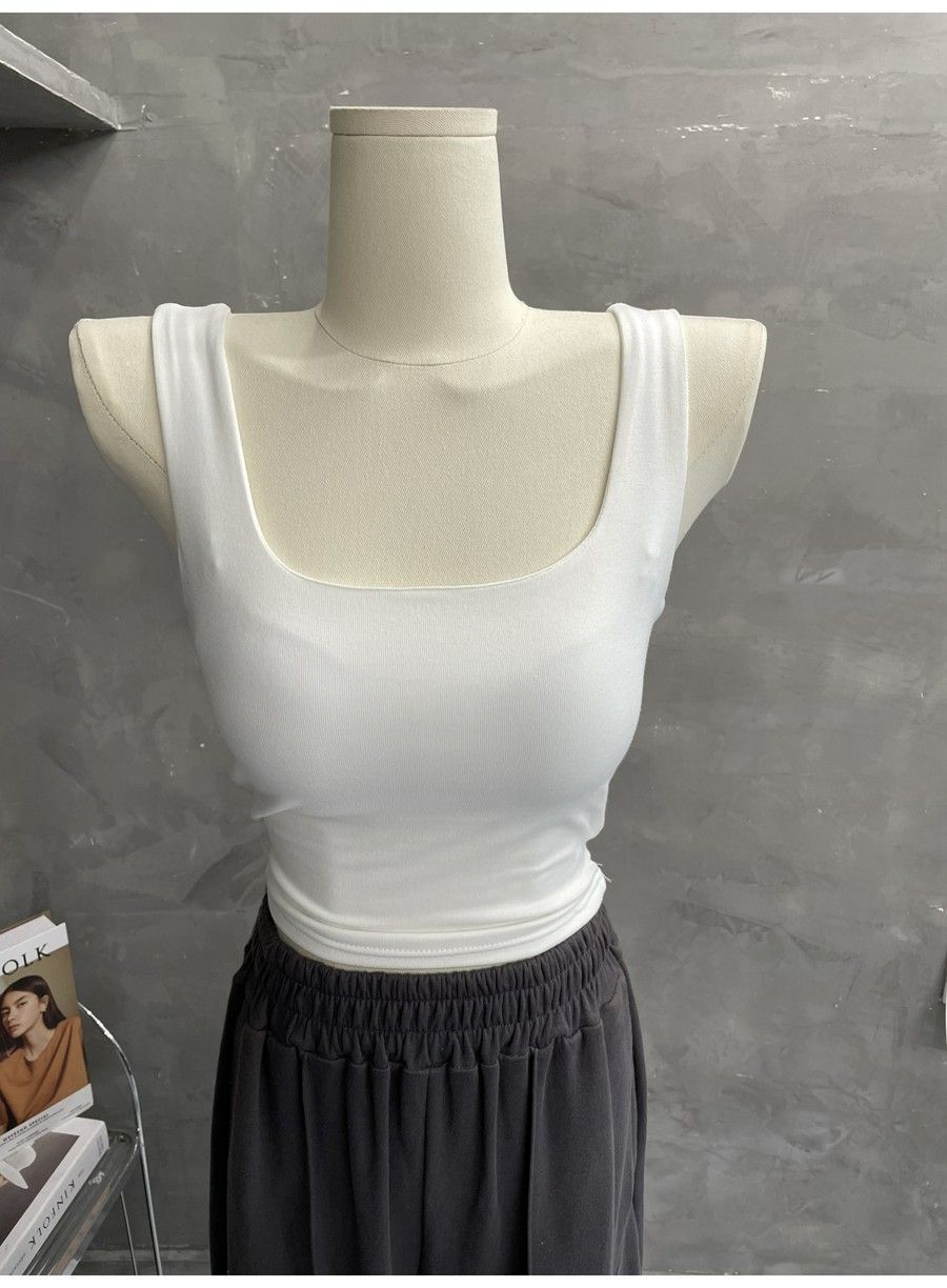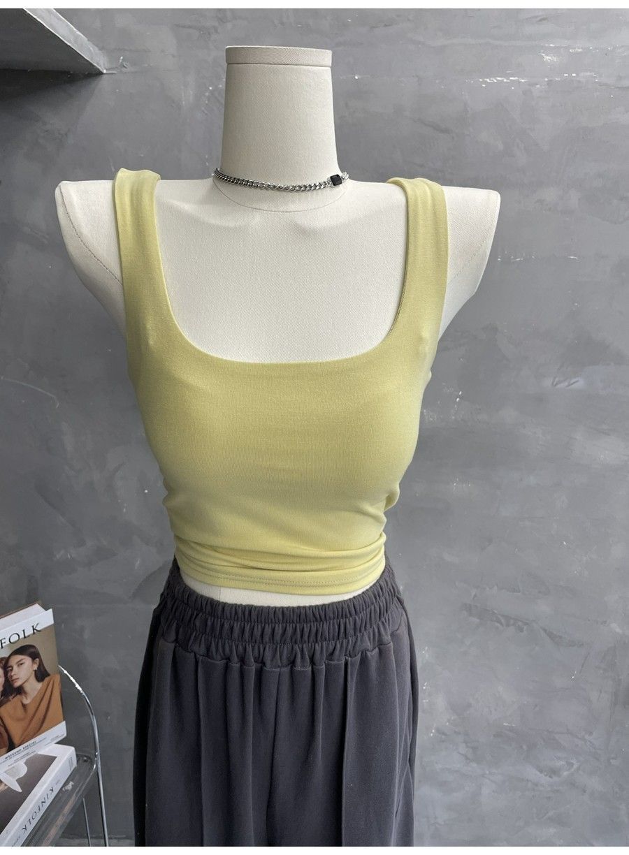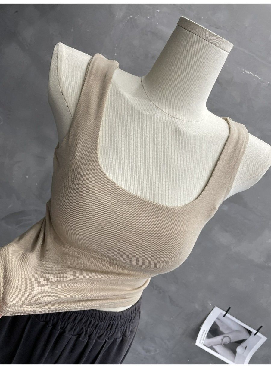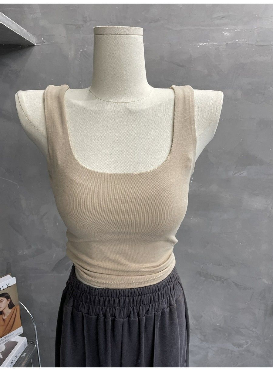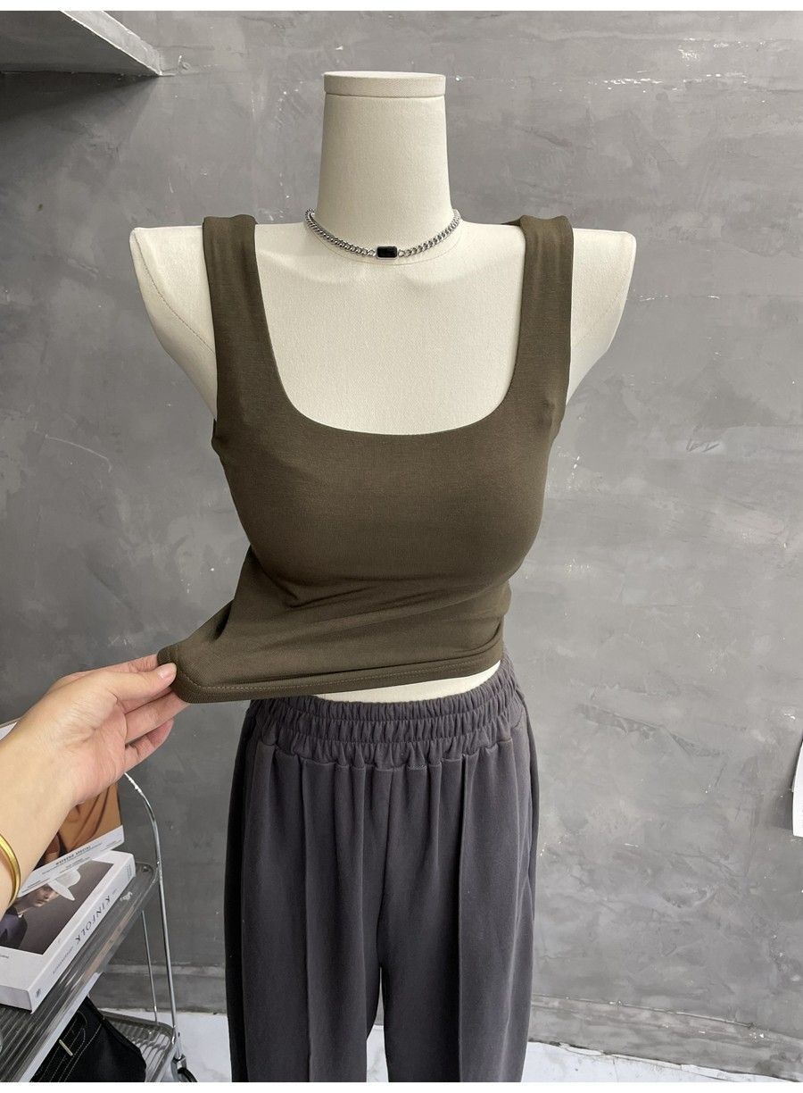 Compra 2453#2025 Camisola Slim sin Mangas con Cuello en U de Tela de Doble Capa para Mujer Primavera/Verano al por mayor en Joom.pro