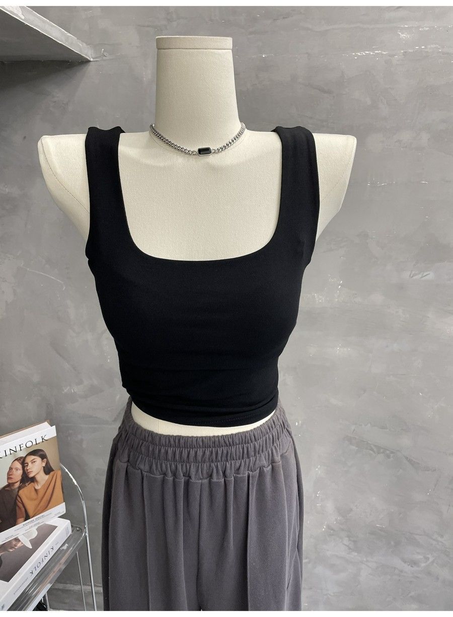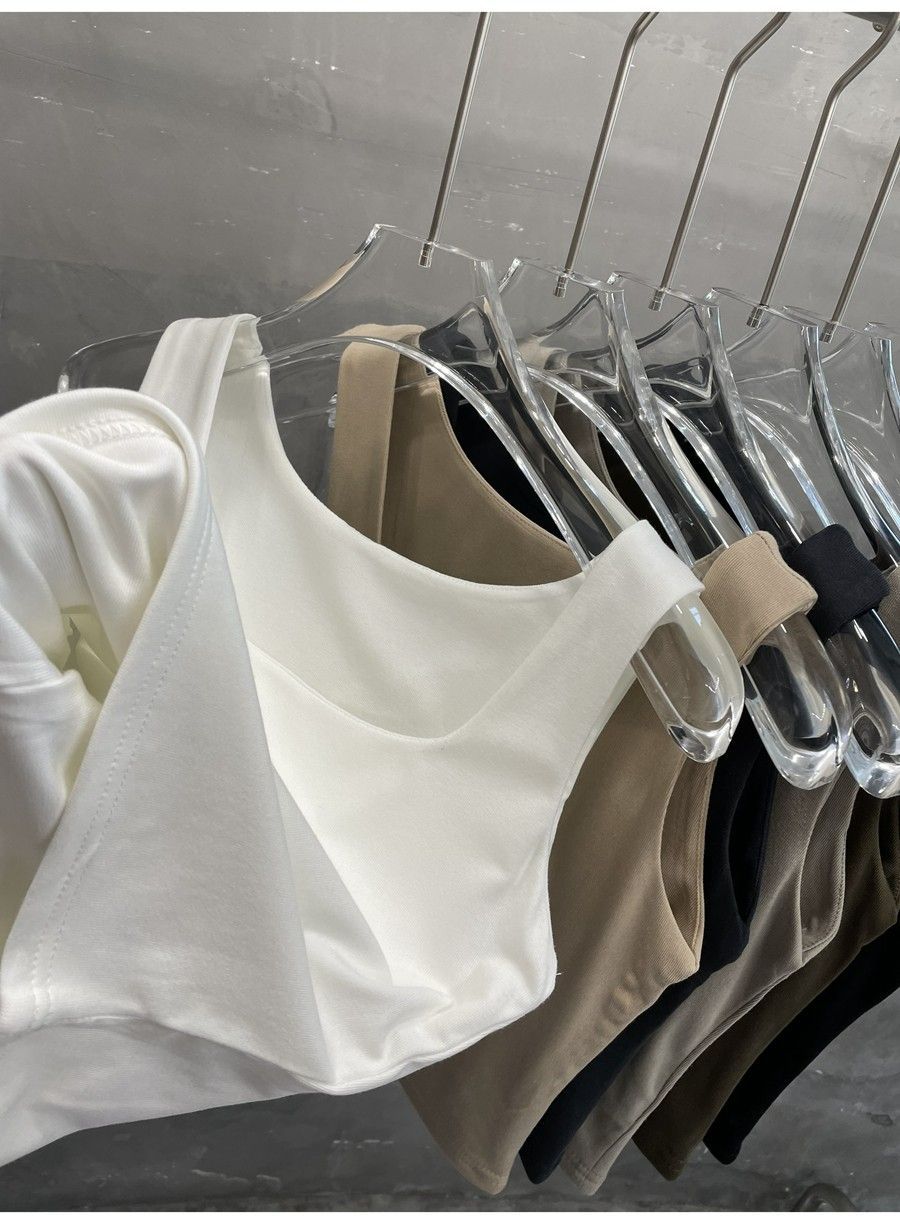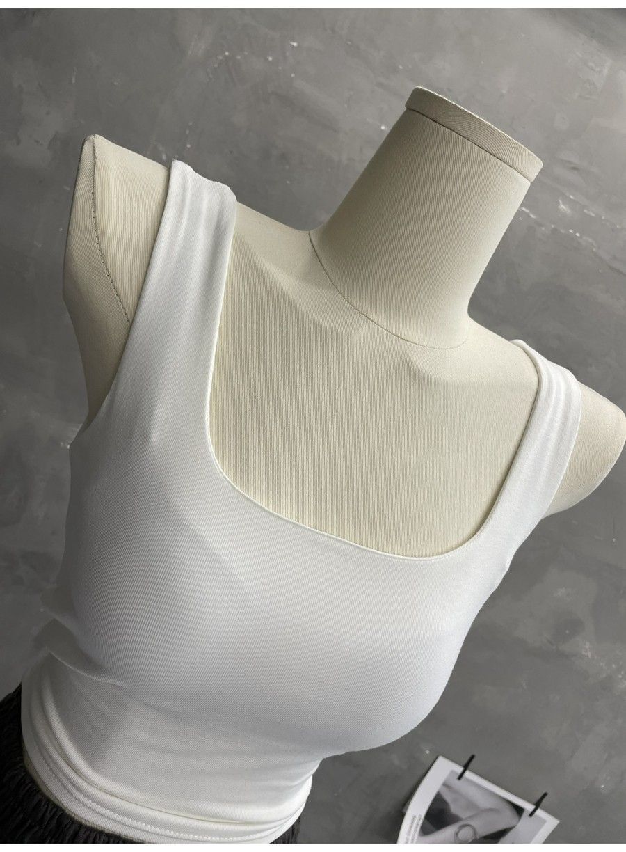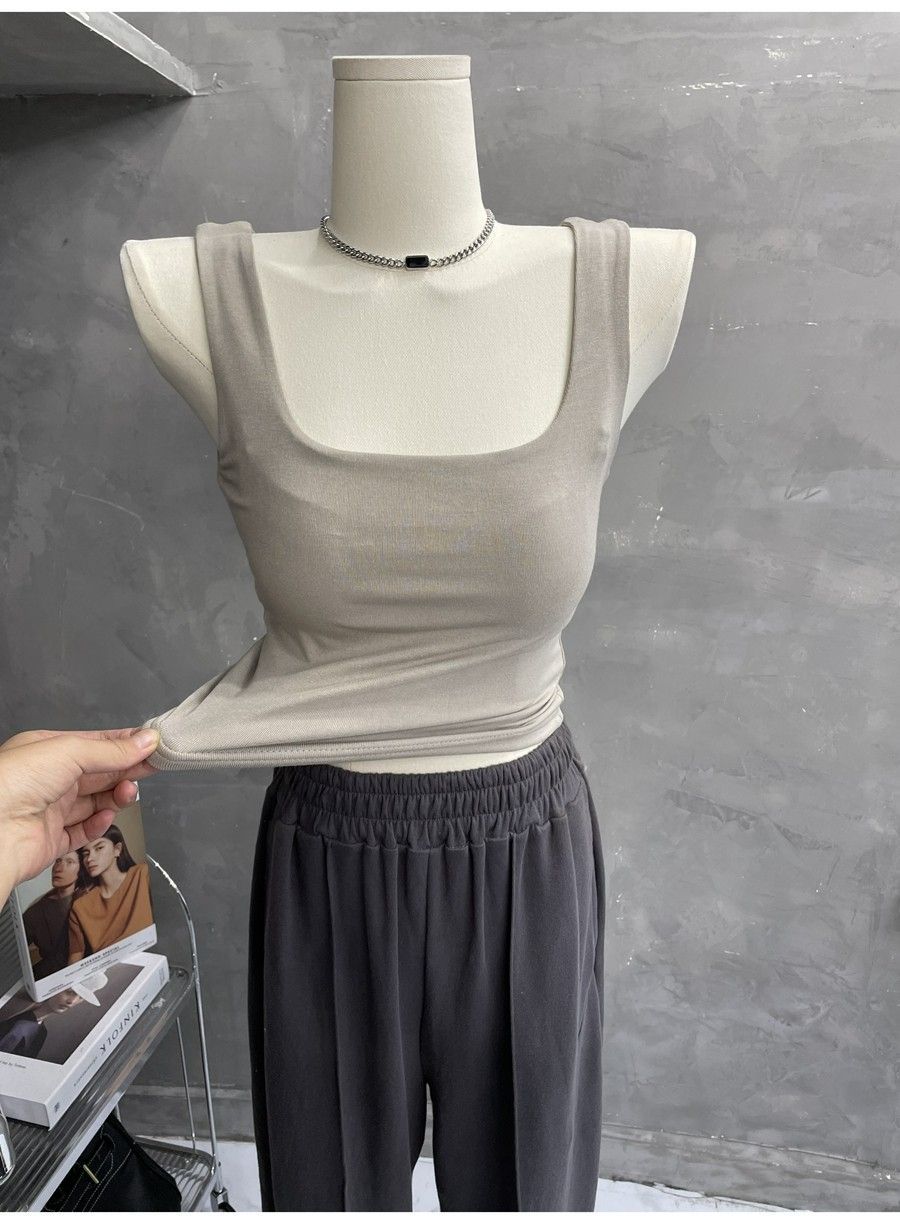 Compra 2453#2025 Camisola Slim sin Mangas con Cuello en U de Tela de Doble Capa para Mujer Primavera/Verano al por mayor en Joom.pro