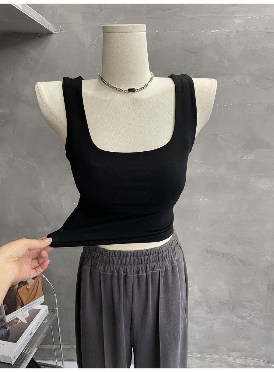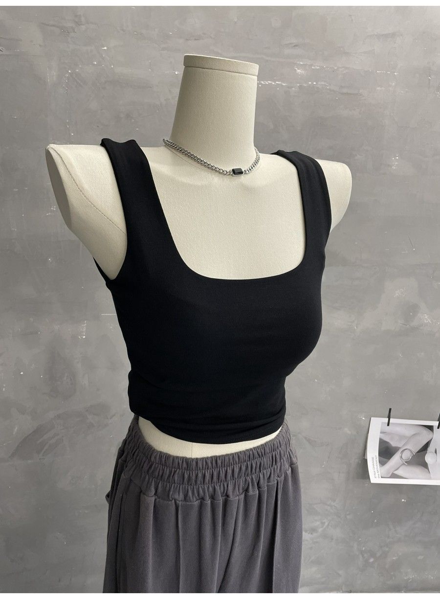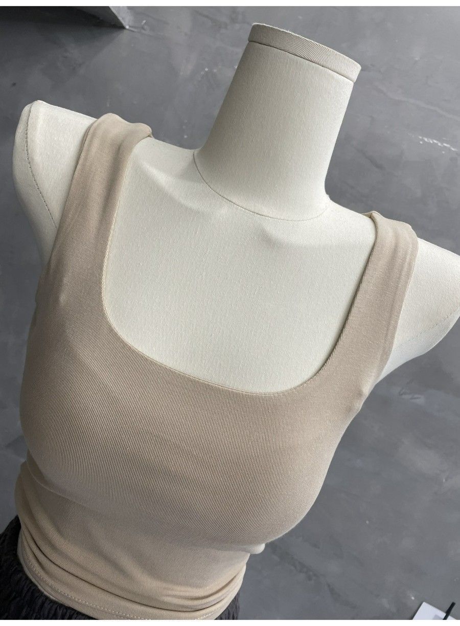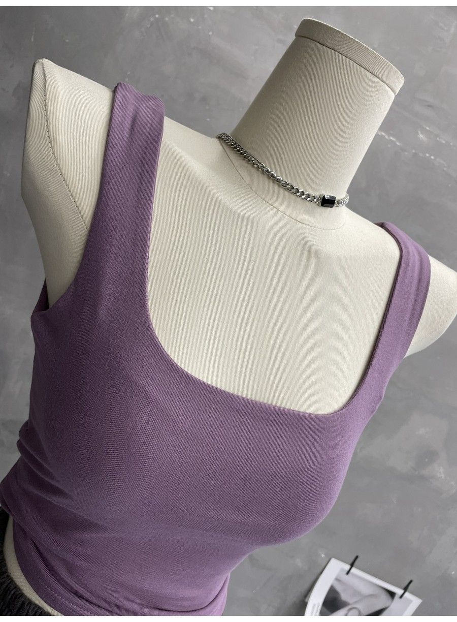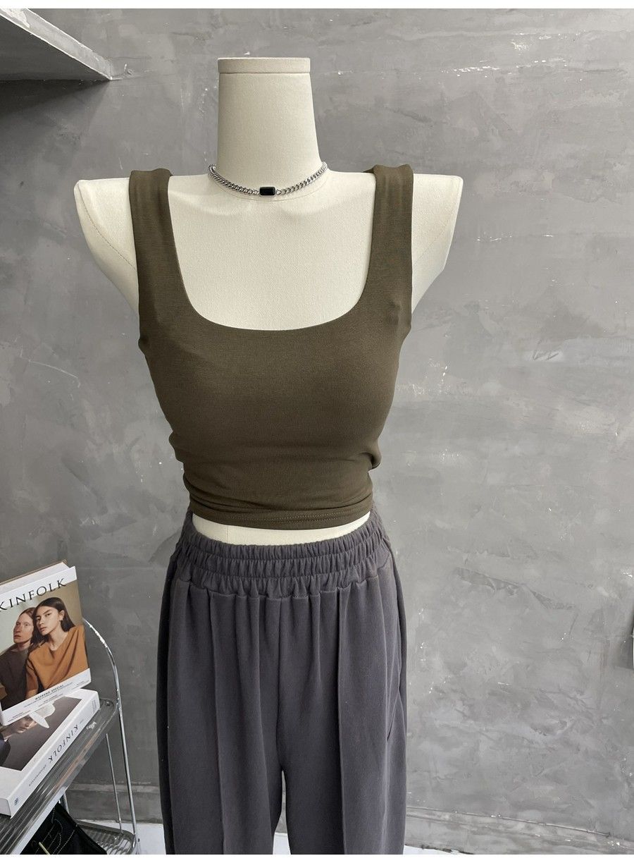 Compra 2453#2025 Camisola Slim sin Mangas con Cuello en U de Tela de Doble Capa para Mujer Primavera/Verano al por mayor en Joom.pro