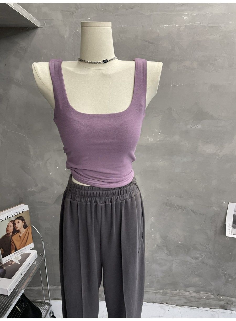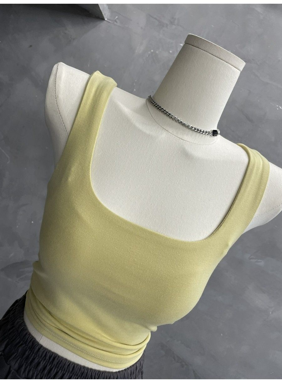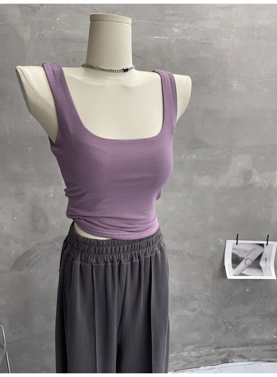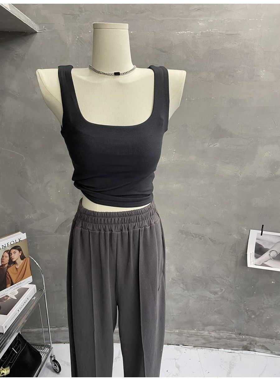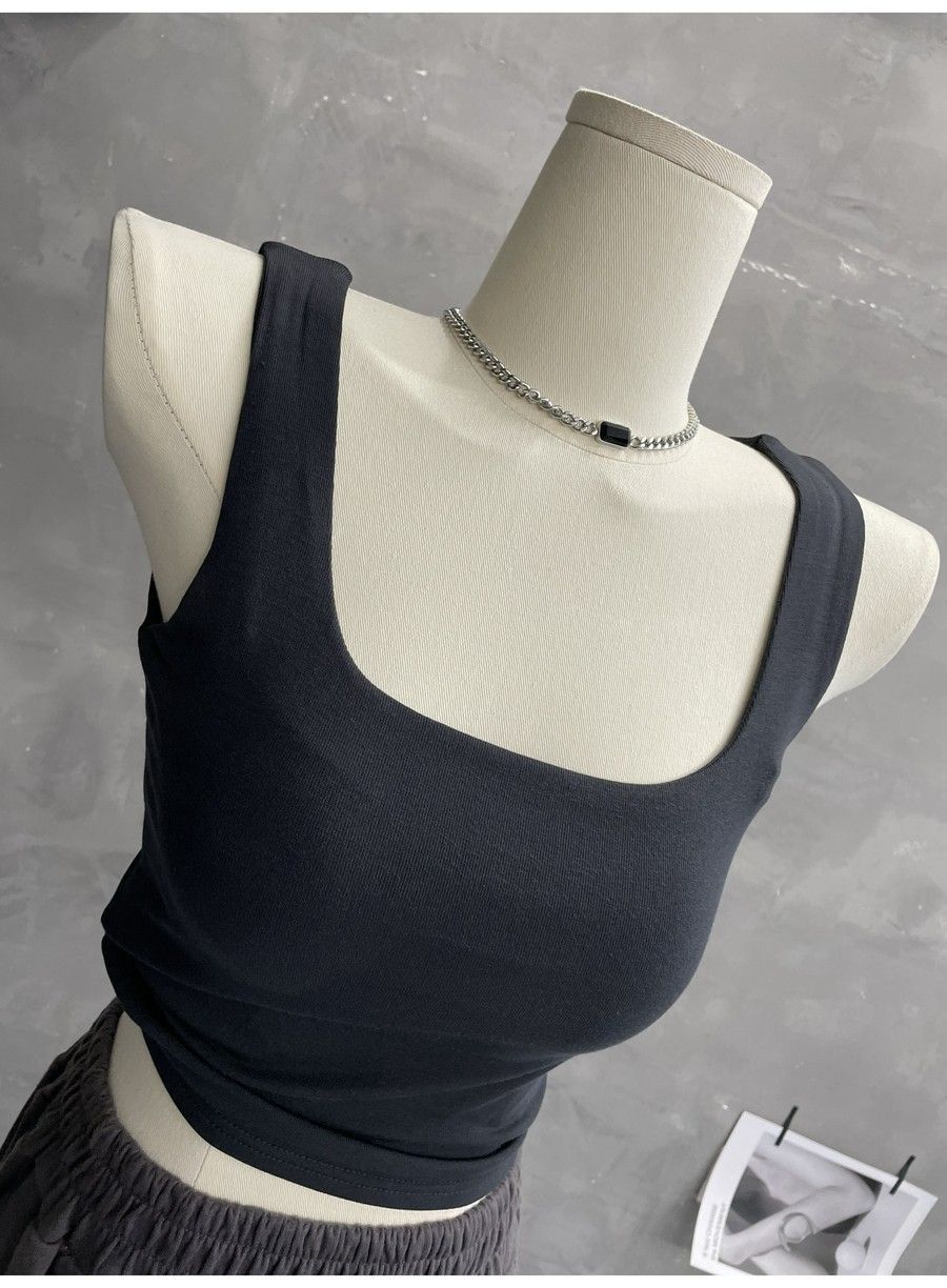 Compra 2453#2025 Camisola Slim sin Mangas con Cuello en U de Tela de Doble Capa para Mujer Primavera/Verano al por mayor en Joom.pro