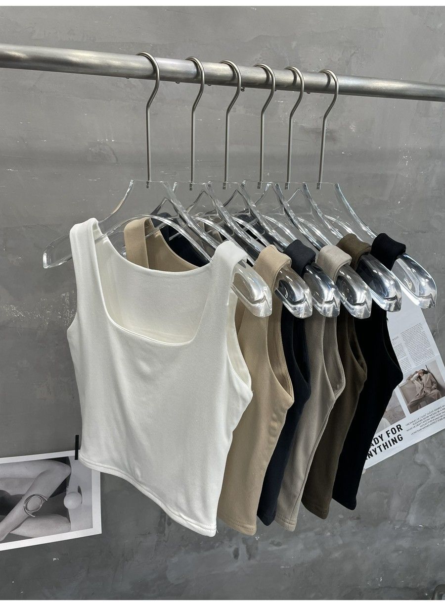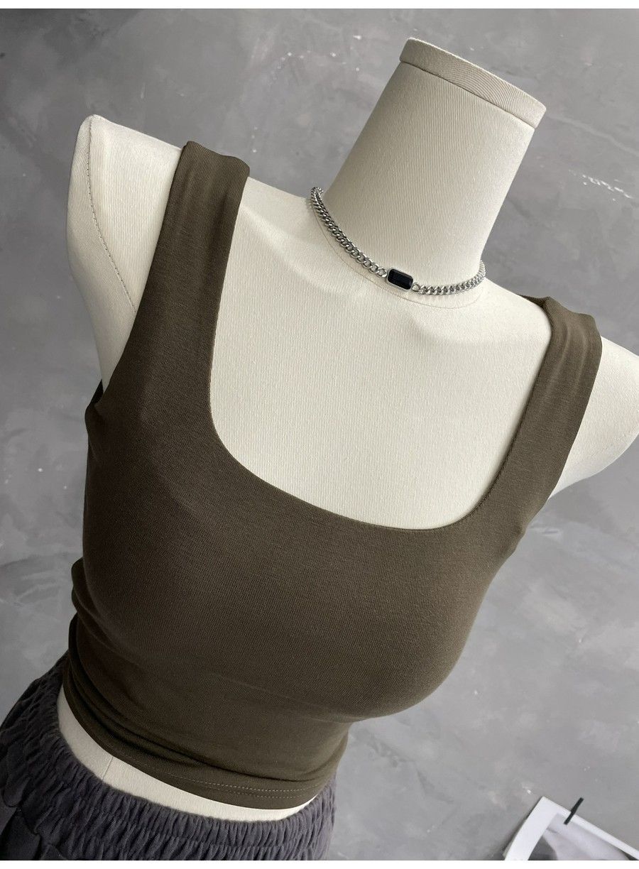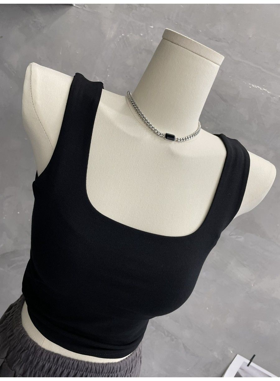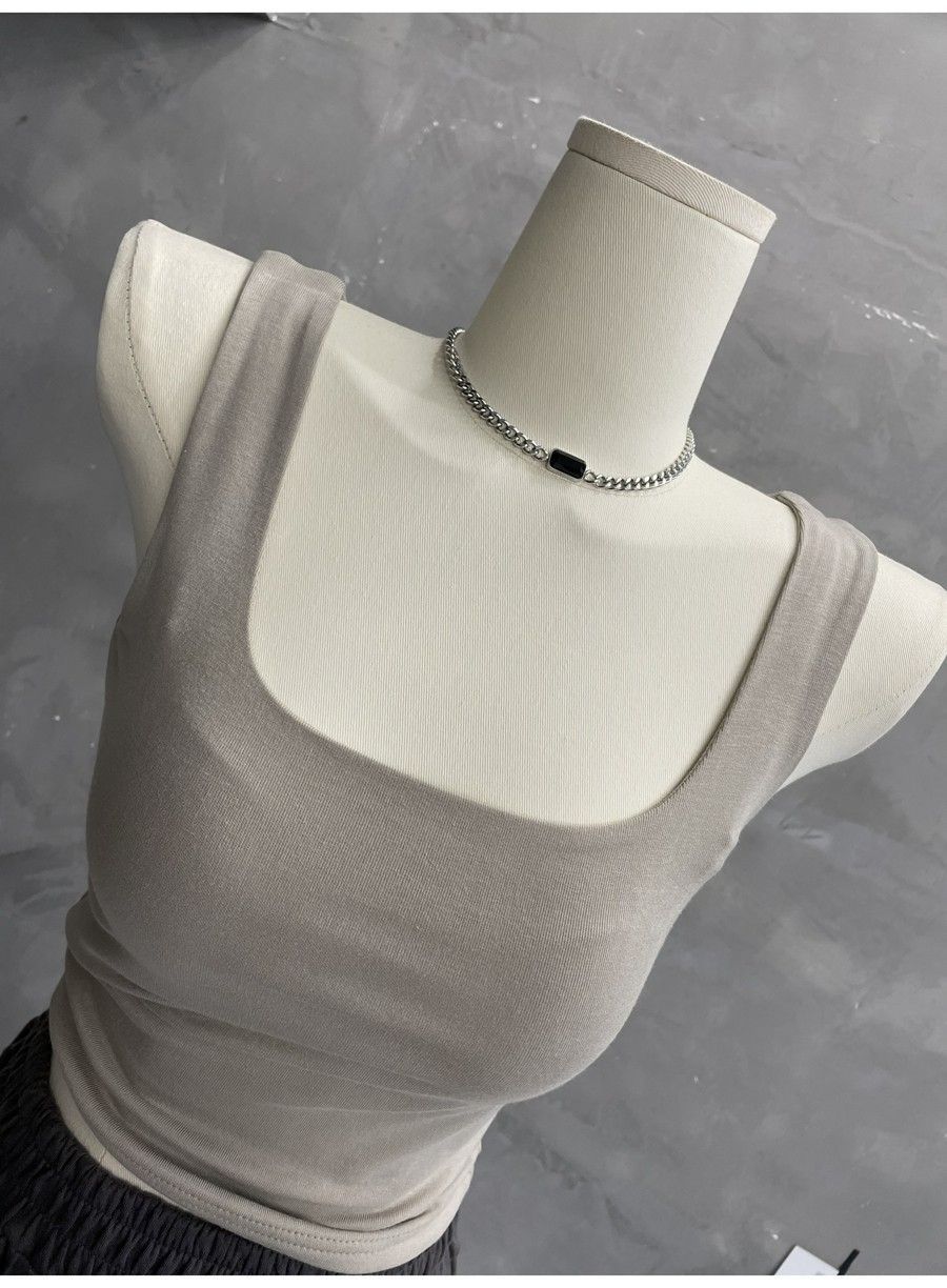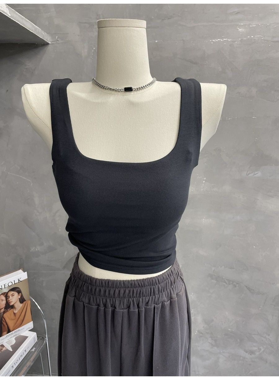 Compra 2453#2025 Camisola Slim sin Mangas con Cuello en U de Tela de Doble Capa para Mujer Primavera/Verano al por mayor en Joom.pro