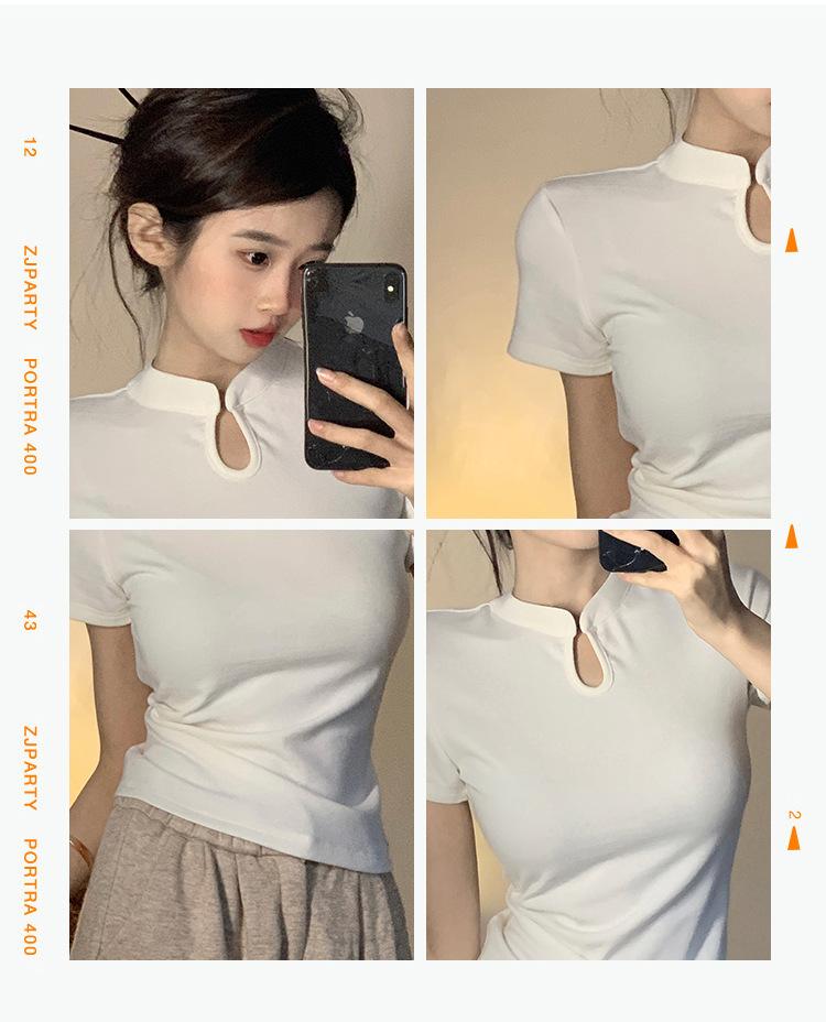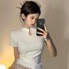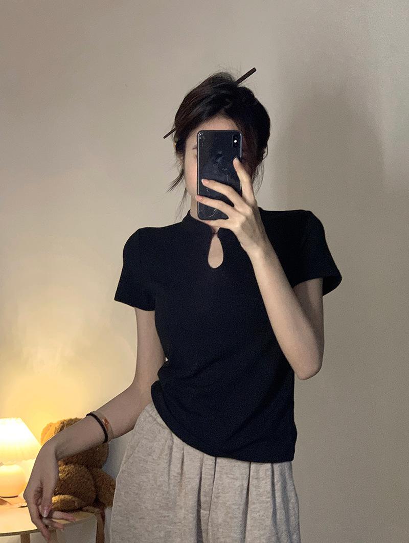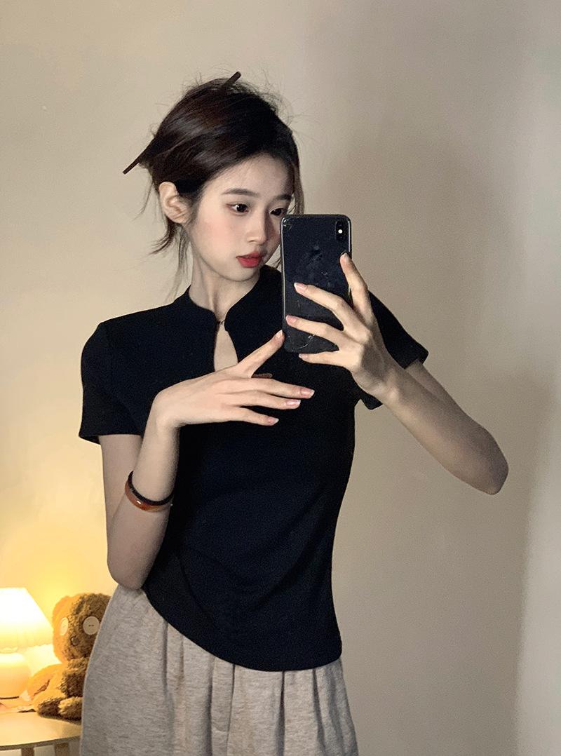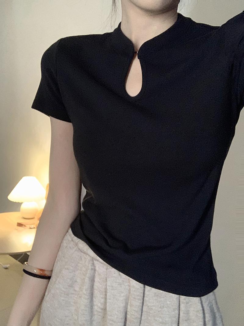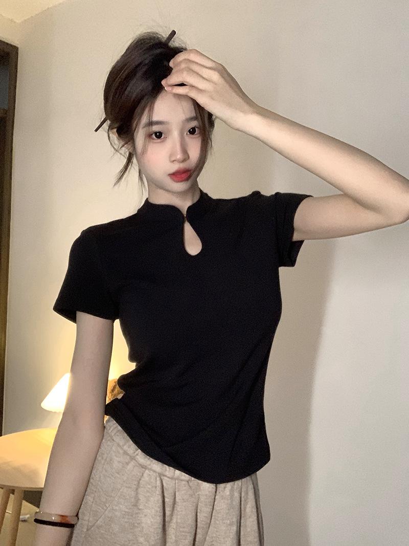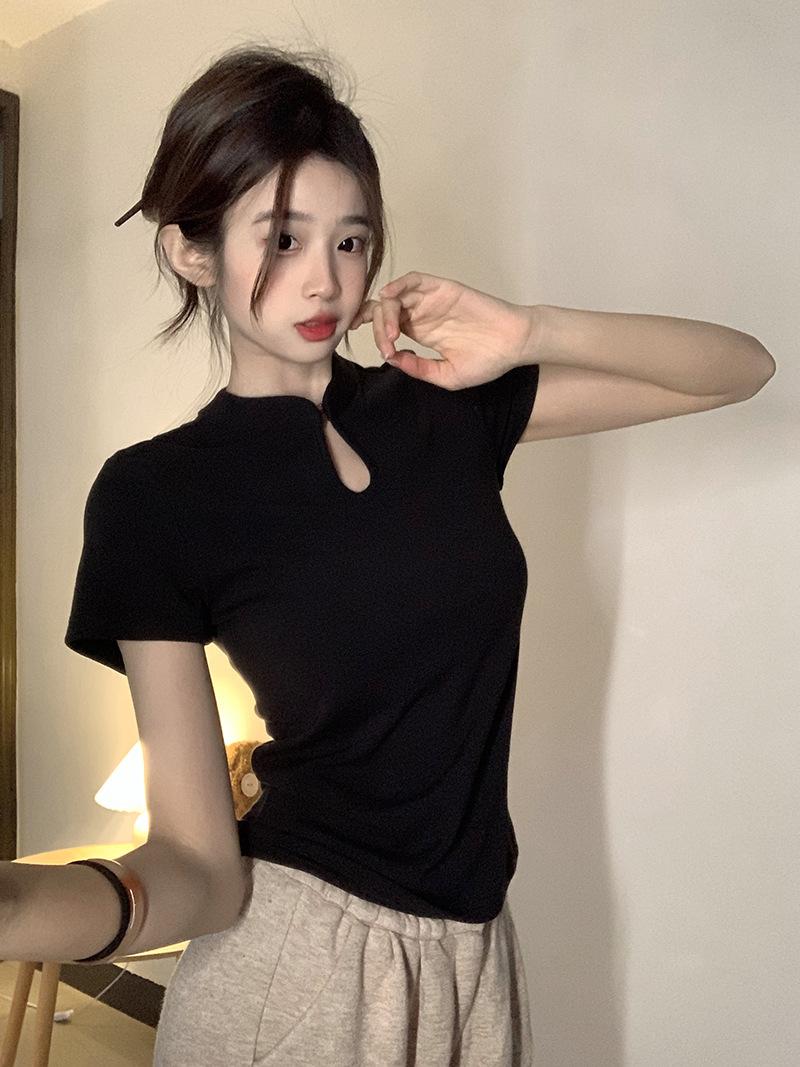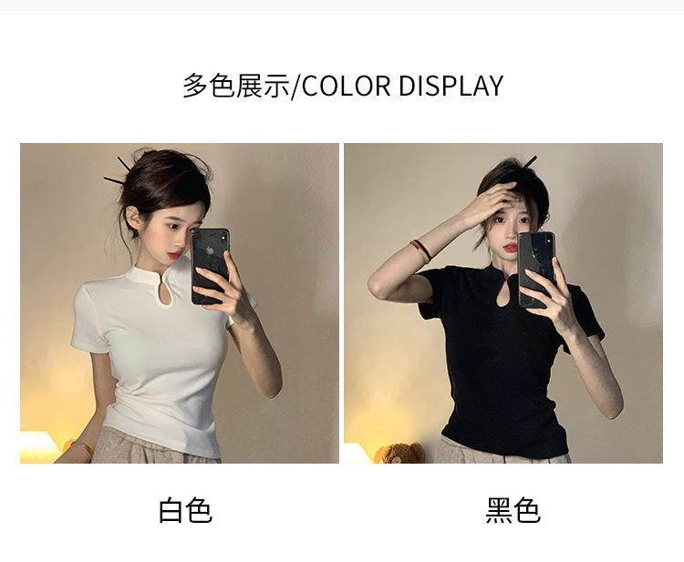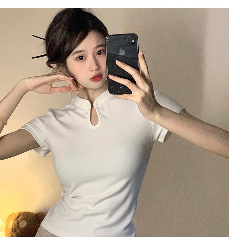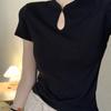 Compra Nueva Camiseta de Manga Corta Hueca Estilo Nacional Estilo Chino para Mujer Verano 2025 Nueva Negra Ajustada con Cintura Hombro Top Corto al por mayor en Joom.pro