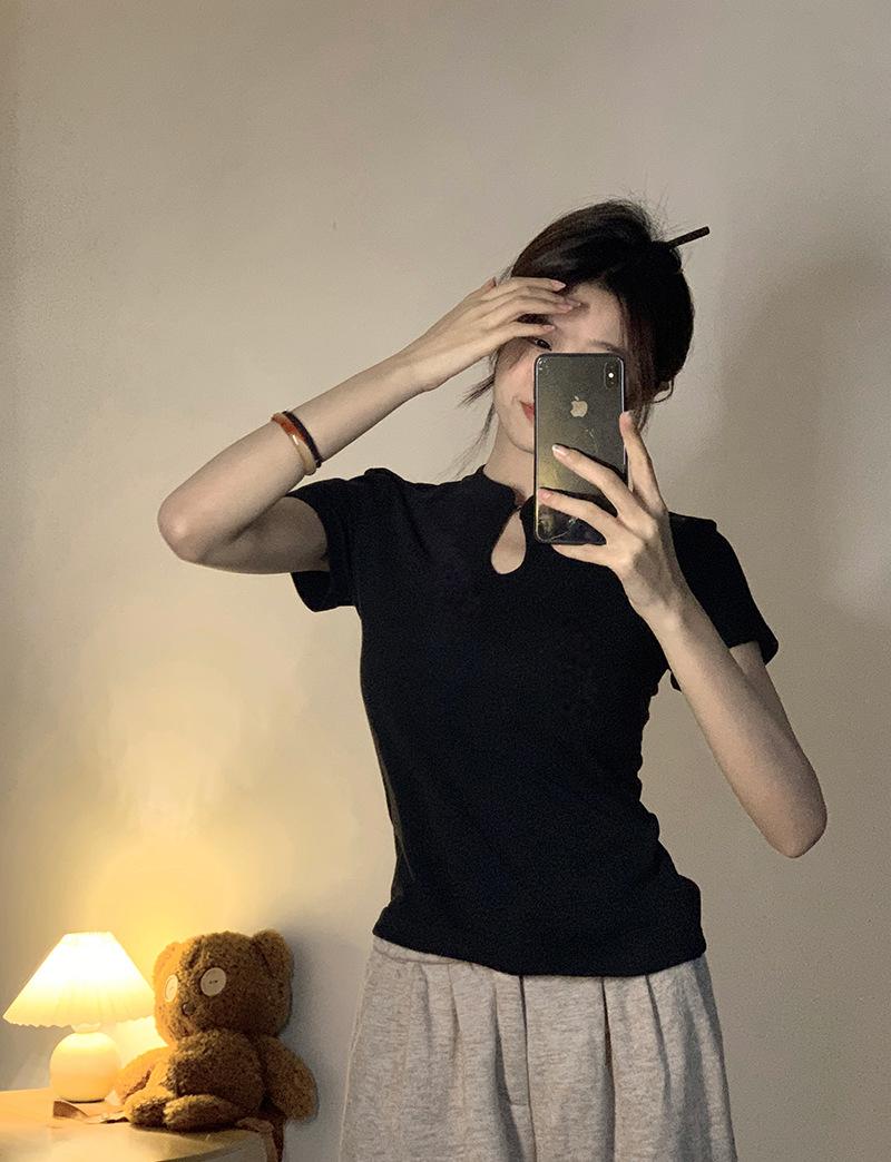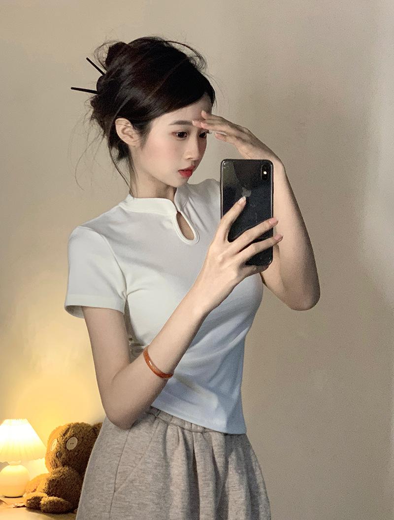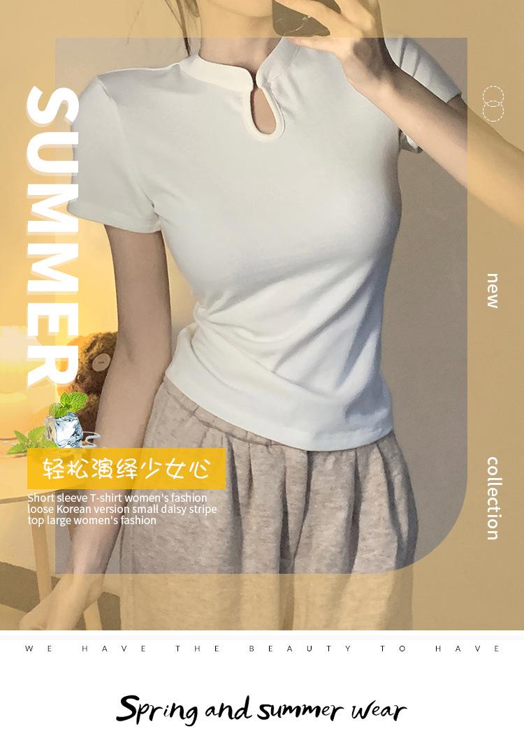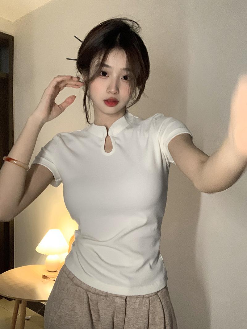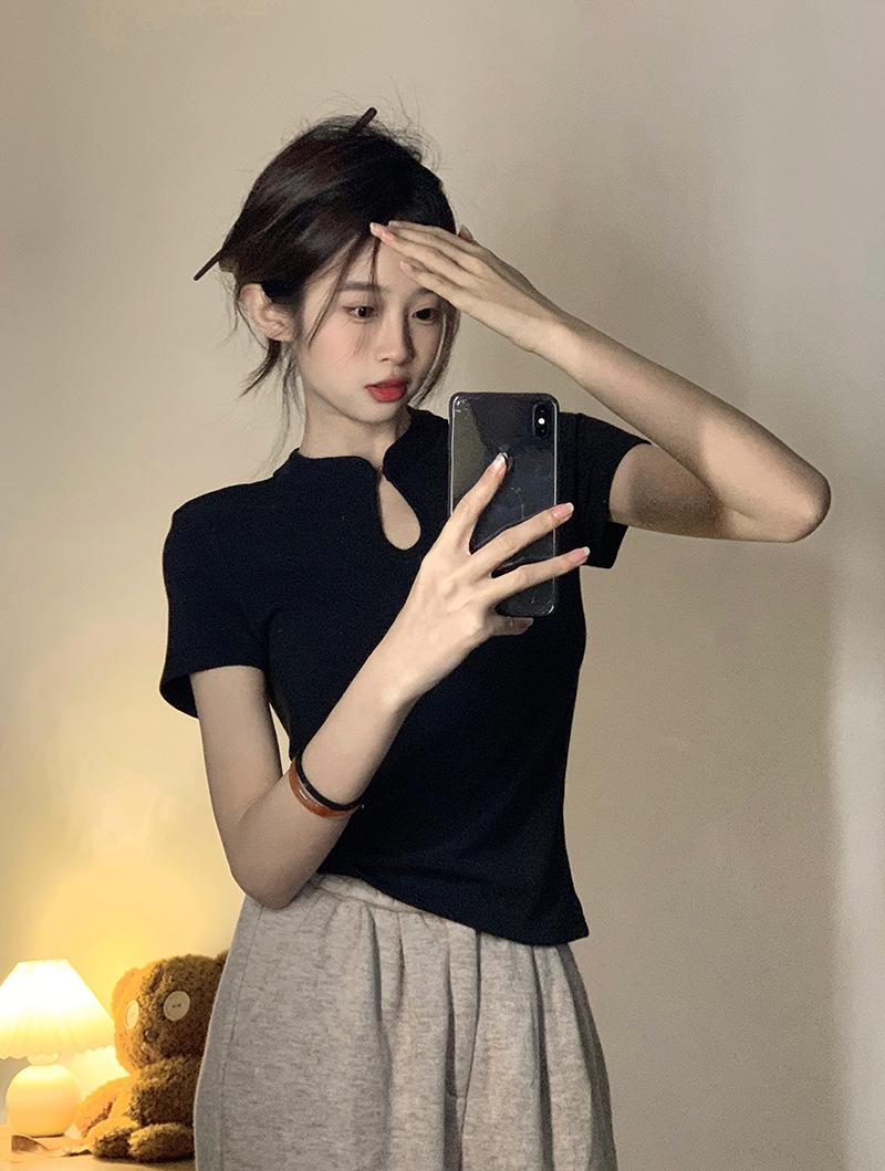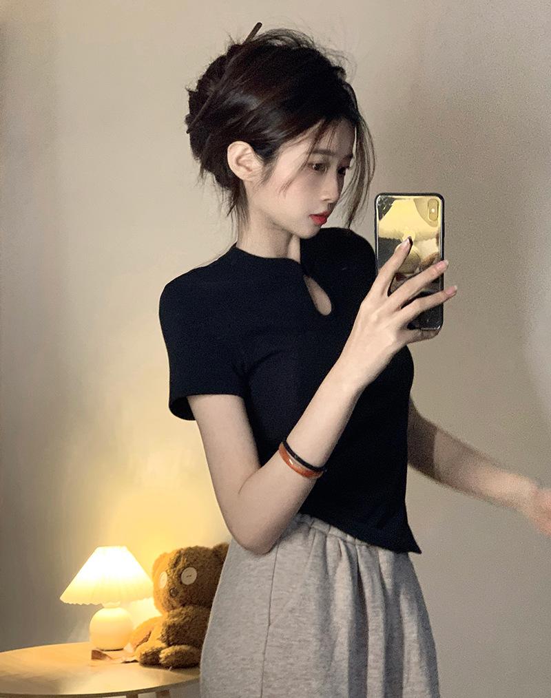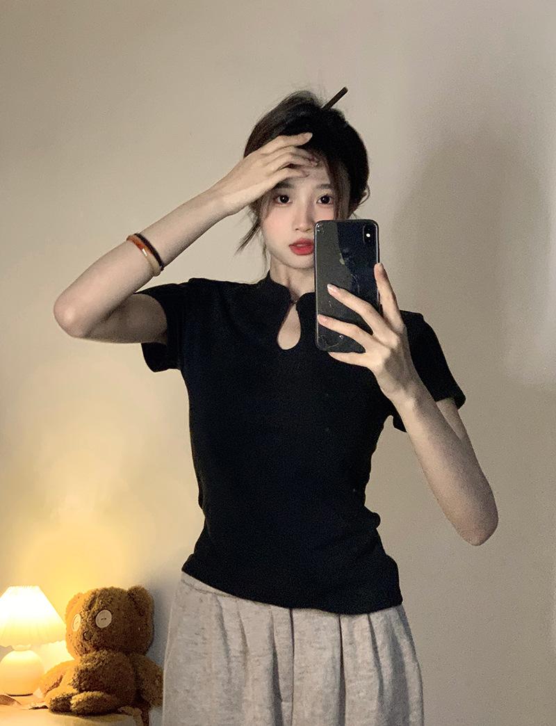 Compra Nueva Camiseta de Manga Corta Hueca Estilo Nacional Estilo Chino para Mujer Verano 2025 Nueva Negra Ajustada con Cintura Hombro Top Corto al por mayor en Joom.pro