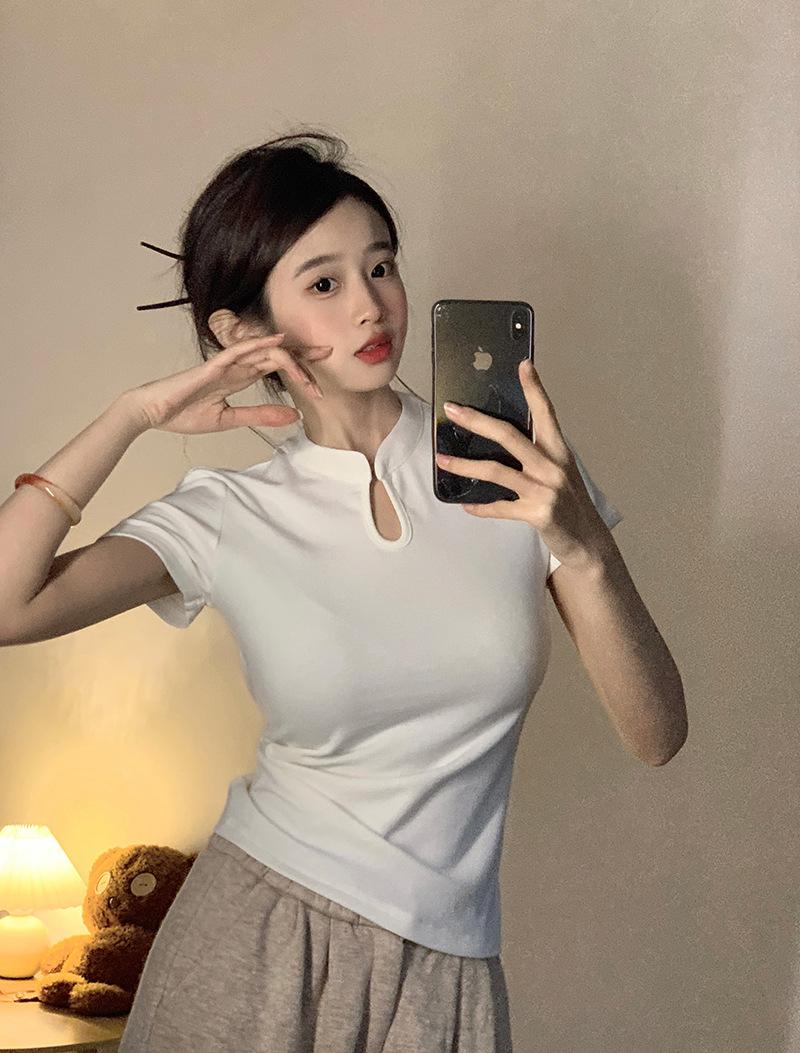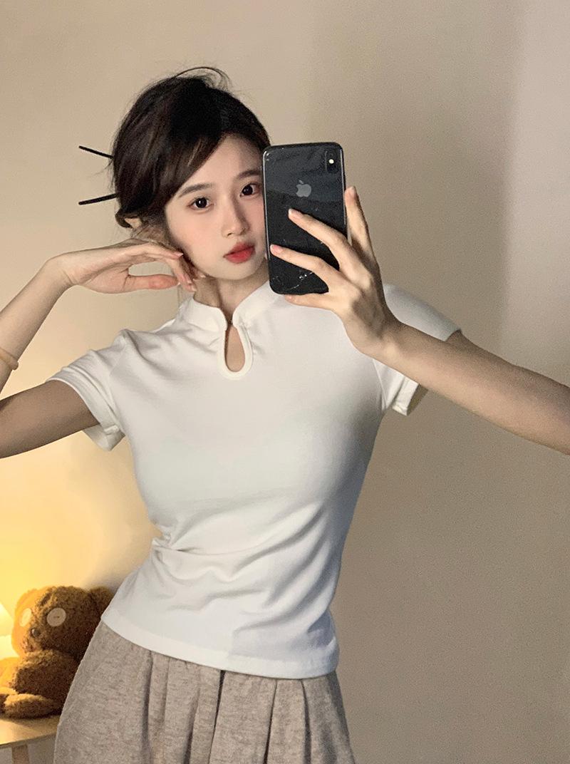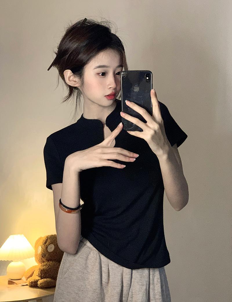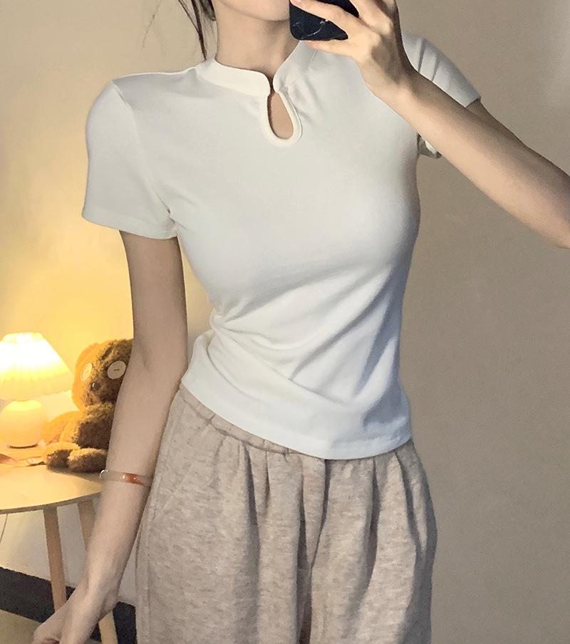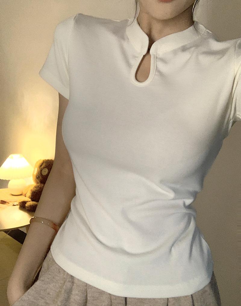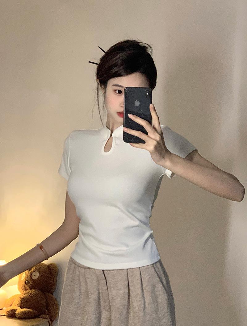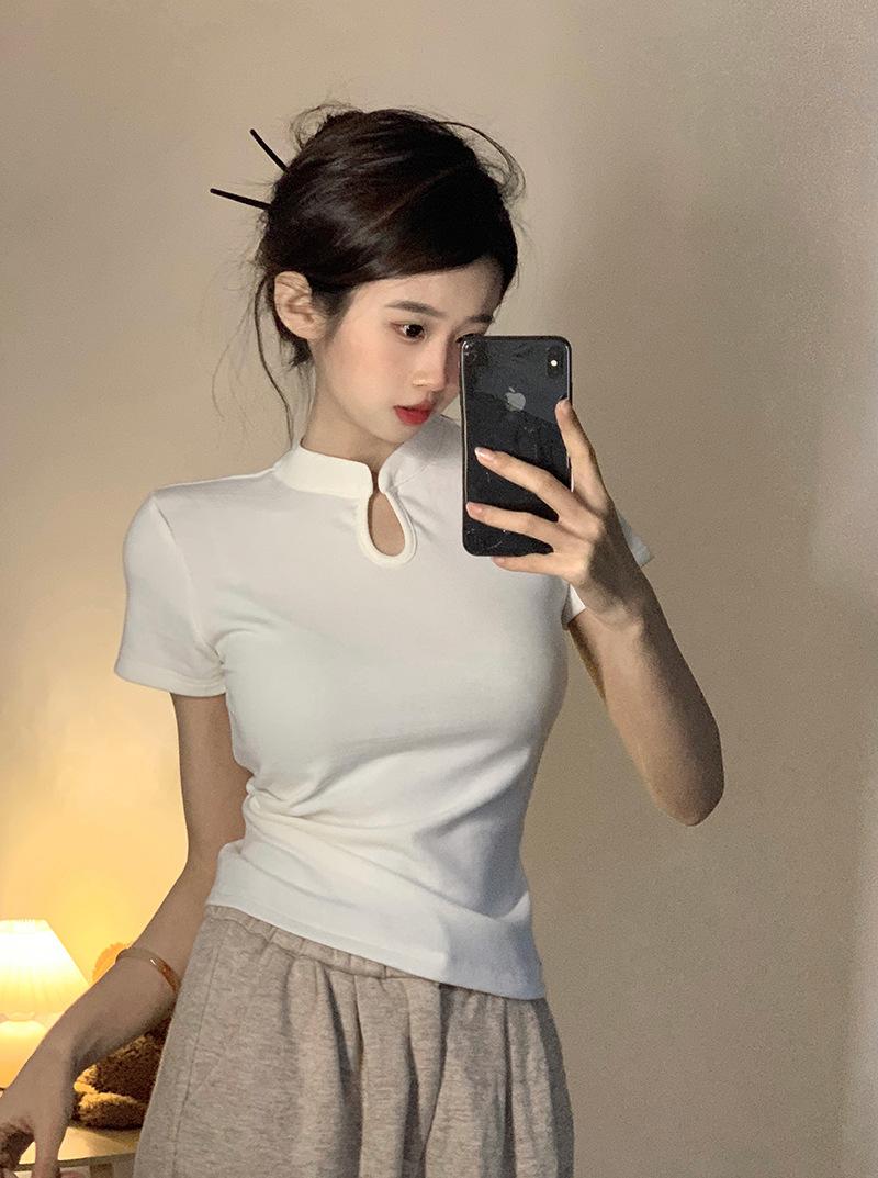 Compra Nueva Camiseta de Manga Corta Hueca Estilo Nacional Estilo Chino para Mujer Verano 2025 Nueva Negra Ajustada con Cintura Hombro Top Corto al por mayor en Joom.pro