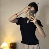 Nueva Camiseta de Manga Corta Hueca Estilo Nacional Estilo Chino para Mujer Verano 2025 Nueva Negra Ajustada con Cintura Hombro Top Corto