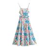 Verano 2020 Estilo Europeo y Americano Moda Nicho Francesa Cintura Alta Corte Slim Adelgazante Vestido Corto de Tirantes Estampado