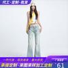 Jeans Microacampanados de Cintura de Encaje para Mujer Primavera 2025 Nueva Llegada Jeans Rotos de Cintura Baja Adelgazantes sin Piernas