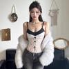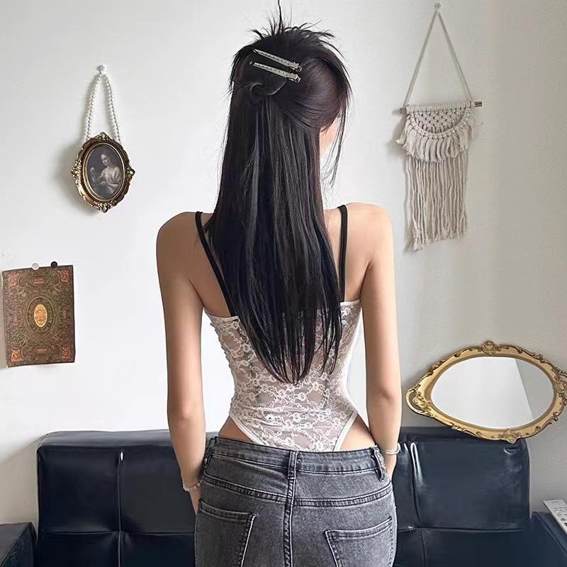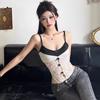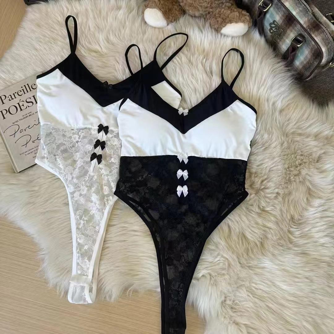 Tirantes de Encaje con Lazo de Color Contrastante para Mujer, Chaleco Delgado de Verano sin Mangas, Top Sexy Ajustado de Una Pieza para Interior Puro Deseo
