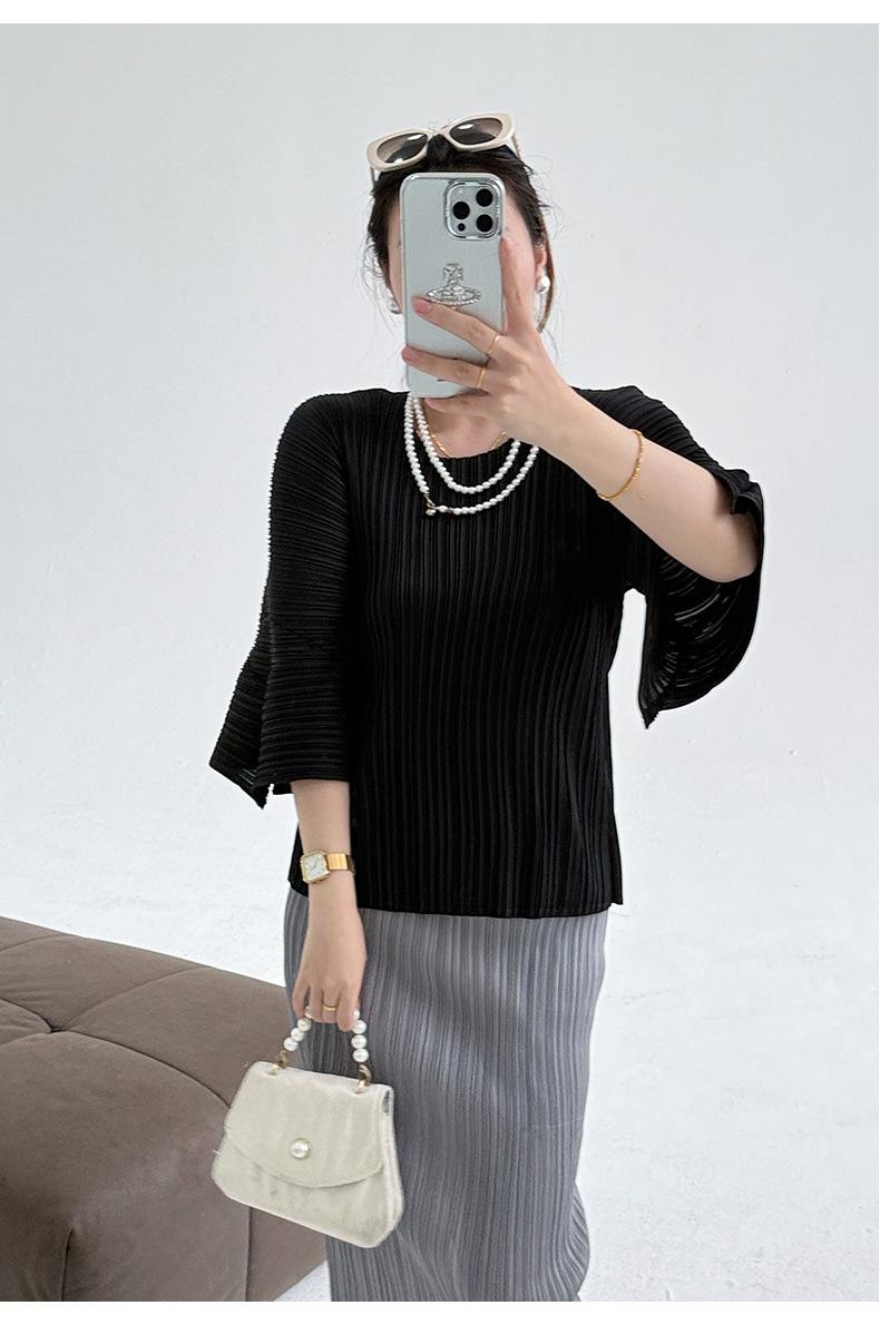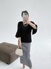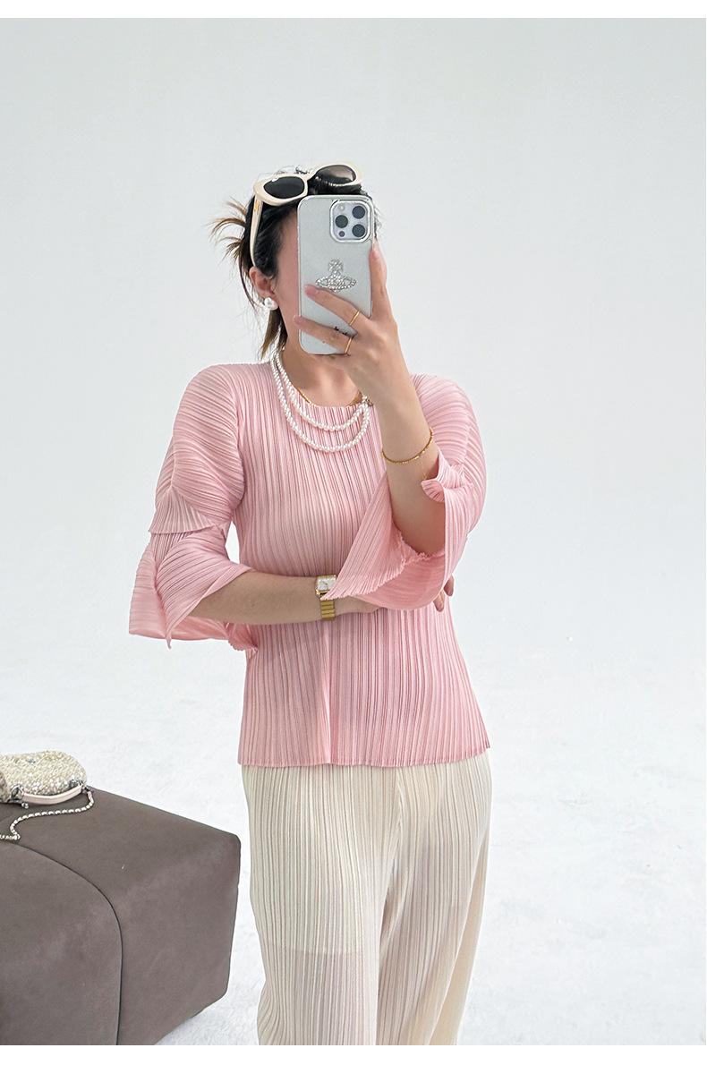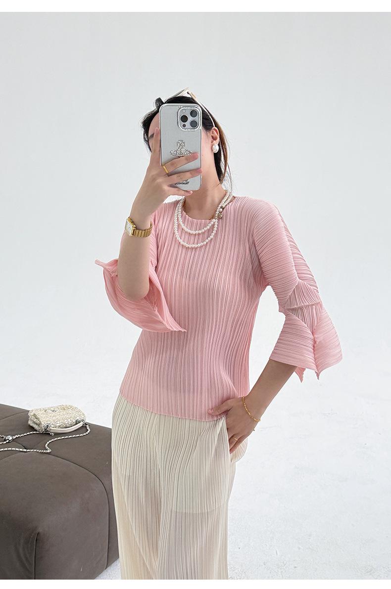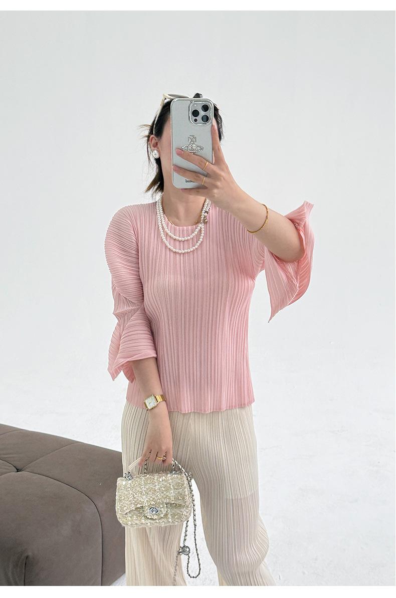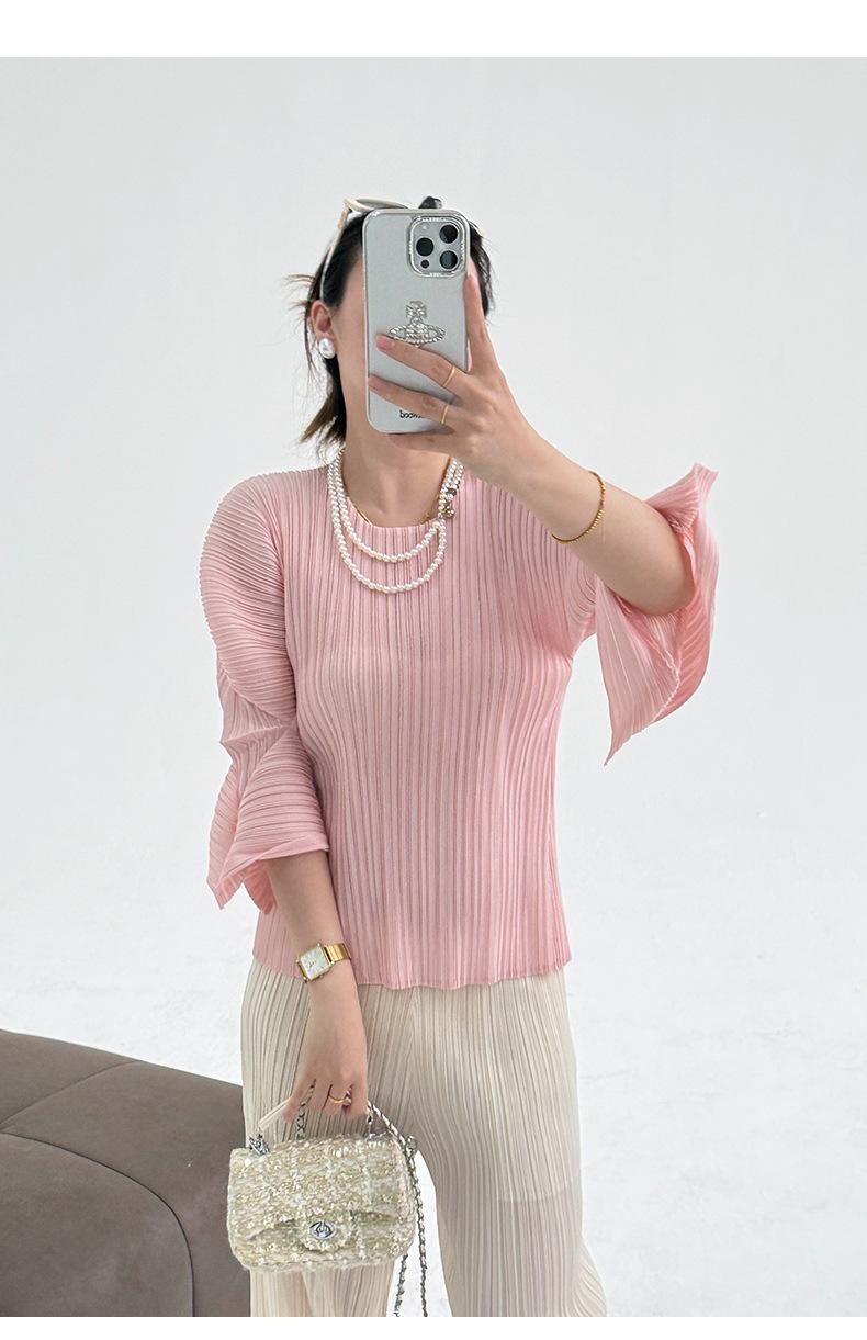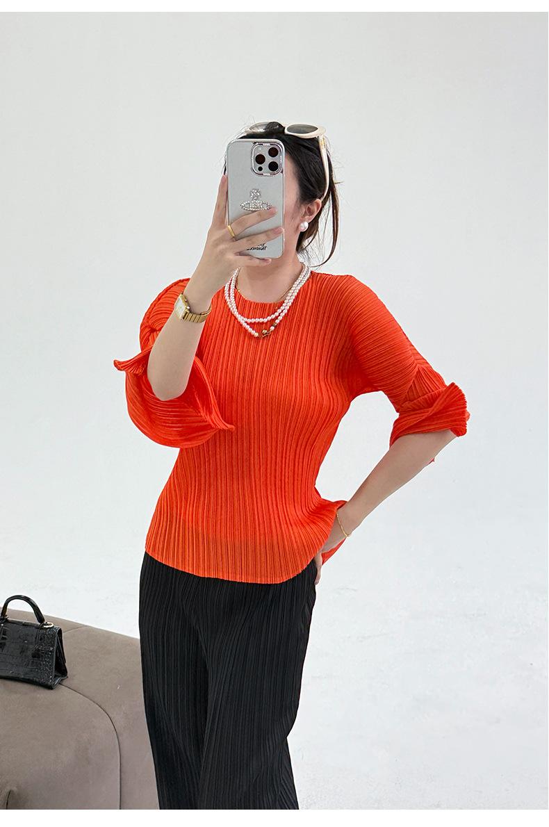 Primavera/Verano 2025 Nuevo Diseño Nicho Moda Mujer Manga Abullonada Cuello Redondo Ajuste Slim Versátil Camiseta Casual