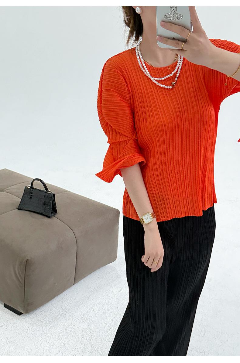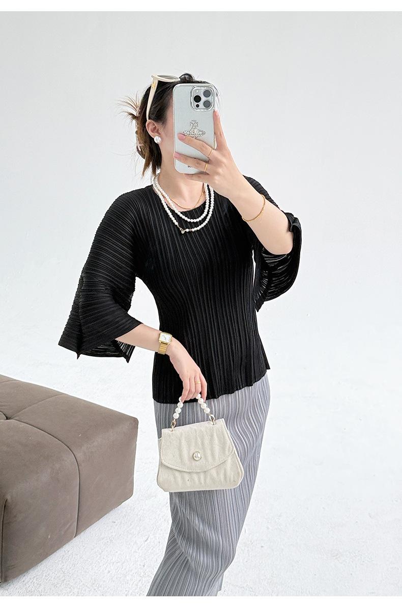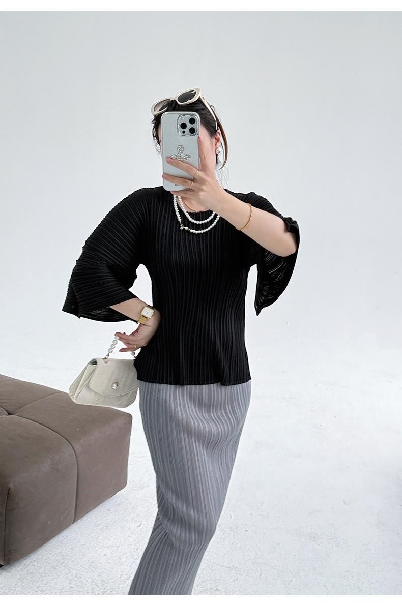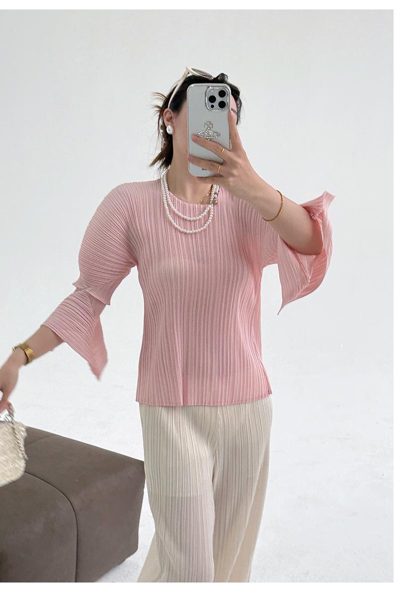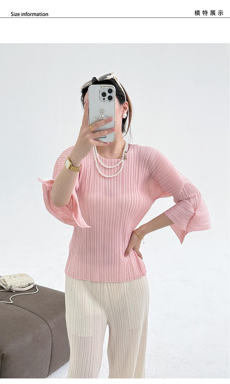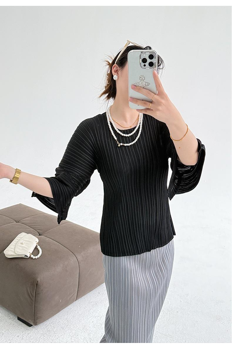 Primavera/Verano 2025 Nuevo Diseño Nicho Moda Mujer Manga Abullonada Cuello Redondo Ajuste Slim Versátil Camiseta Casual