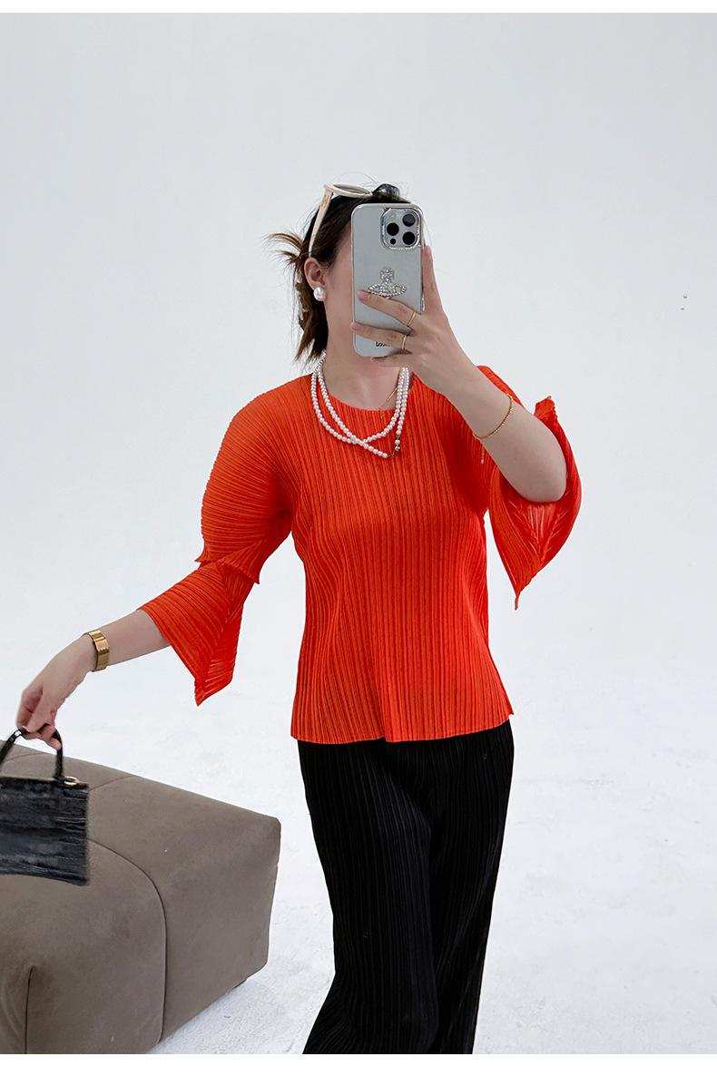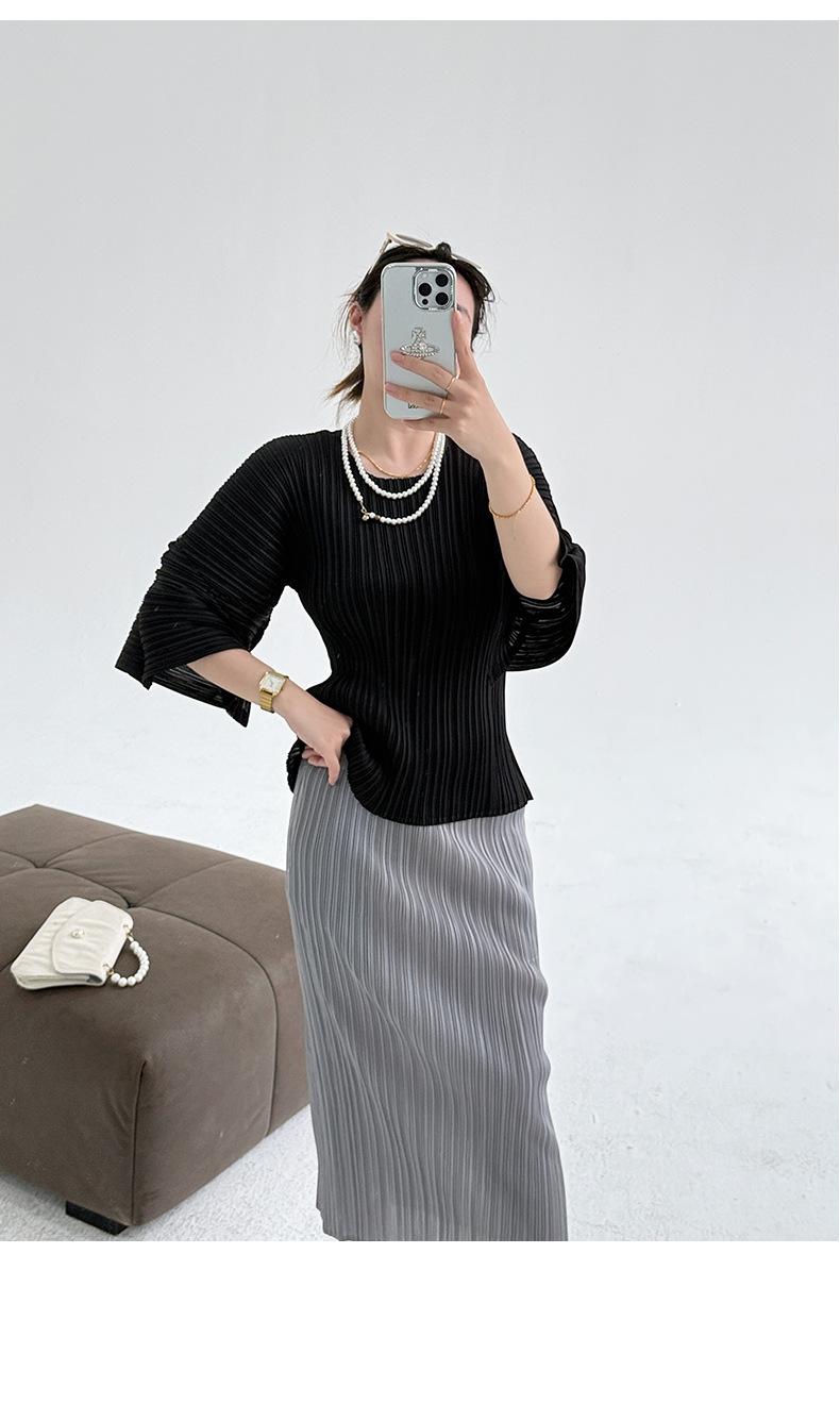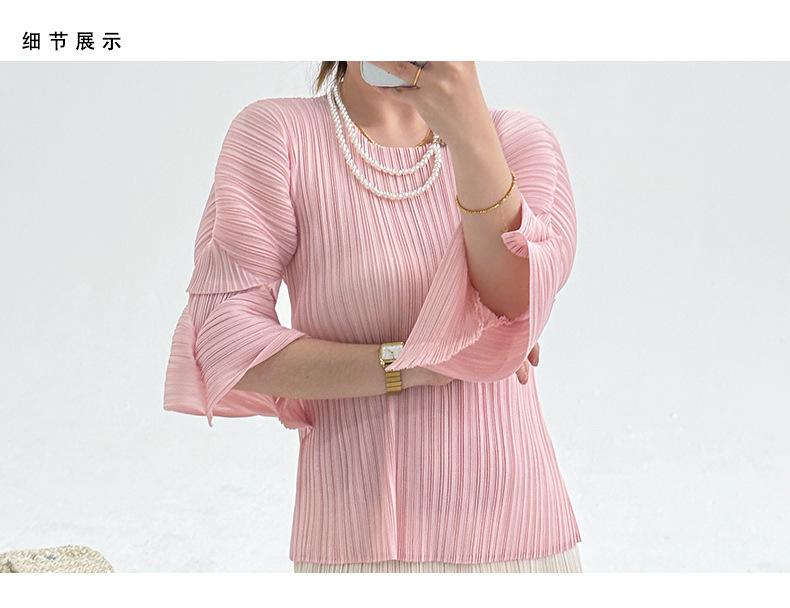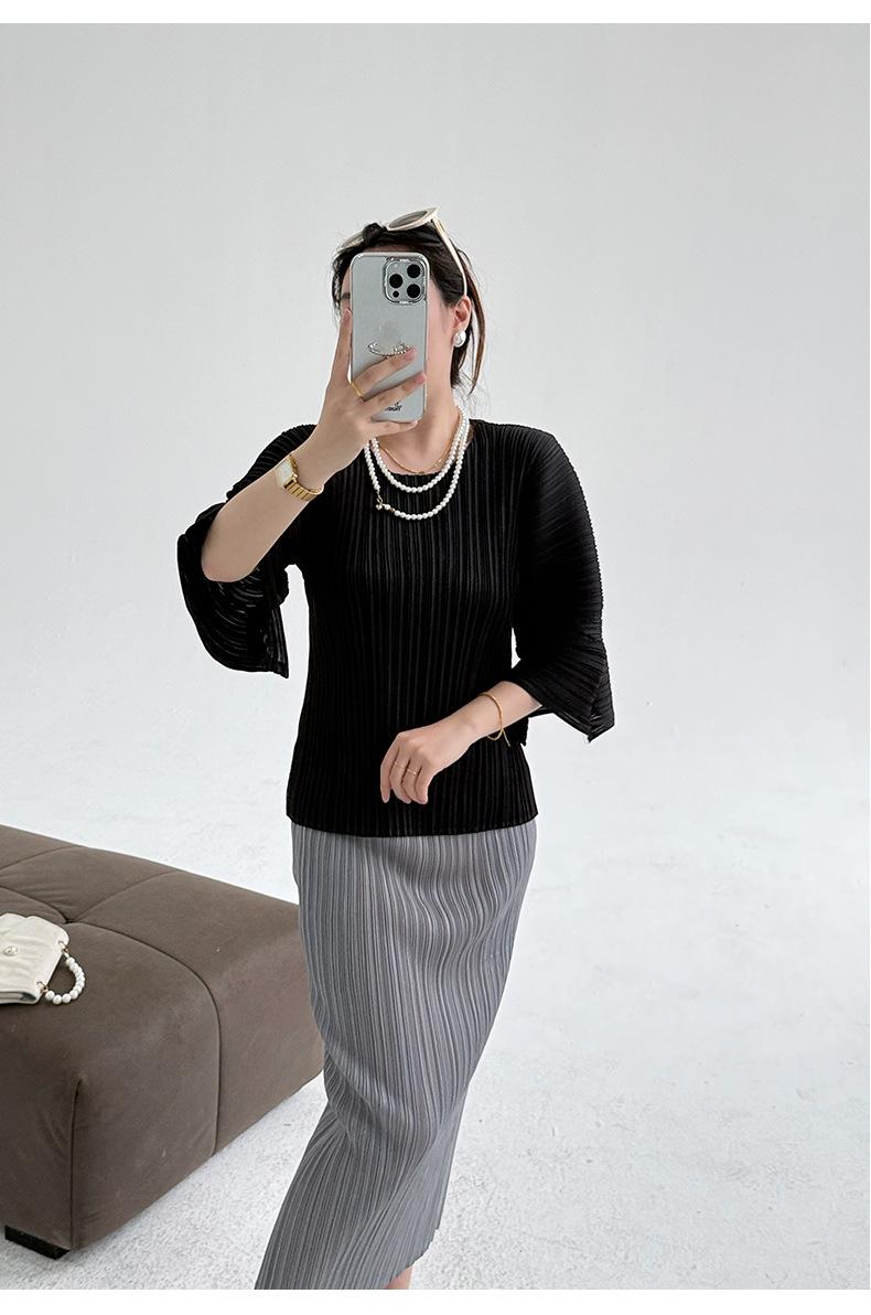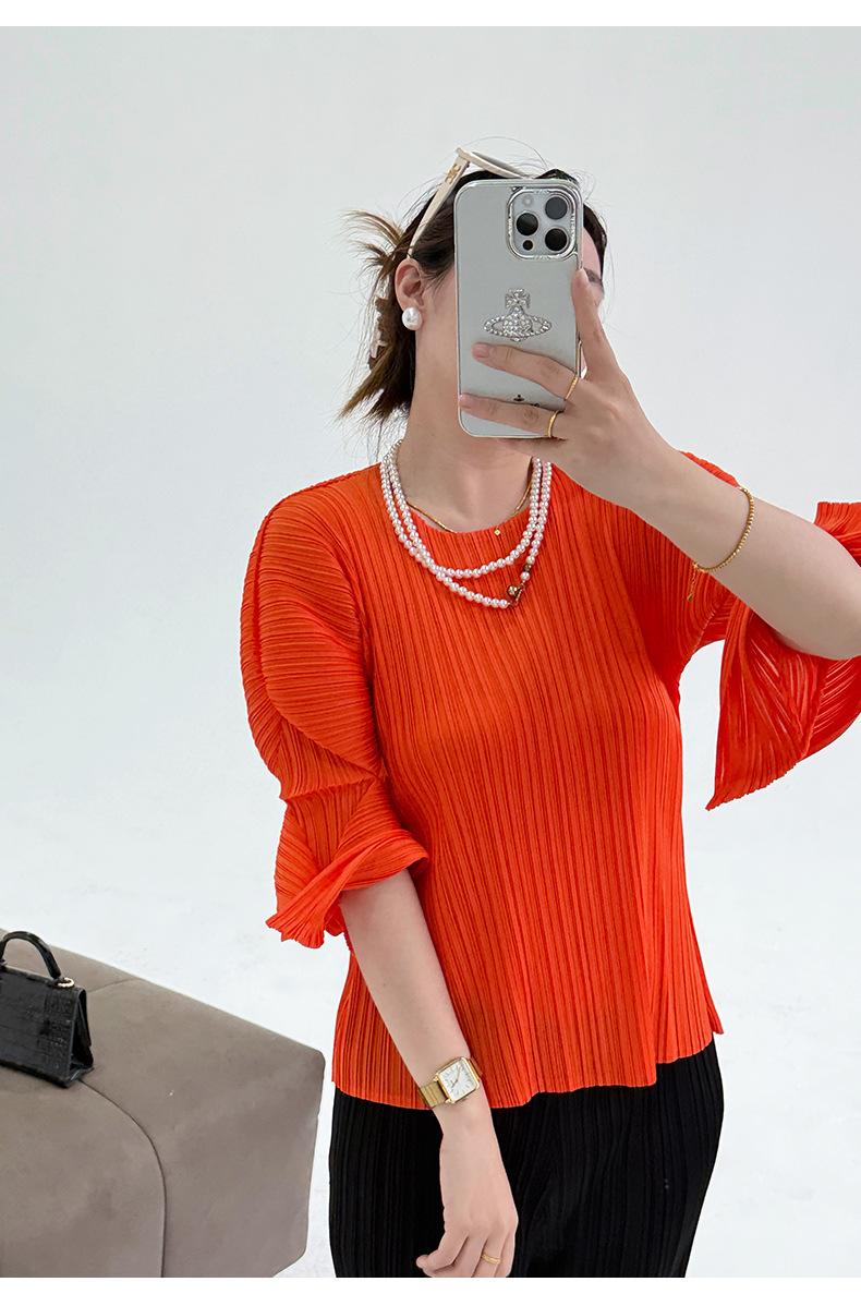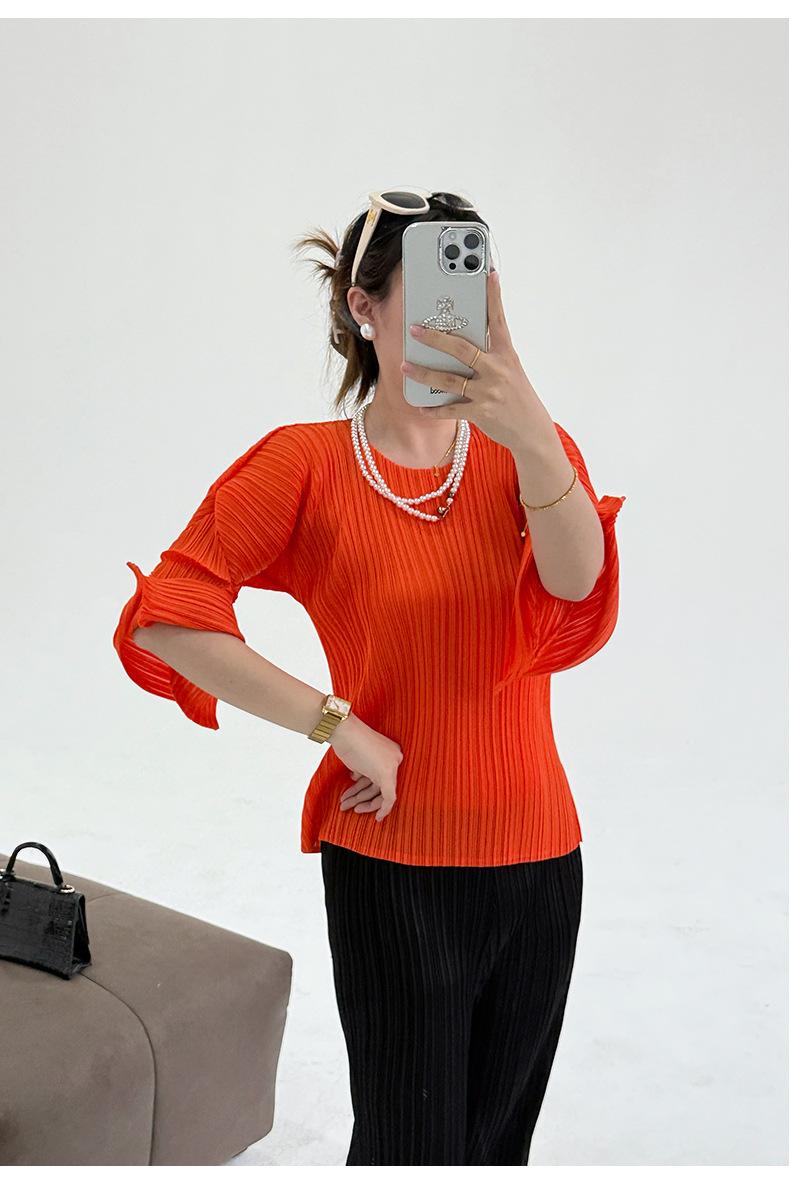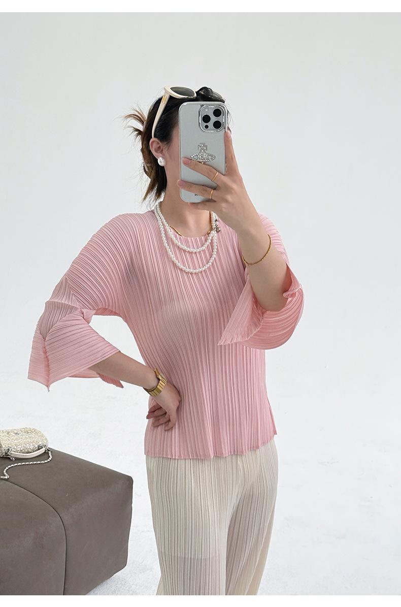 Primavera/Verano 2025 Nuevo Diseño Nicho Moda Mujer Manga Abullonada Cuello Redondo Ajuste Slim Versátil Camiseta Casual