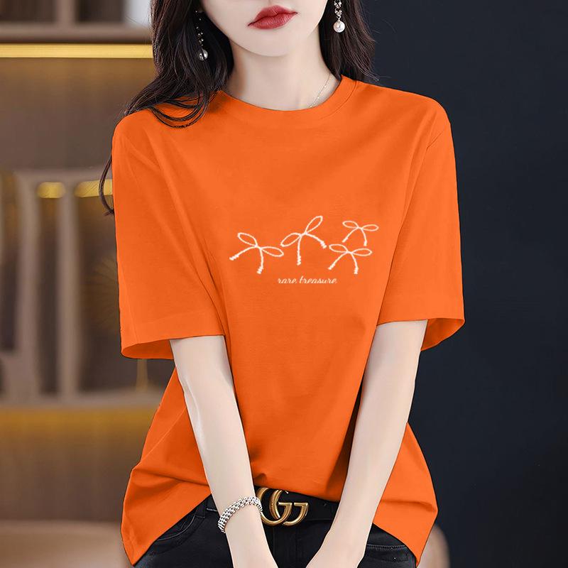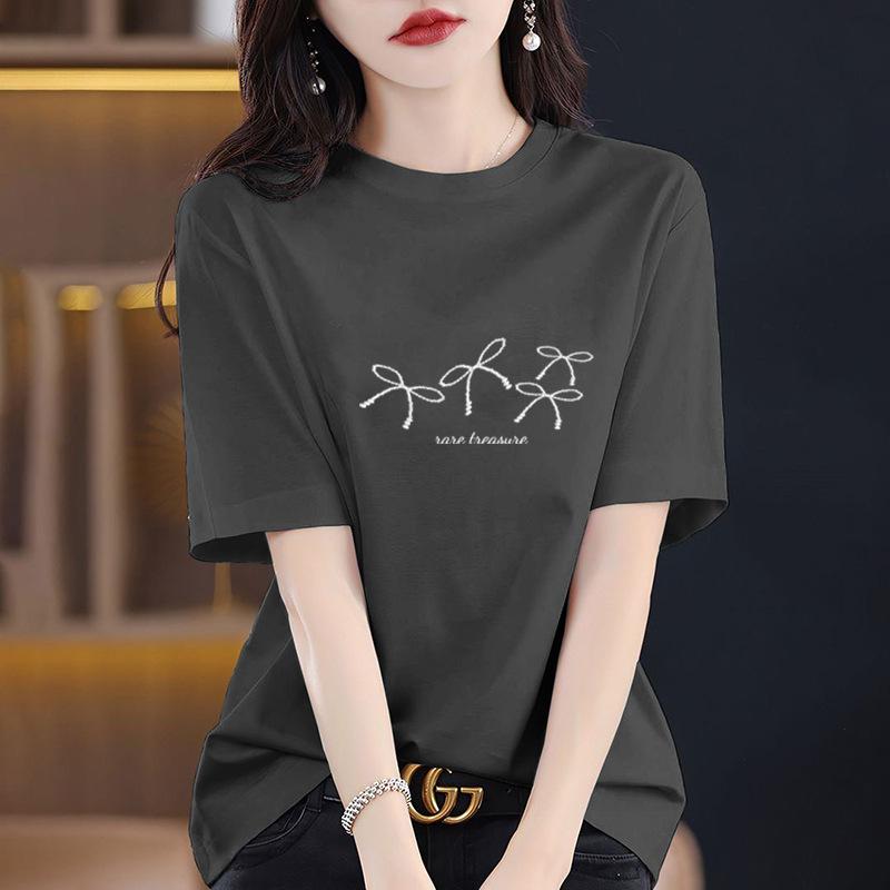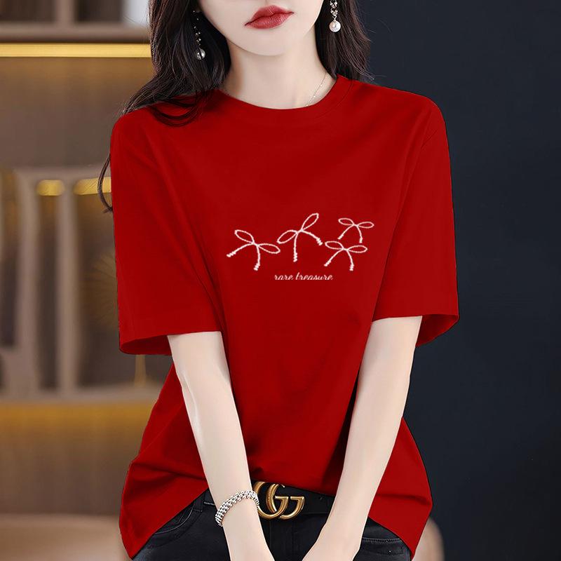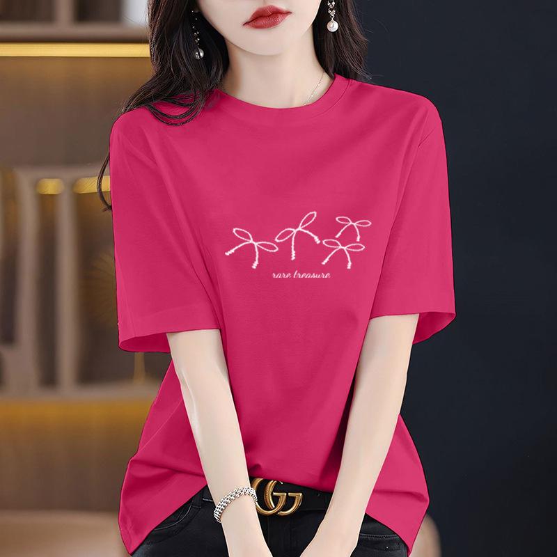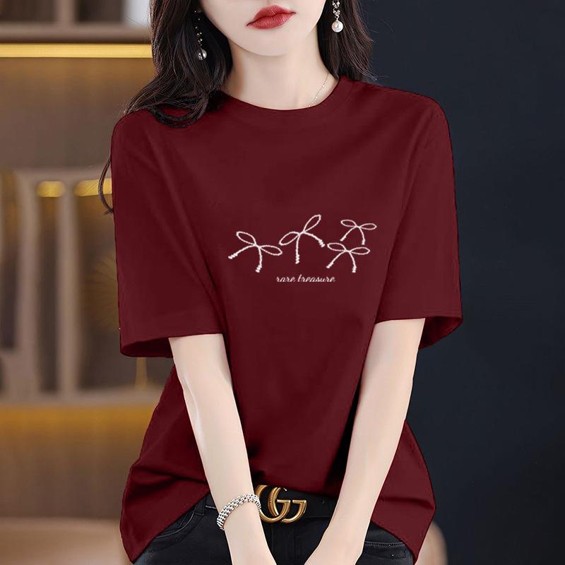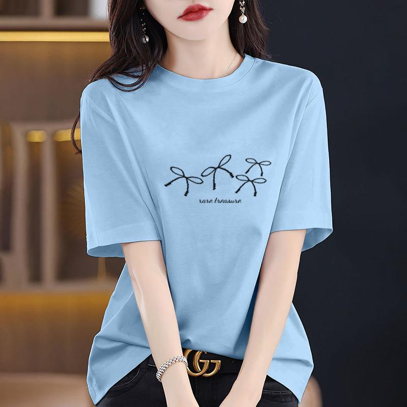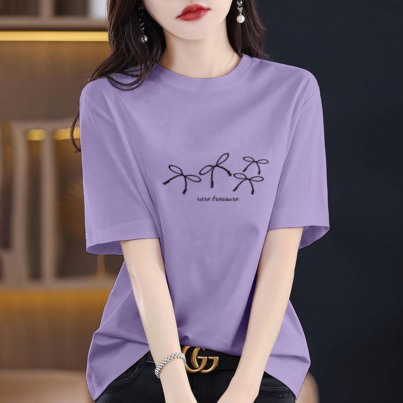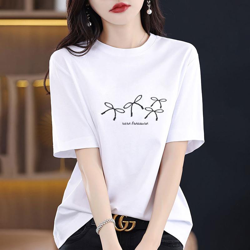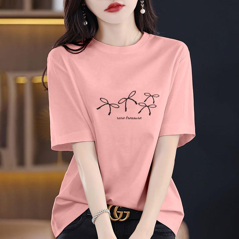 Compra Camiseta Americana Retro con Lazo de Manga Corta para Mujer 2025 Nuevo Verano Algodón Puro Estampada Manga Media Camiseta Holgada Top al por mayor en Joom.pro
