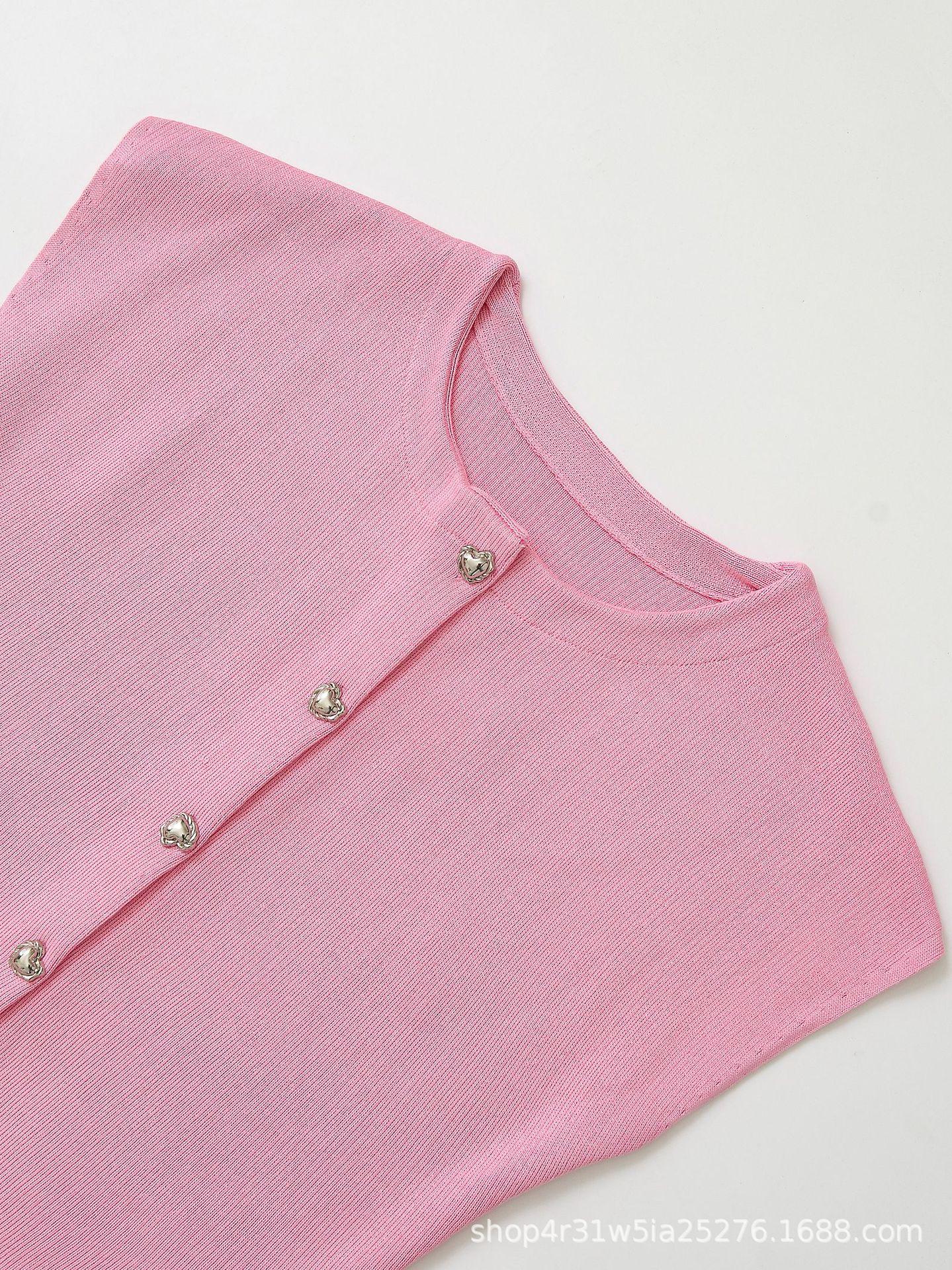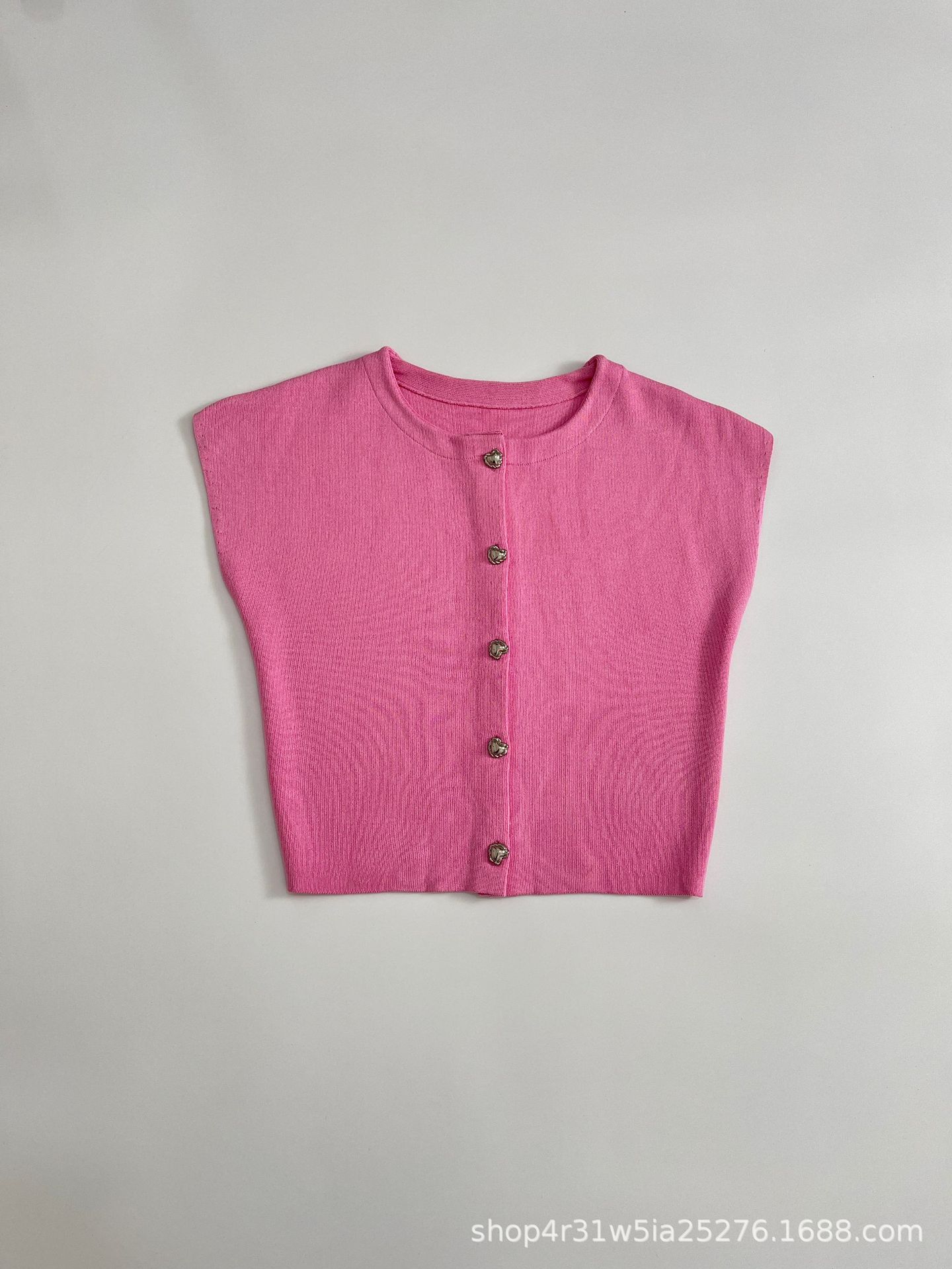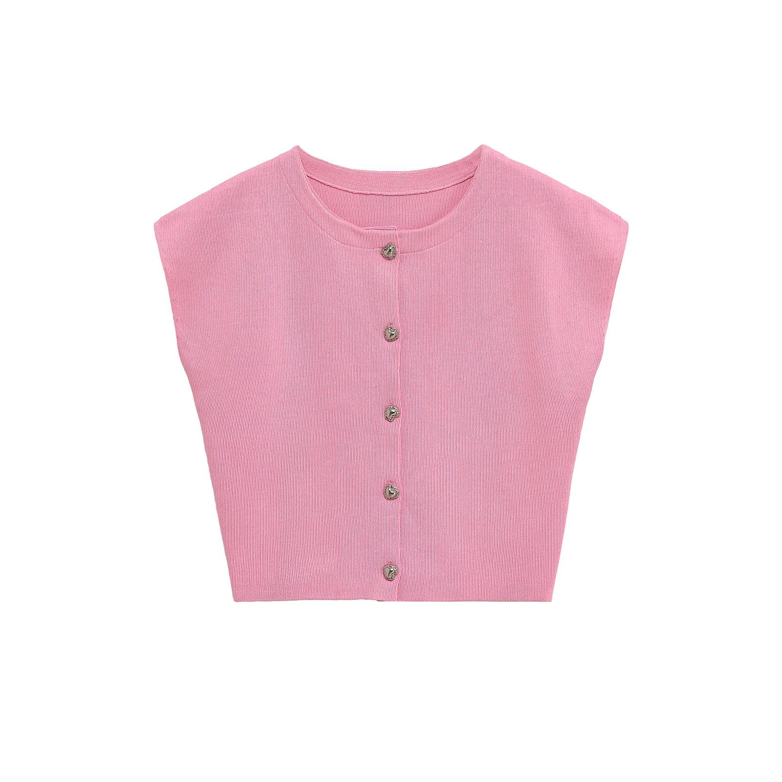 Amazon Comercio Exterior Transfronterizo Venta al por Mayor Verano 2025 Nueva Moda Top de Punto sin Mangas con Cuello Redondo y Botones en Forma de Corazón