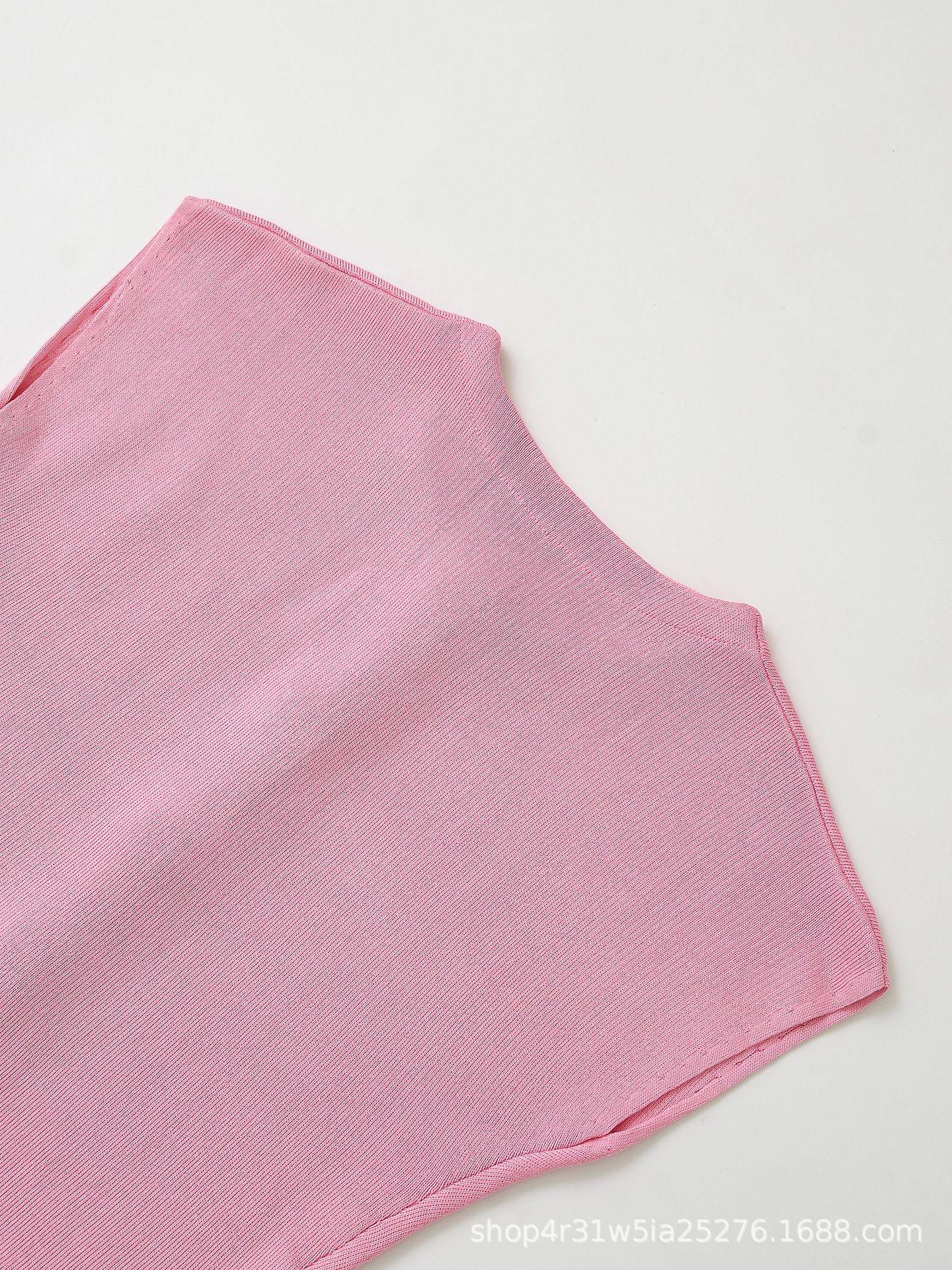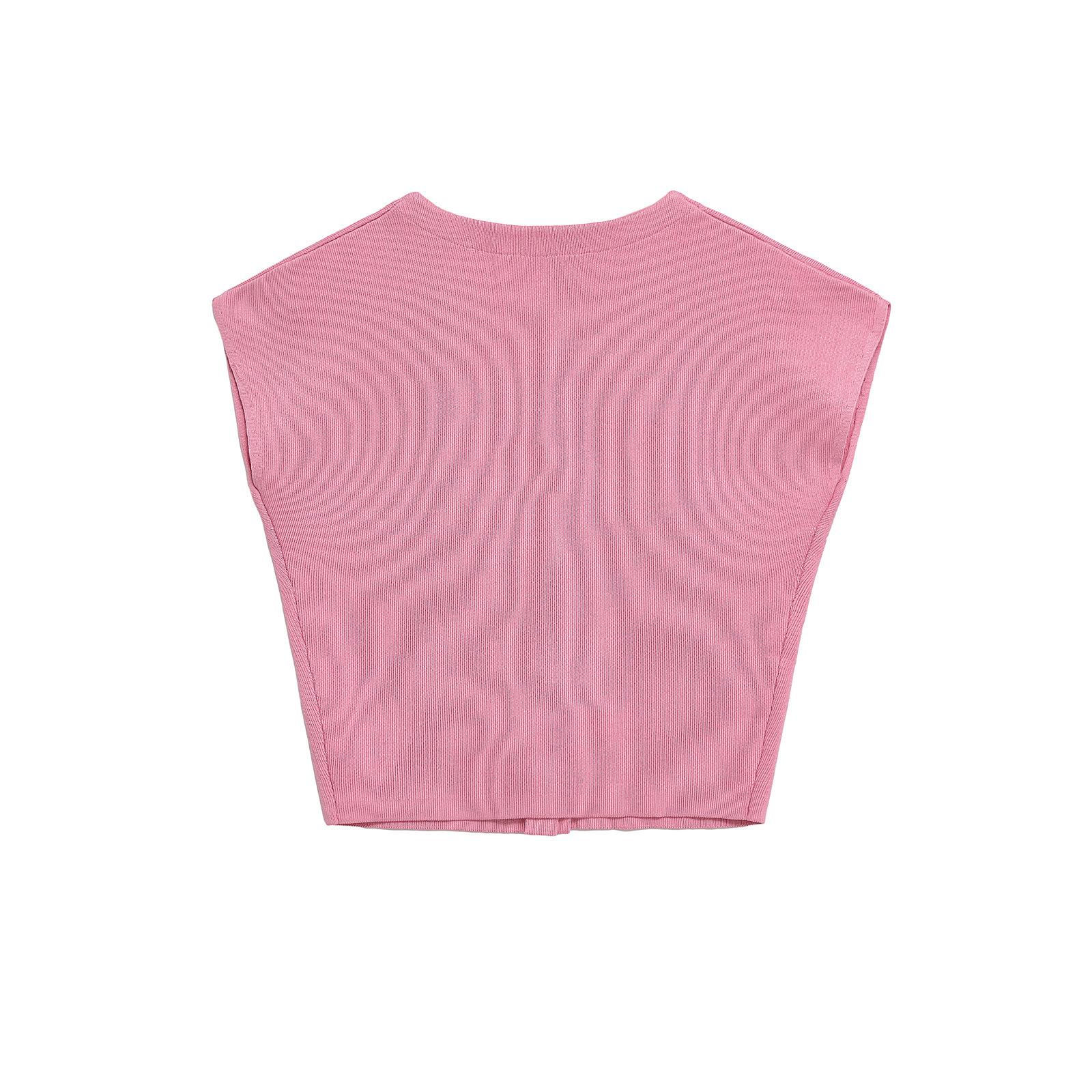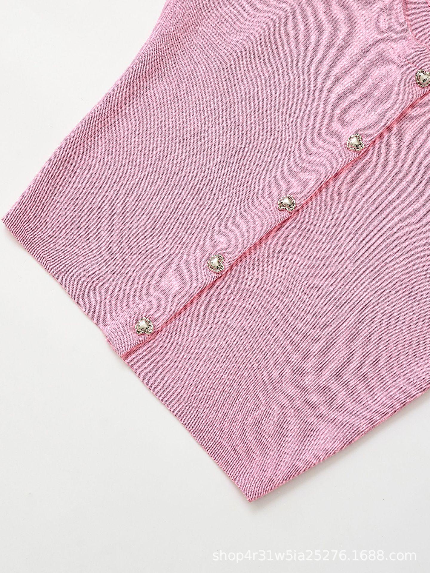 Amazon Comercio Exterior Transfronterizo Venta al por Mayor Verano 2025 Nueva Moda Top de Punto sin Mangas con Cuello Redondo y Botones en Forma de Corazón