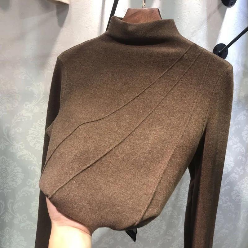 otoño e invierno 2022 terciopelo alemán corte ajustado ropa interior cuello medio alto cálida camiseta base nueva versión coreana camiseta de manga larga ropa de mujer