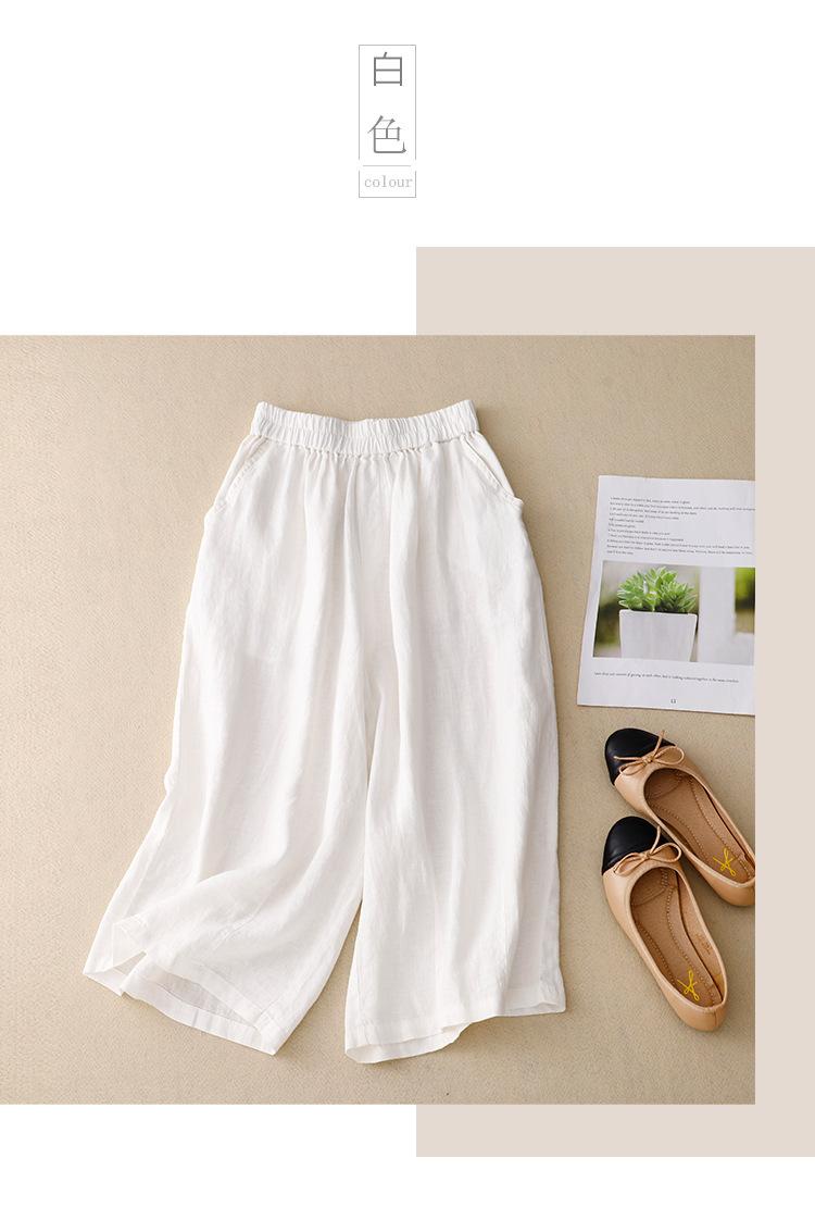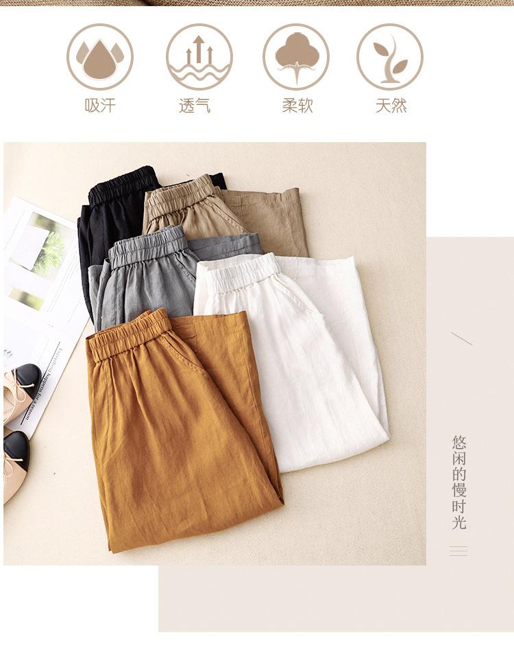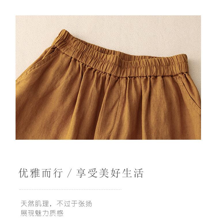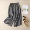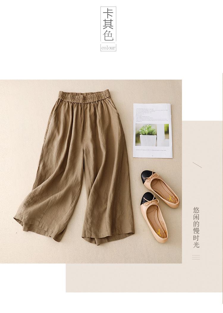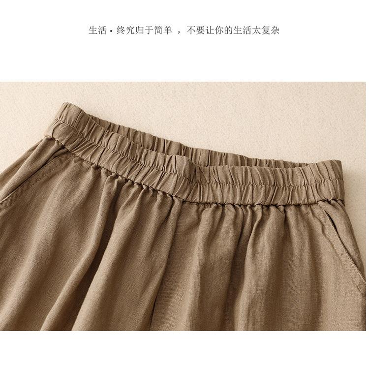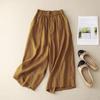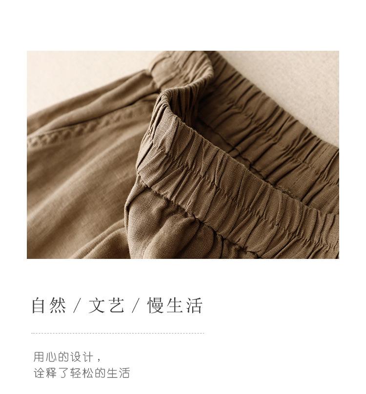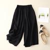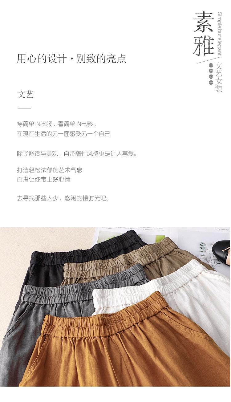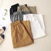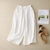 Verano 2025 Nuevo Estilo Literario Algodón y Lino Color Sólido Pantalones Rectos de Pierna Ancha para Mujer Cintura Elástica Versátiles Pantalones Cortos