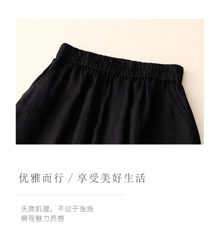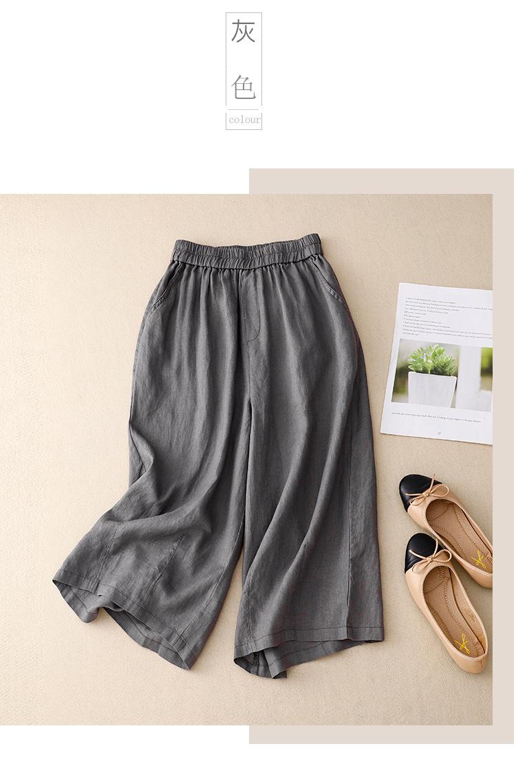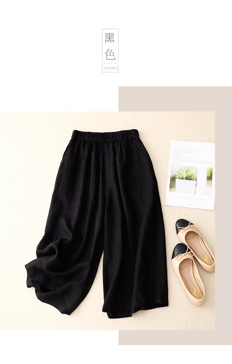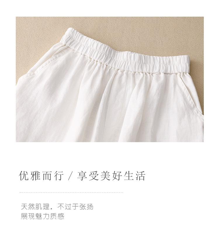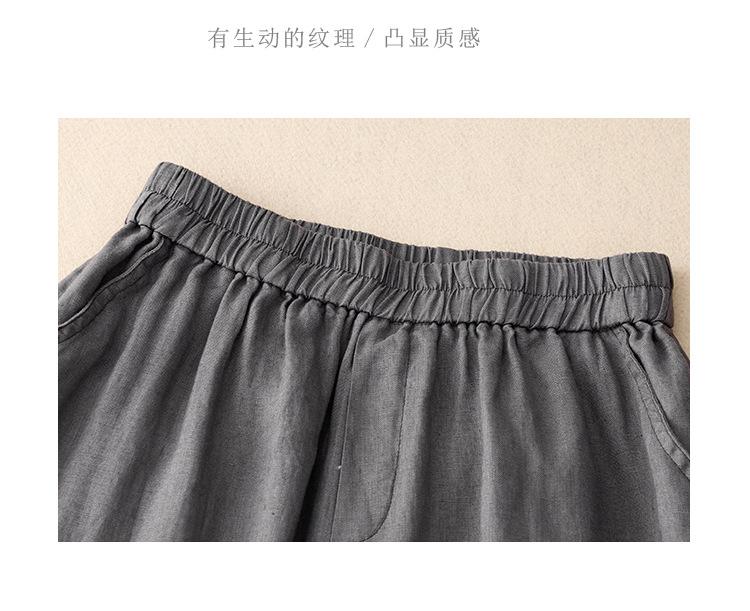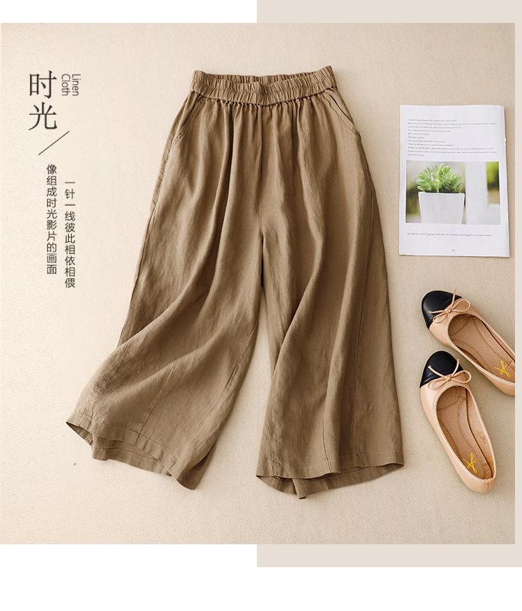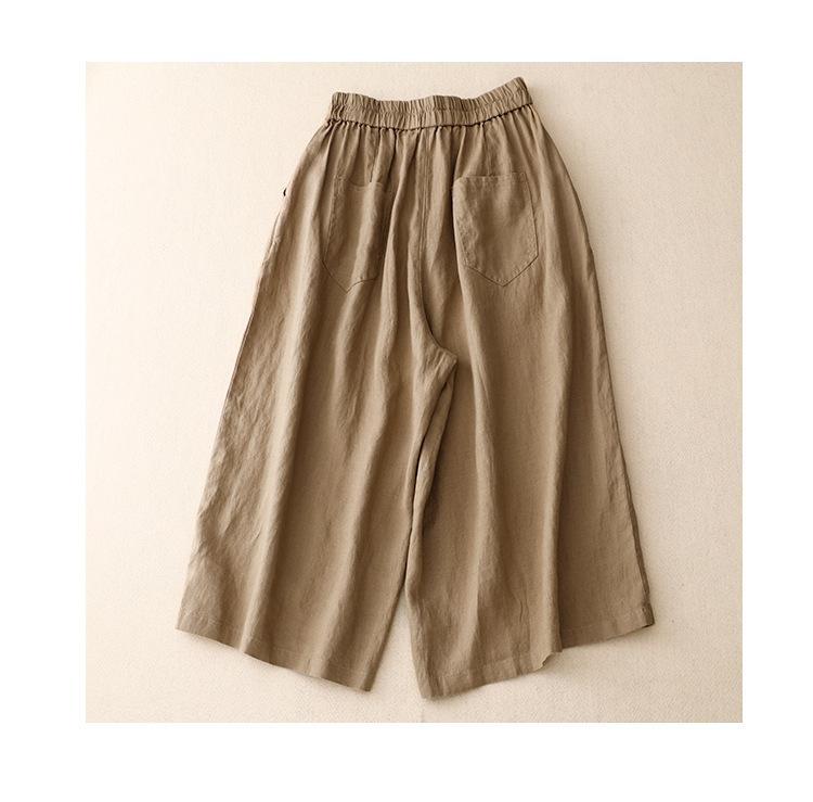 Verano 2025 Nuevo Estilo Literario Algodón y Lino Color Sólido Pantalones Rectos de Pierna Ancha para Mujer Cintura Elástica Versátiles Pantalones Cortos