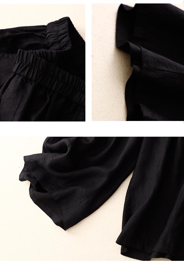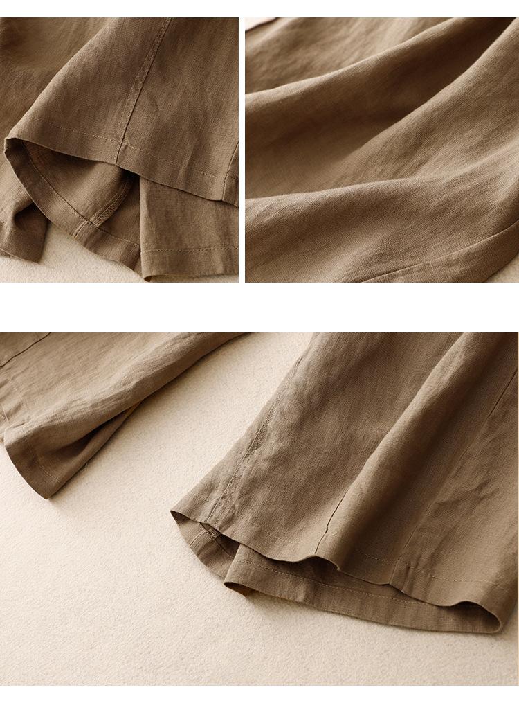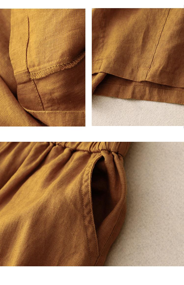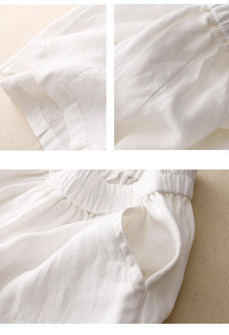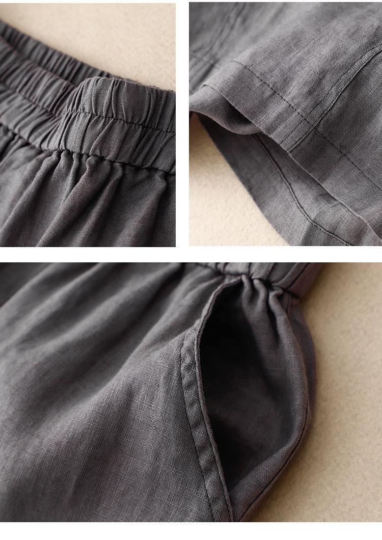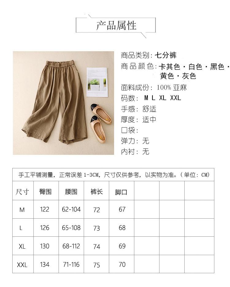 Verano 2025 Nuevo Estilo Literario Algodón y Lino Color Sólido Pantalones Rectos de Pierna Ancha para Mujer Cintura Elástica Versátiles Pantalones Cortos
