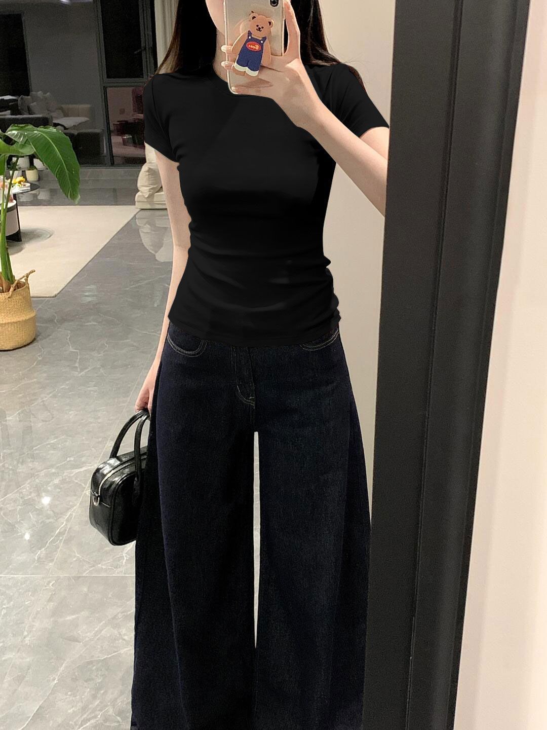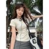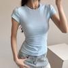Playera de Hombro Derecho Top Ajustado Casual Verano para Mujer Manga Corta Cuello Redondo Jersey Cintura Elástica Playera 2025 Blanco