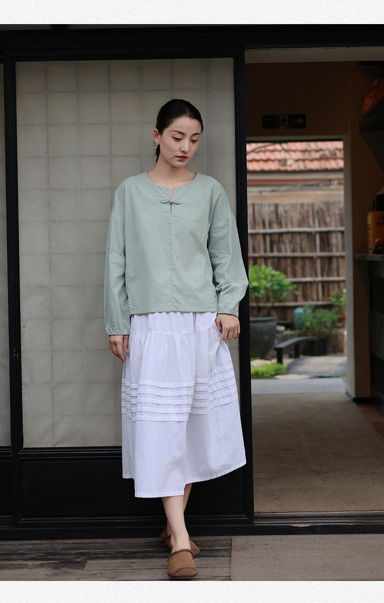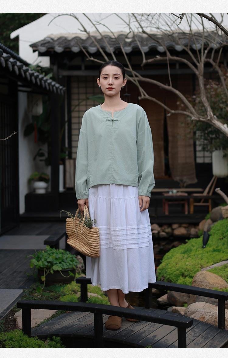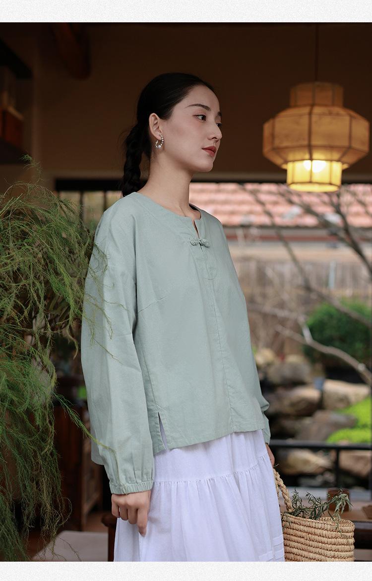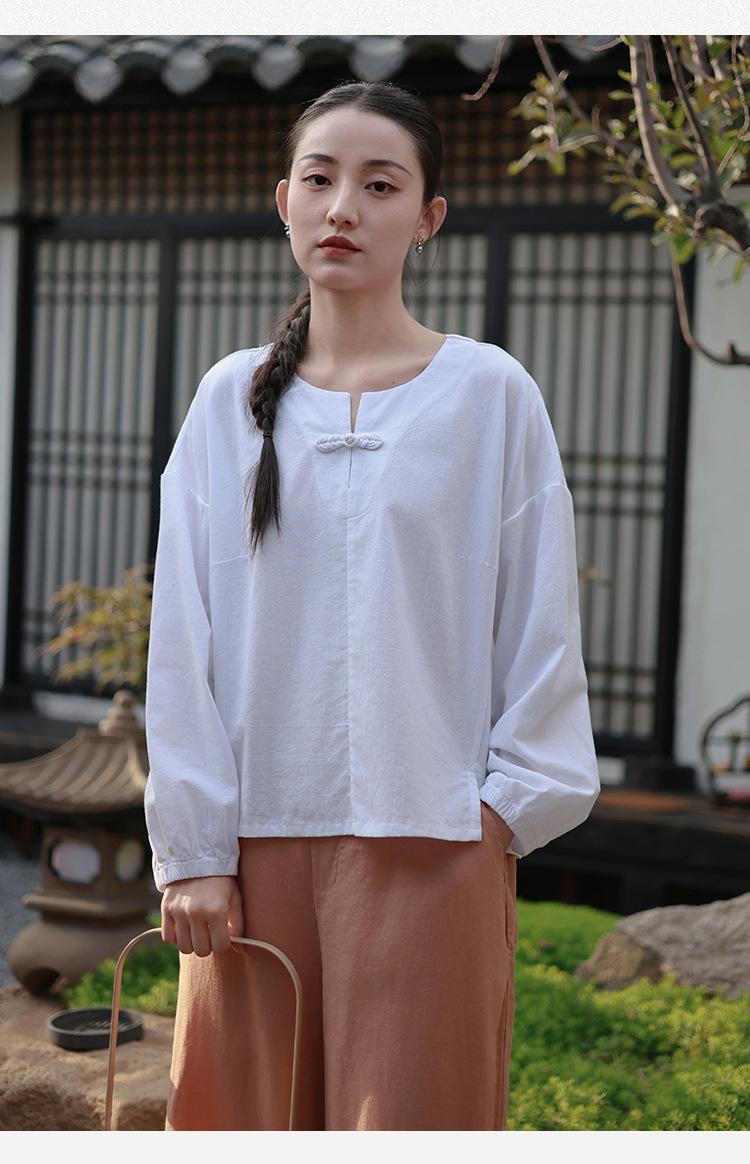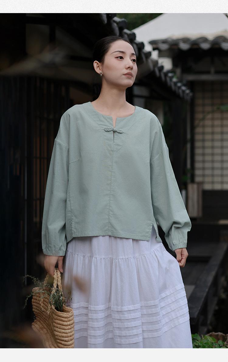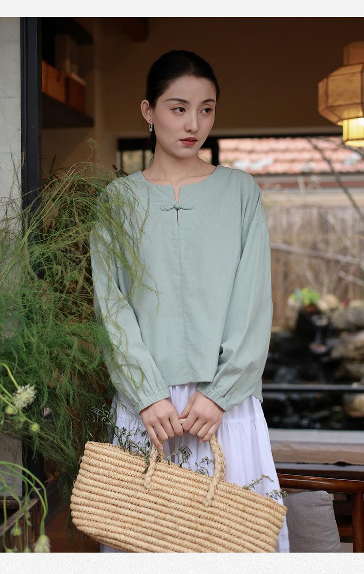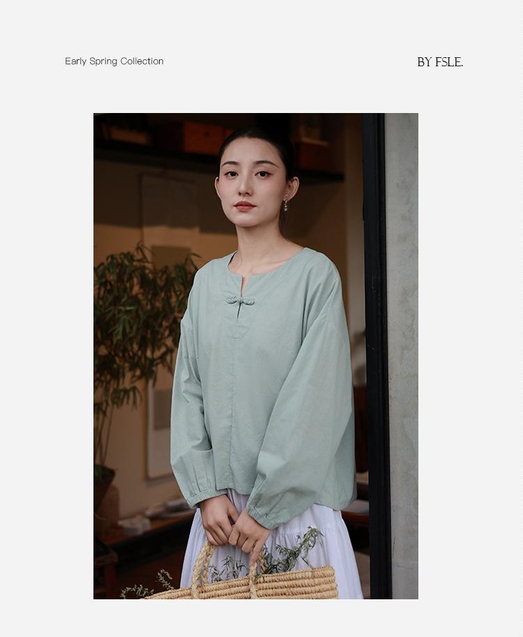 Ropa de Mujer de Nuevo Estilo Chino 2025 Primavera Nuevo Diseño Tops Retro Camisetas Elegantes de Mujer con Hebilla de Disco Estilo Nacional