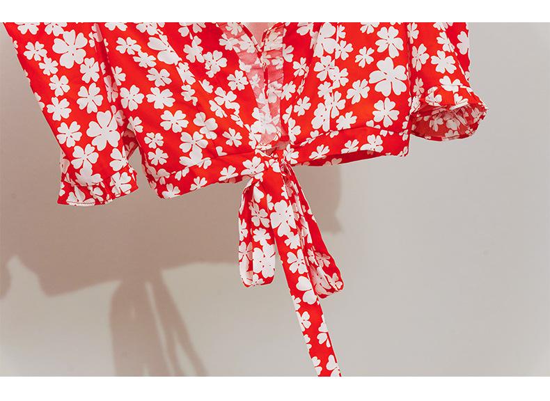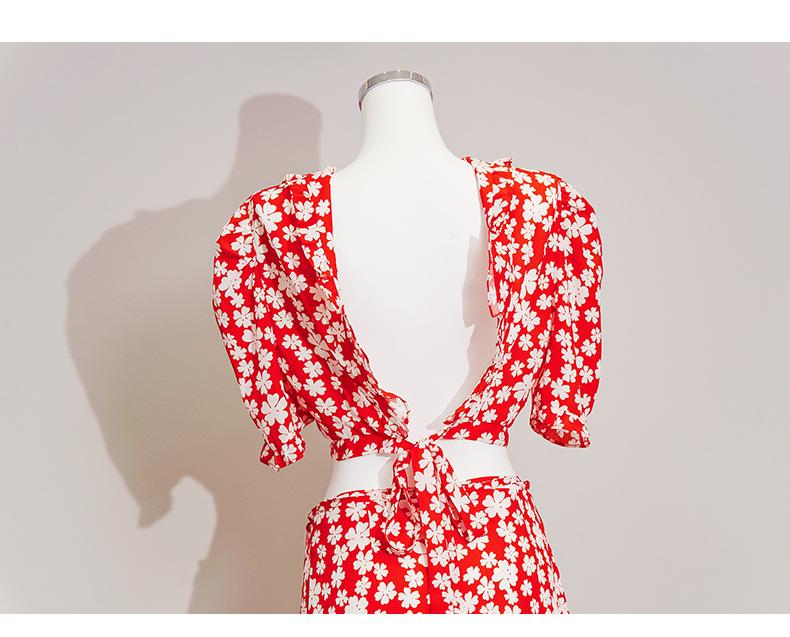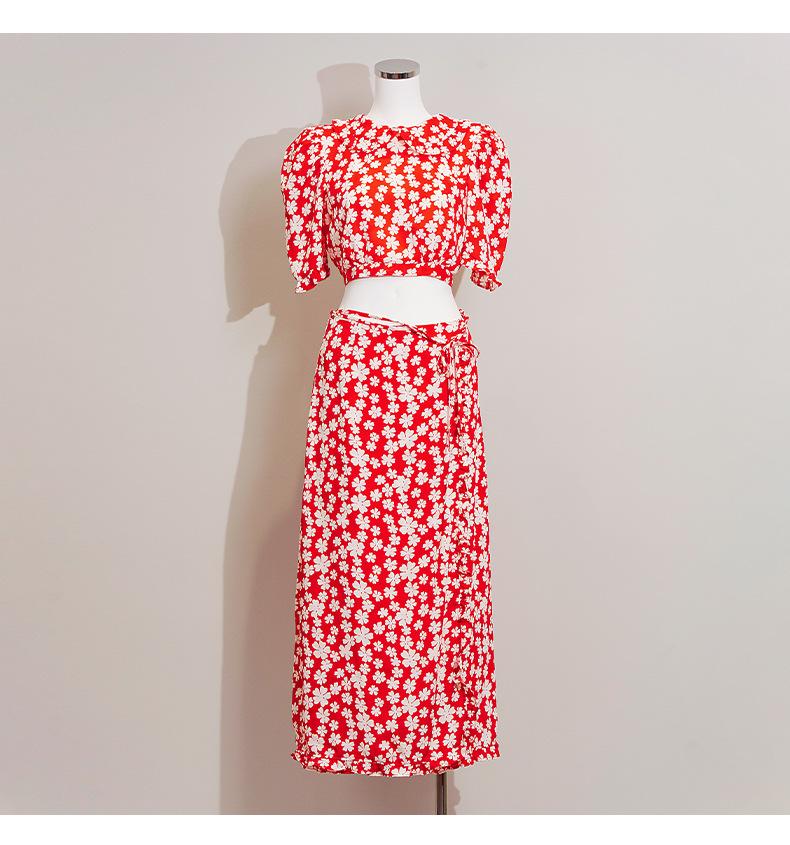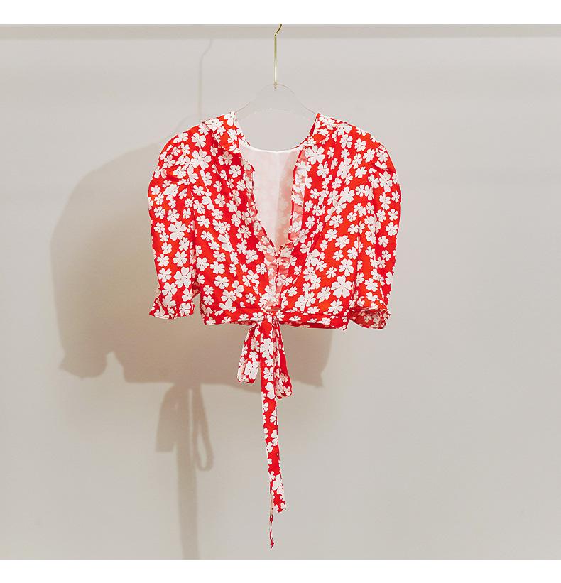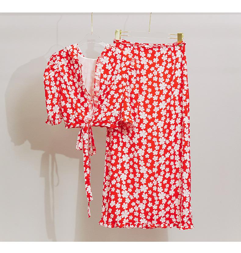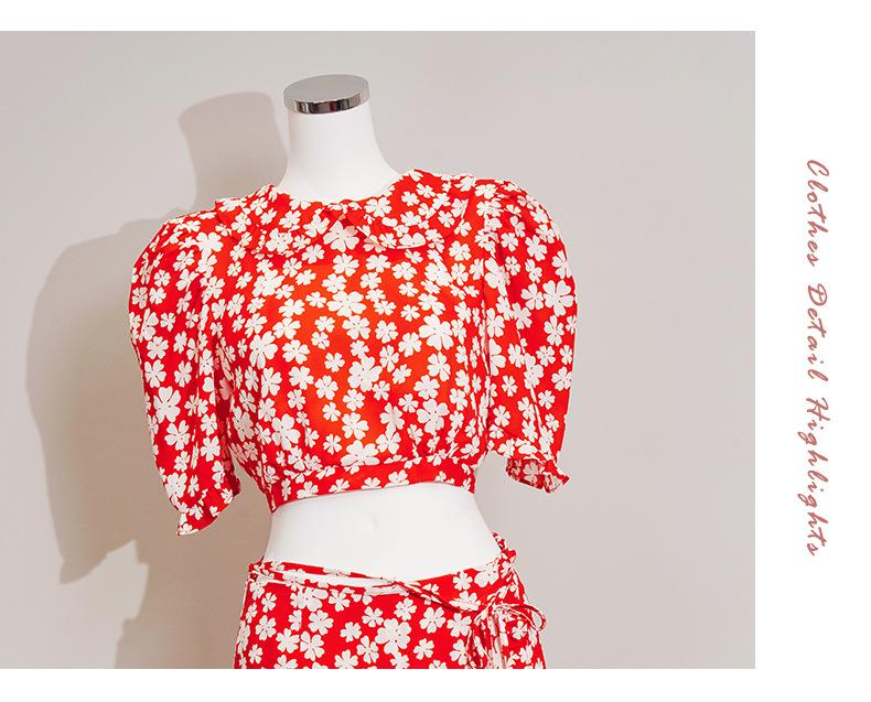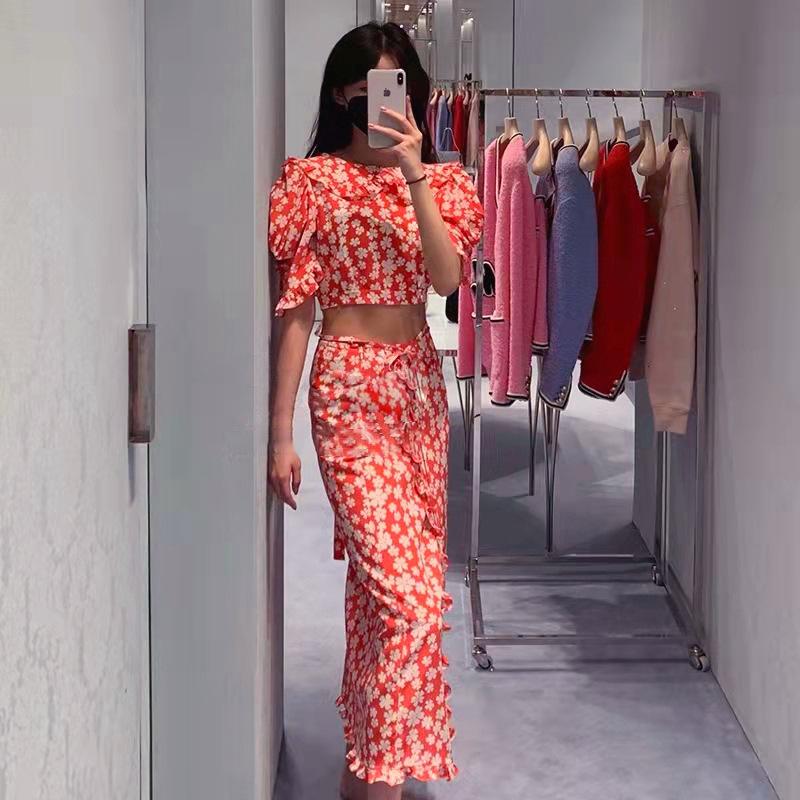 Compra Estilo Francés 2022 Primavera y Verano Nueva Moda Encaje Manga Corta Floral Trendy Estampado Traje de Falda Camisa Dulce para Ir al Trabajo al por mayor en Joom.pro