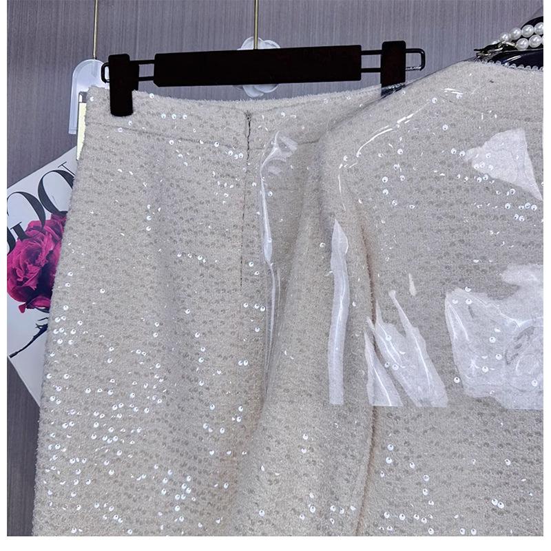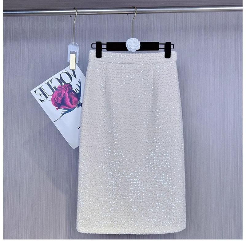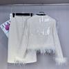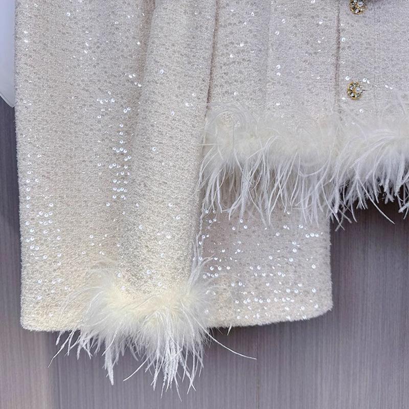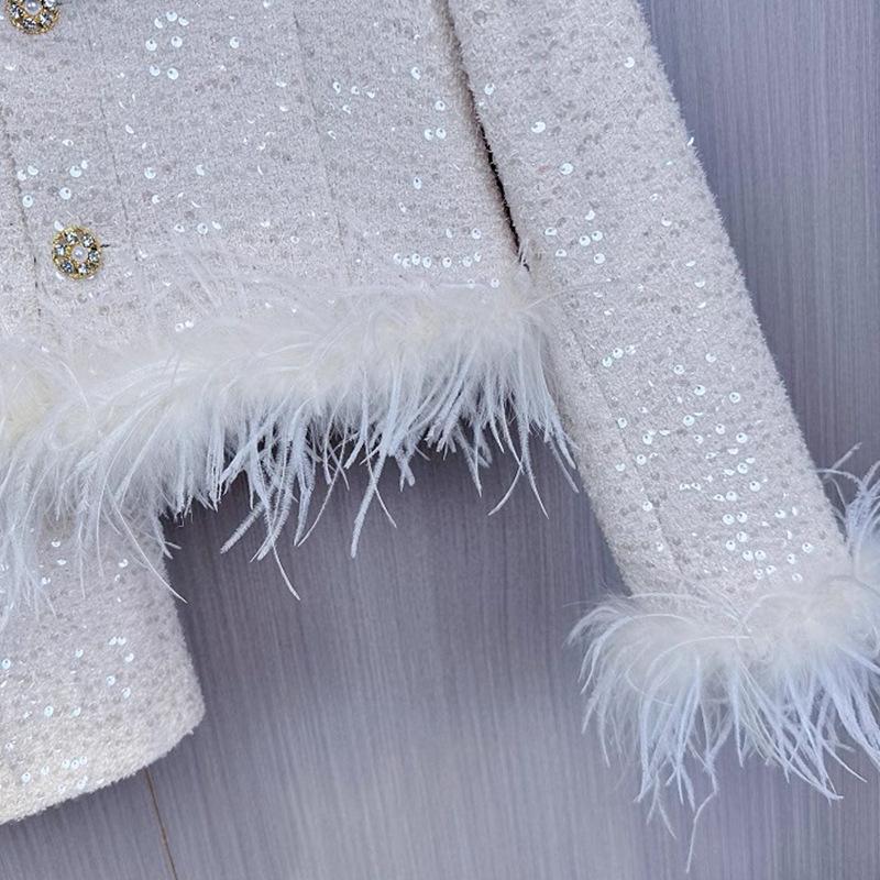 Traje Elegante de Estilo Francés para Celebridades para Mujer Nuevo Abrigo Corto Peludo + Falda Conjunto de Dos Piezas