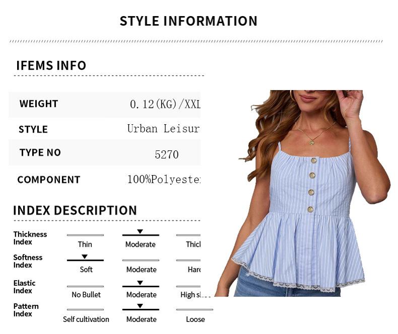 Comercio Exterior Europeo y Americano para Mujer Amazon para Mujer Nuevo 2025 Camisola Chaleco Casual de Moda de Encaje a Rayas