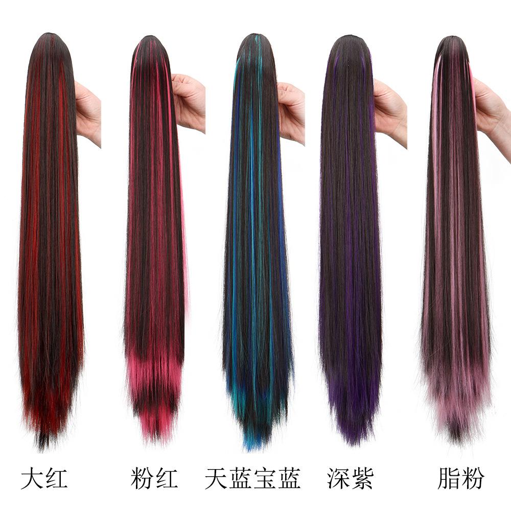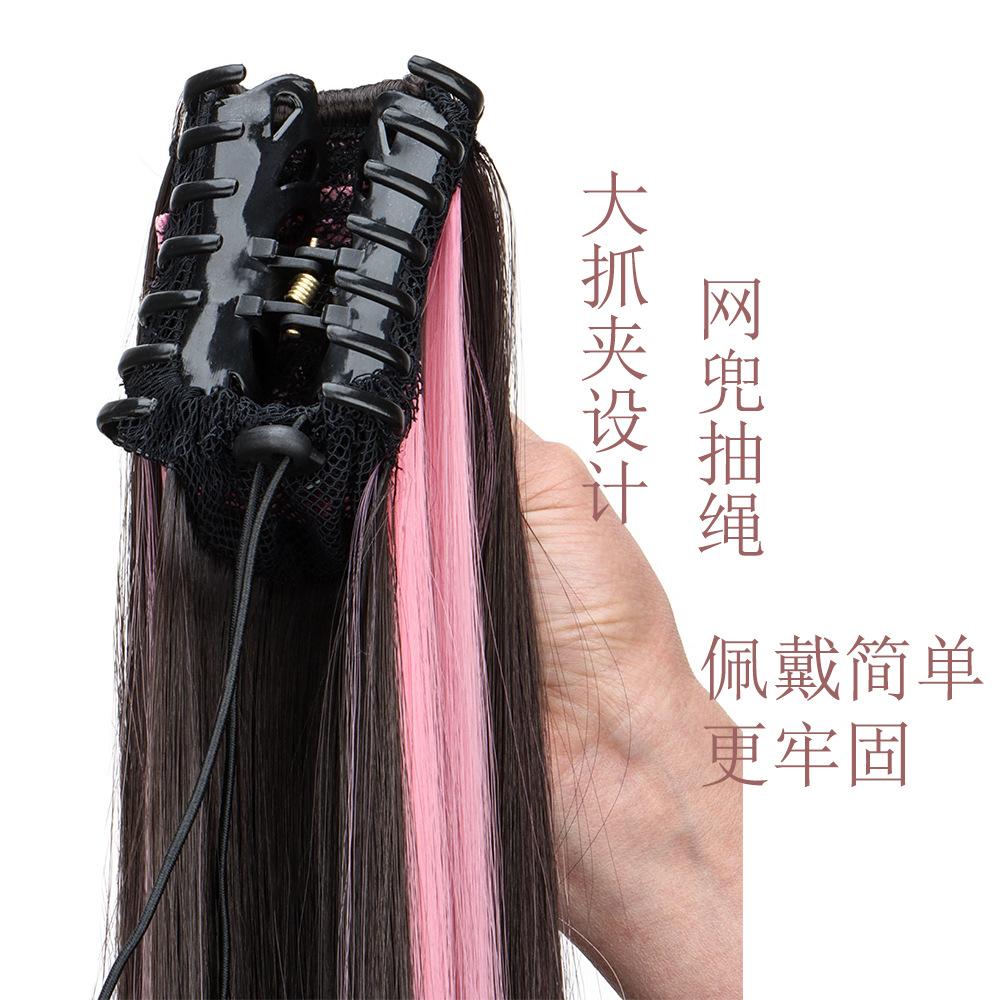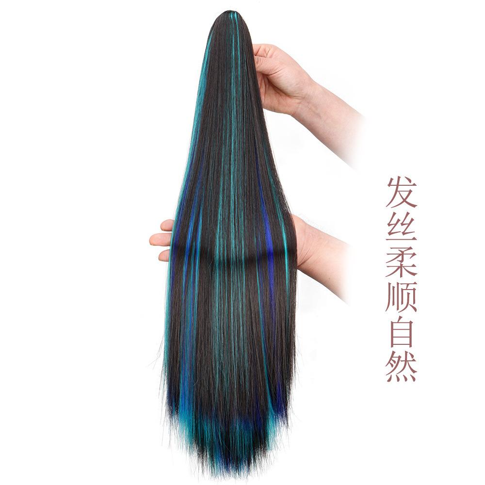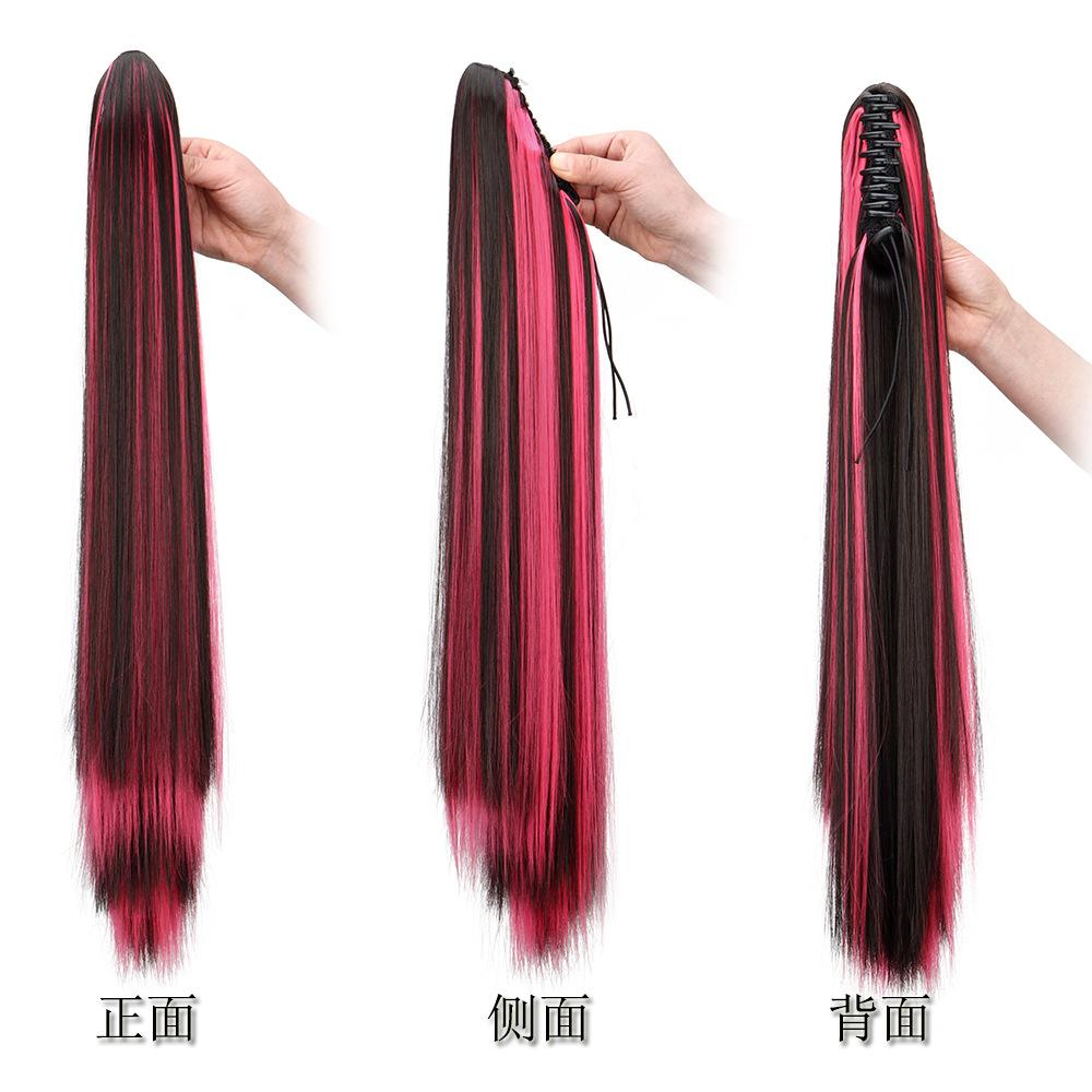 Peluca de Cola de Caballo para Comercio Exterior para Mujeres, Pinza Grande con Reflejos Coloridos, Cola de Caballo de Cabello Lacio, Pinza para Cola de Caballo Alta