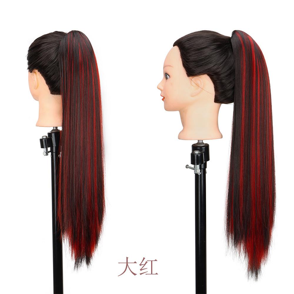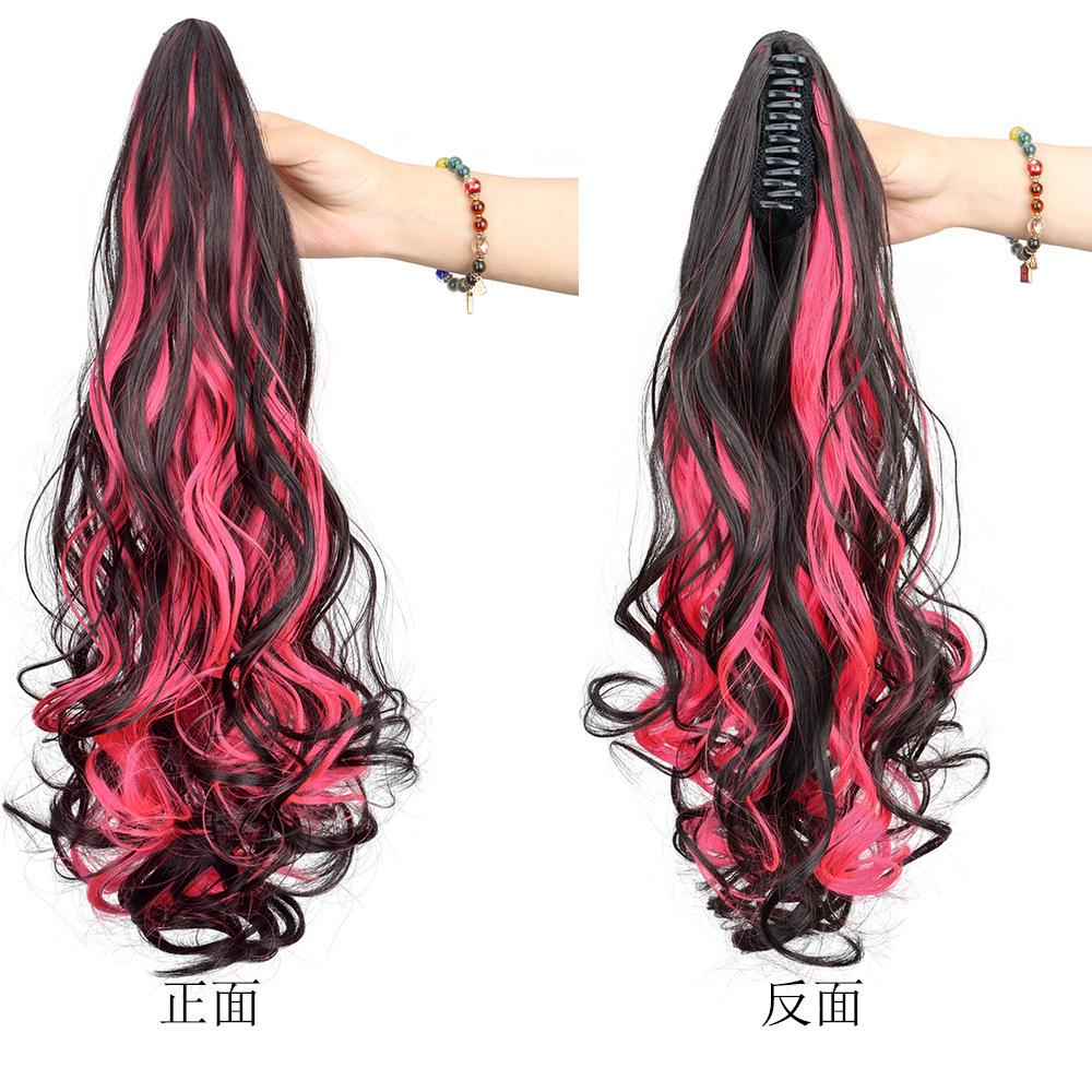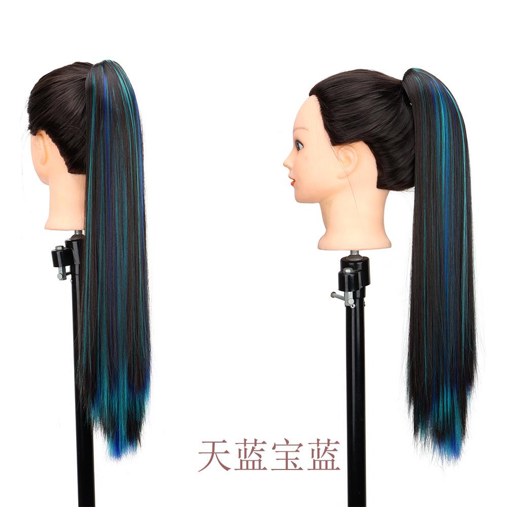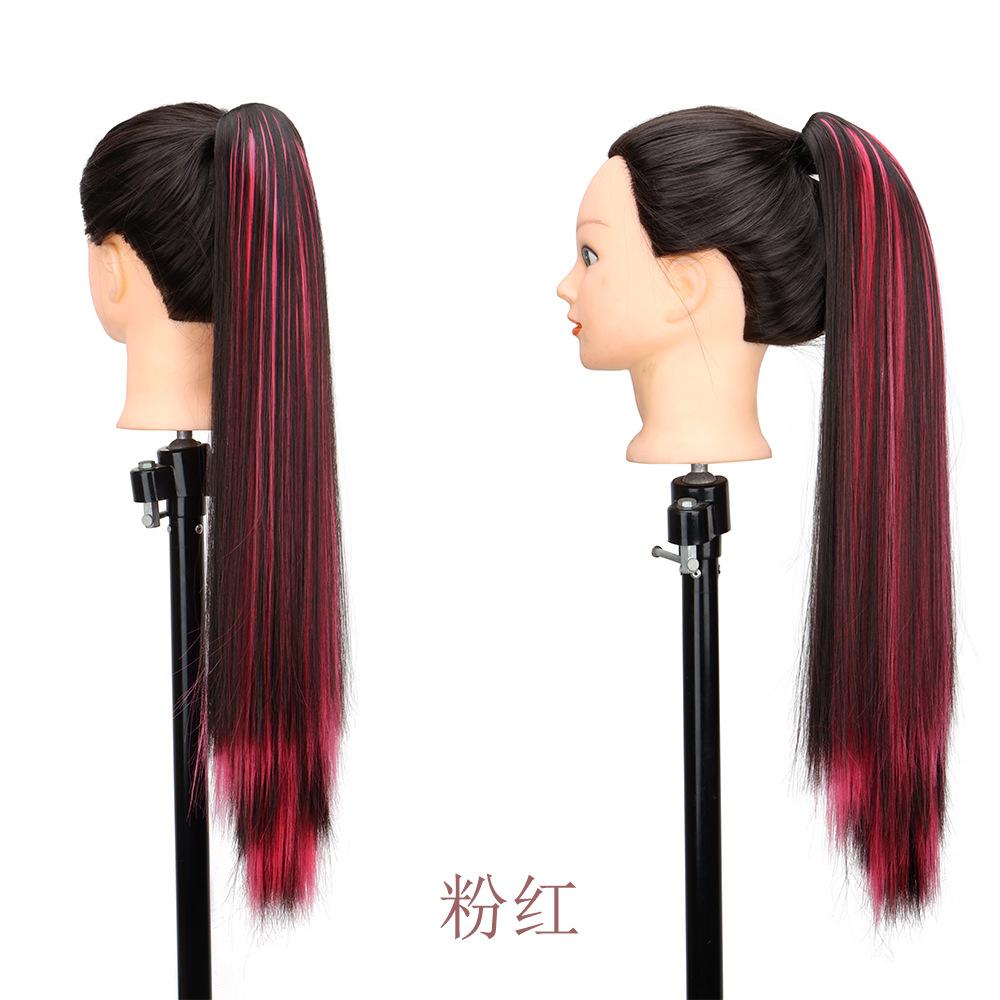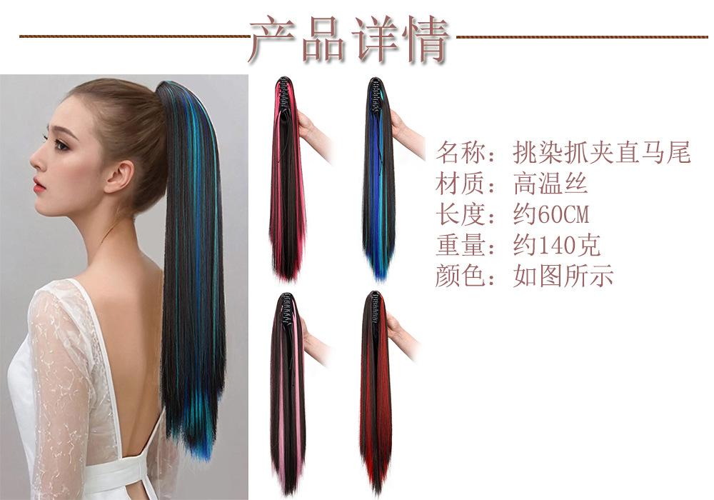 Peluca de Cola de Caballo para Comercio Exterior para Mujeres, Pinza Grande con Reflejos Coloridos, Cola de Caballo de Cabello Lacio, Pinza para Cola de Caballo Alta
