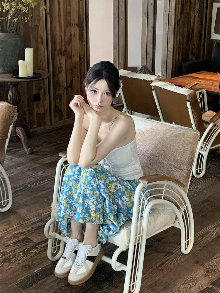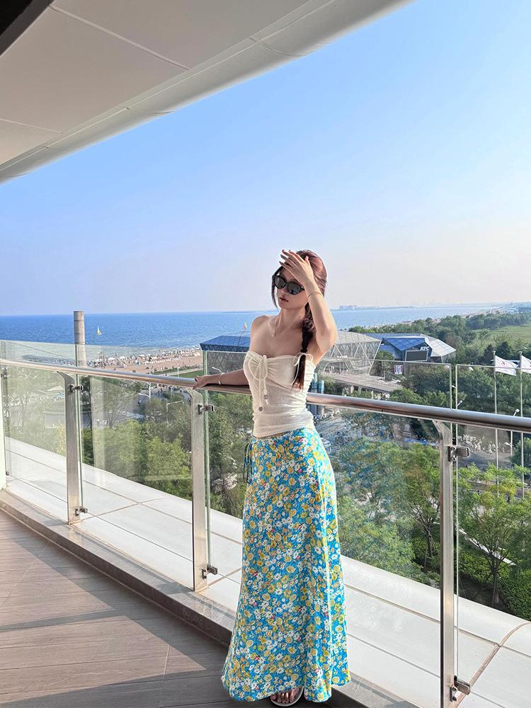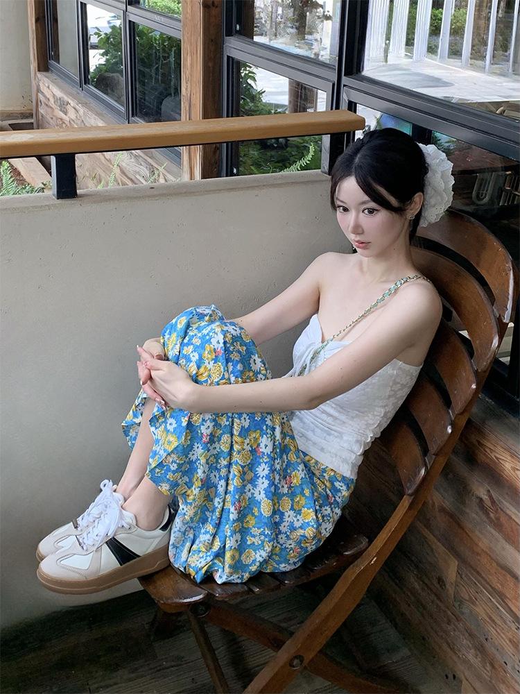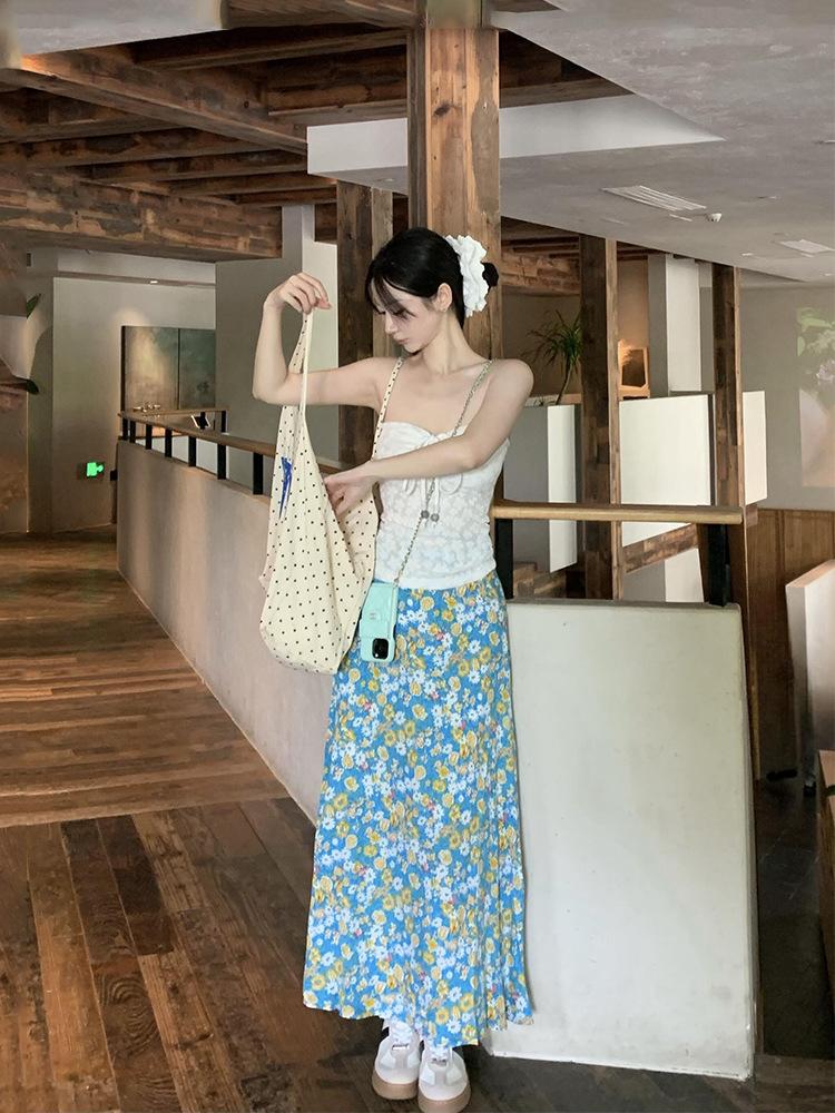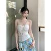Sexy Chaleco Strapless con Diseño Calado para Mujer Verano Ropa Exterior Estilo Vacacional Floral Falda de Cadera Conjunto de Dos Piezas