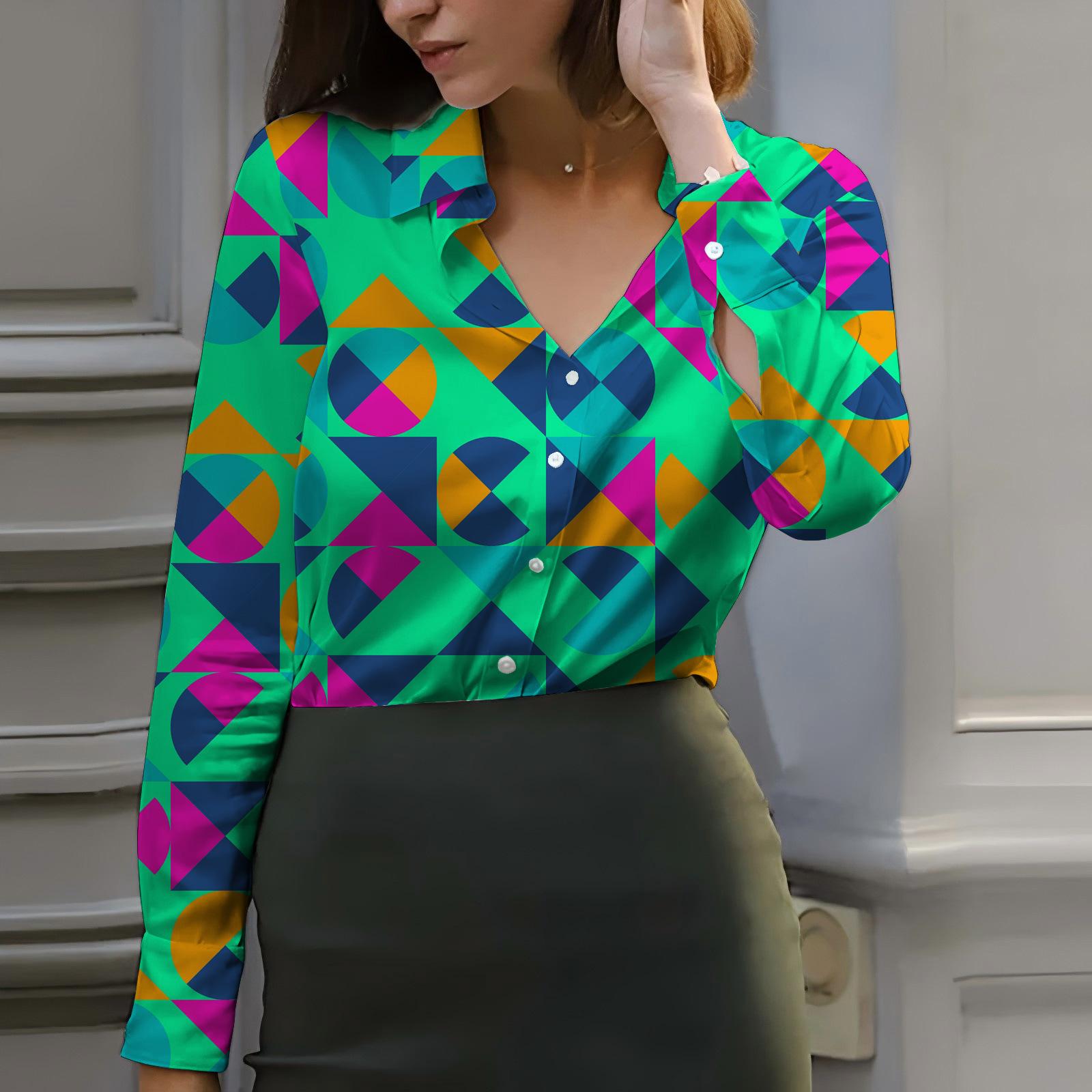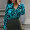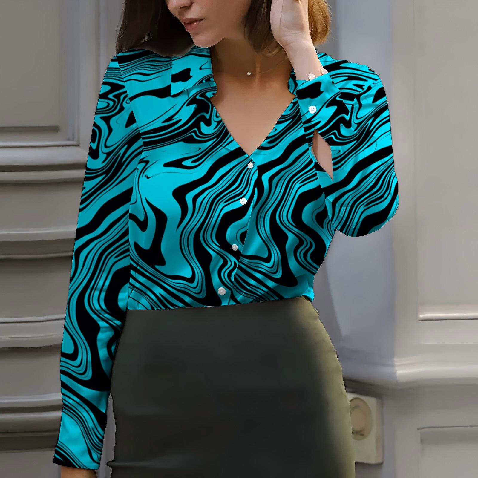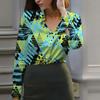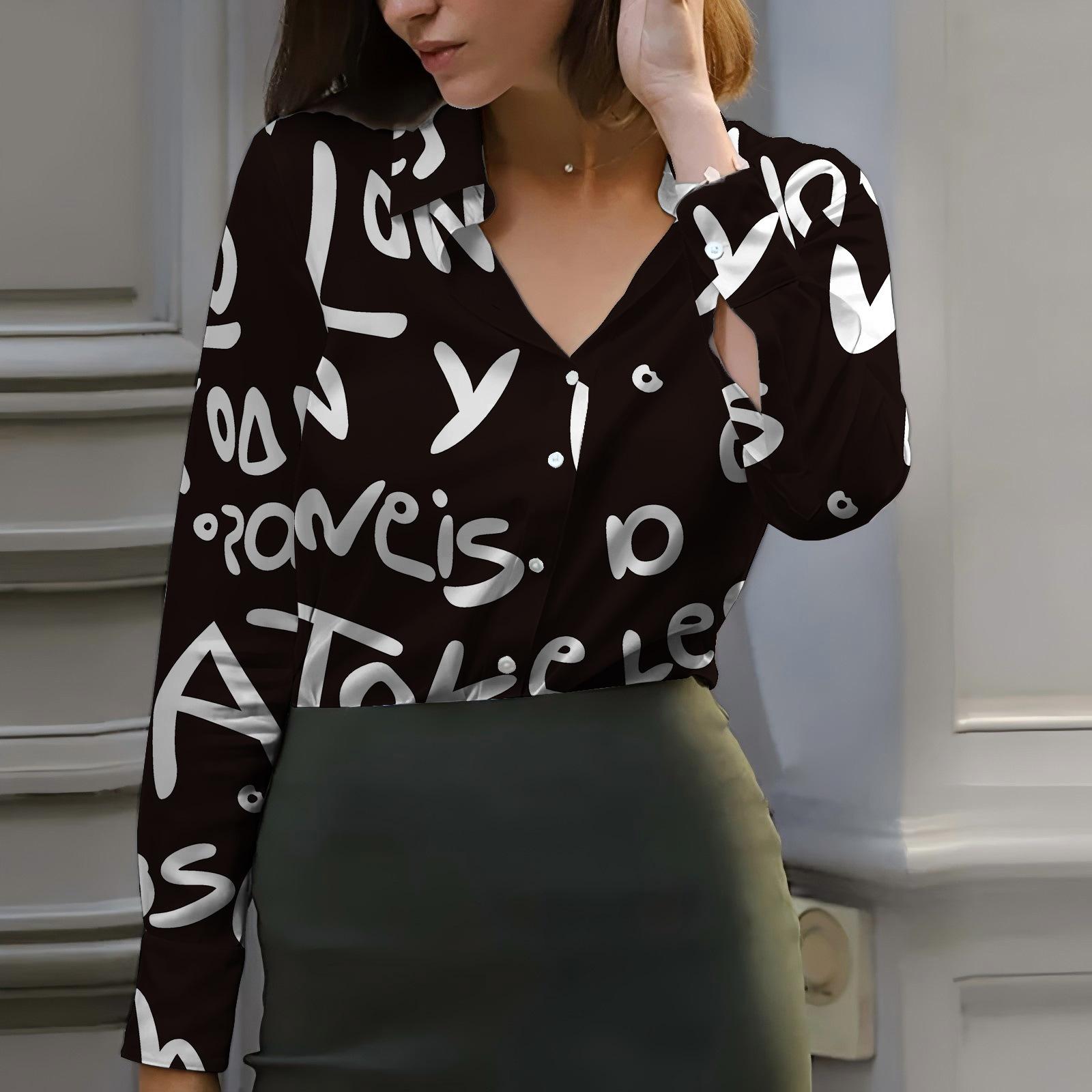 Camisas de Moda Transfronteriza Europea y Americana 2024 Elegantes Camisas de Manga Larga con Estampado Digital de Primavera y Otoño Tops Cárdigan Versátiles para Mujer