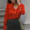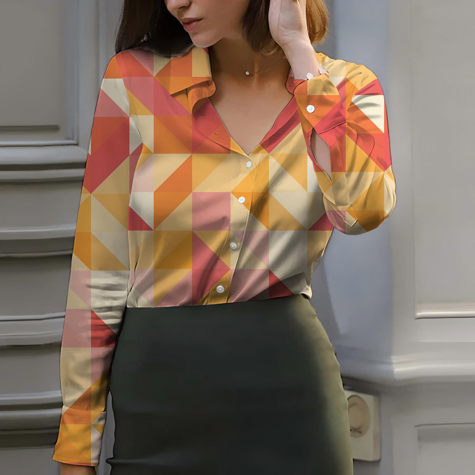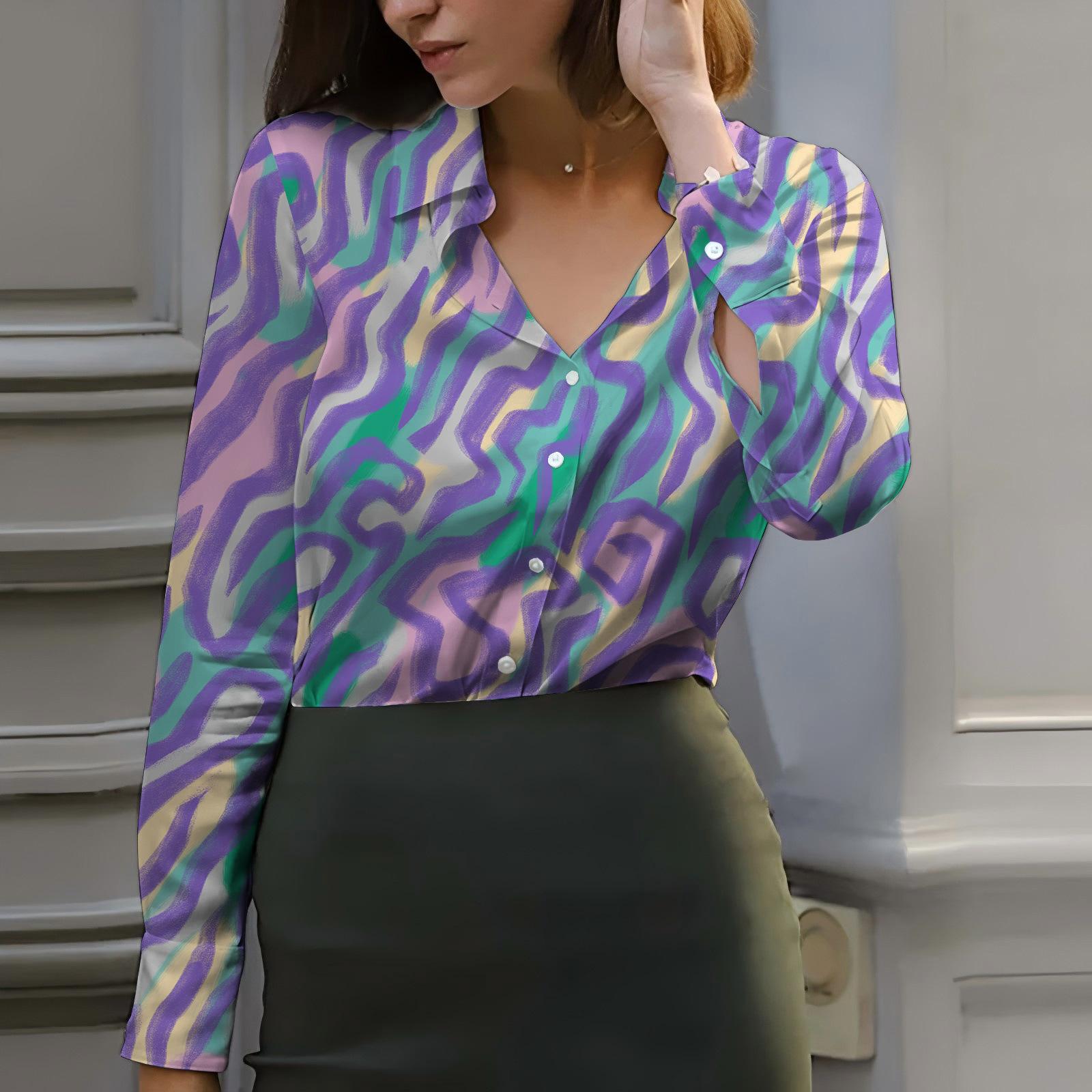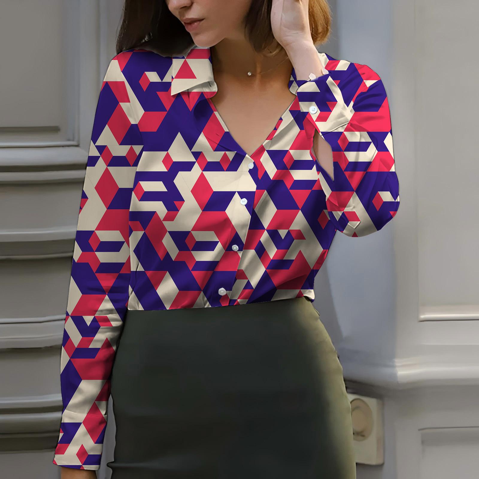 Camisas de Moda Transfronteriza Europea y Americana 2024 Elegantes Camisas de Manga Larga con Estampado Digital de Primavera y Otoño Tops Cárdigan Versátiles para Mujer