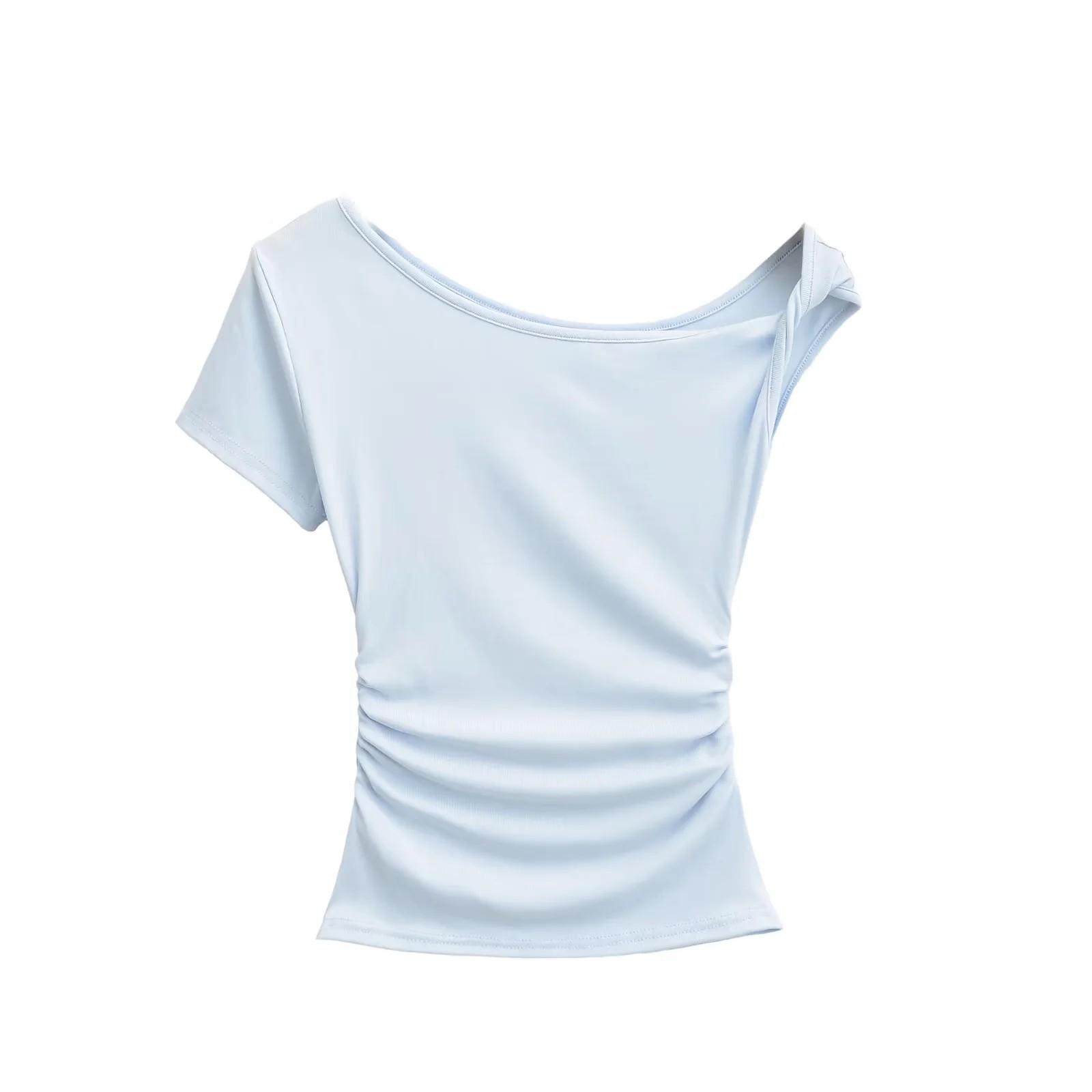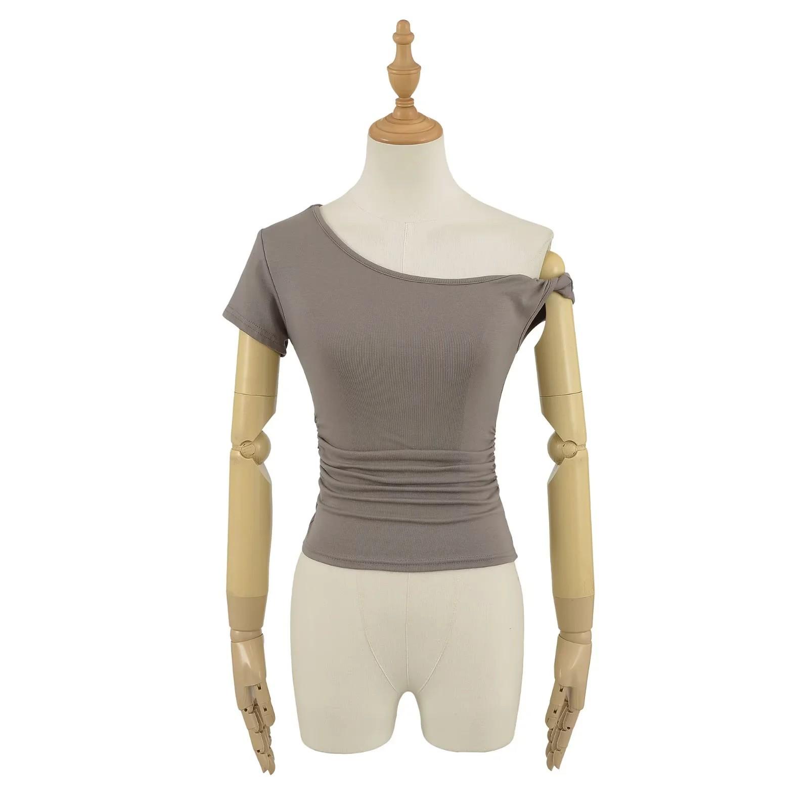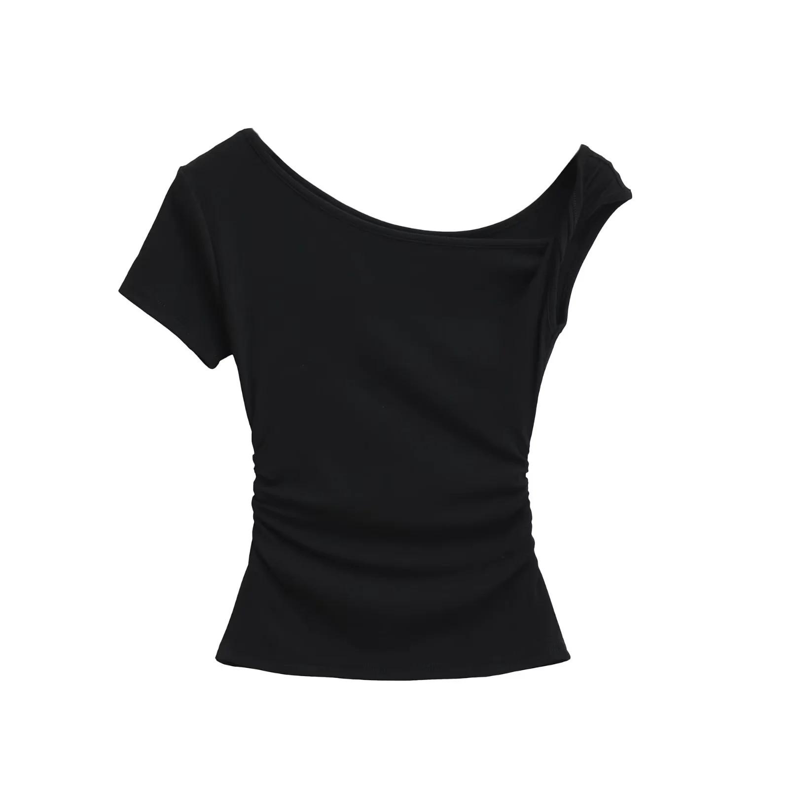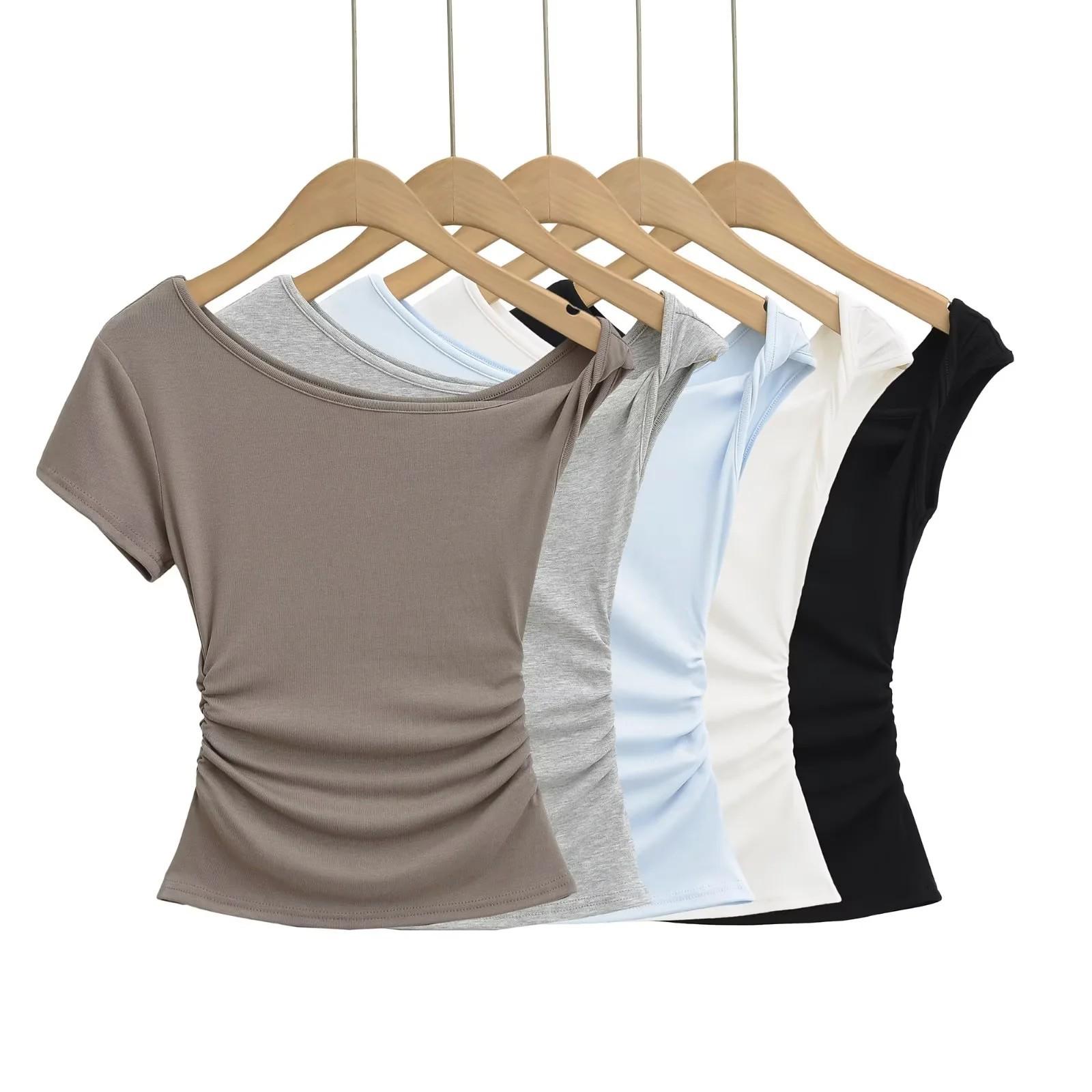 Compra Estilo Chica Caliente Sexy Hombro Descubierto Asimétrico Manga Corta Camiseta Mujer Sencillo Look Adelgazante Top Verano Nueva Moda Camiseta Básica al por mayor en Joom.pro