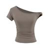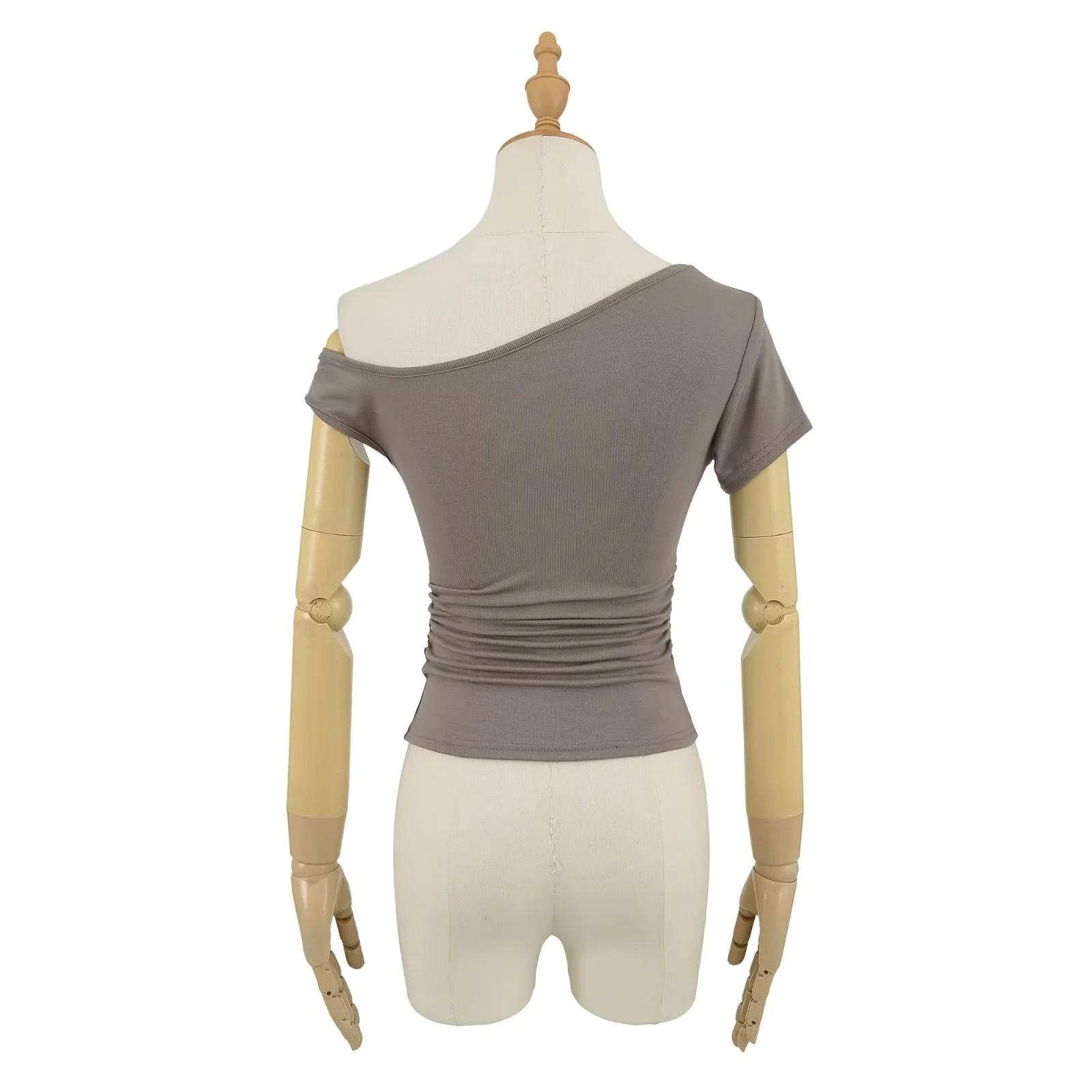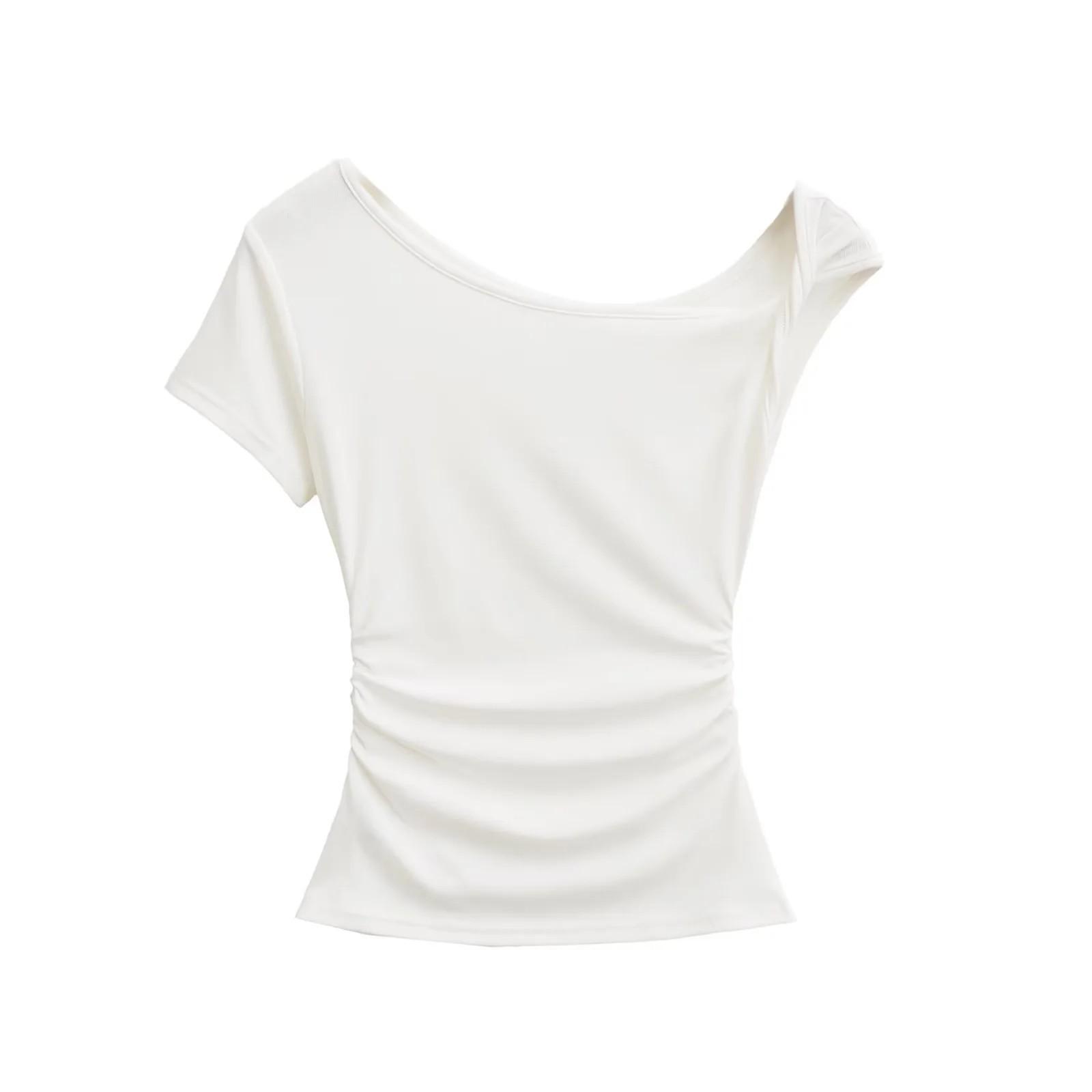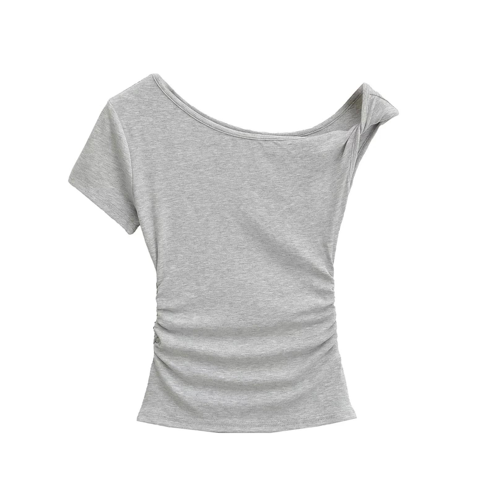 Compra Estilo Chica Caliente Sexy Hombro Descubierto Asimétrico Manga Corta Camiseta Mujer Sencillo Look Adelgazante Top Verano Nueva Moda Camiseta Básica al por mayor en Joom.pro