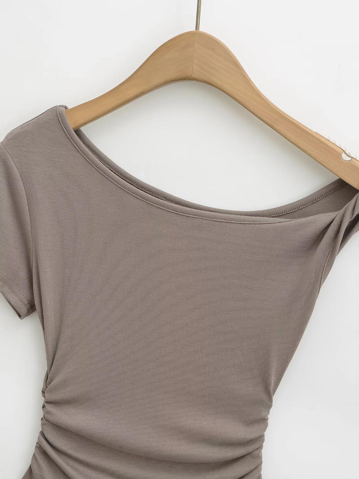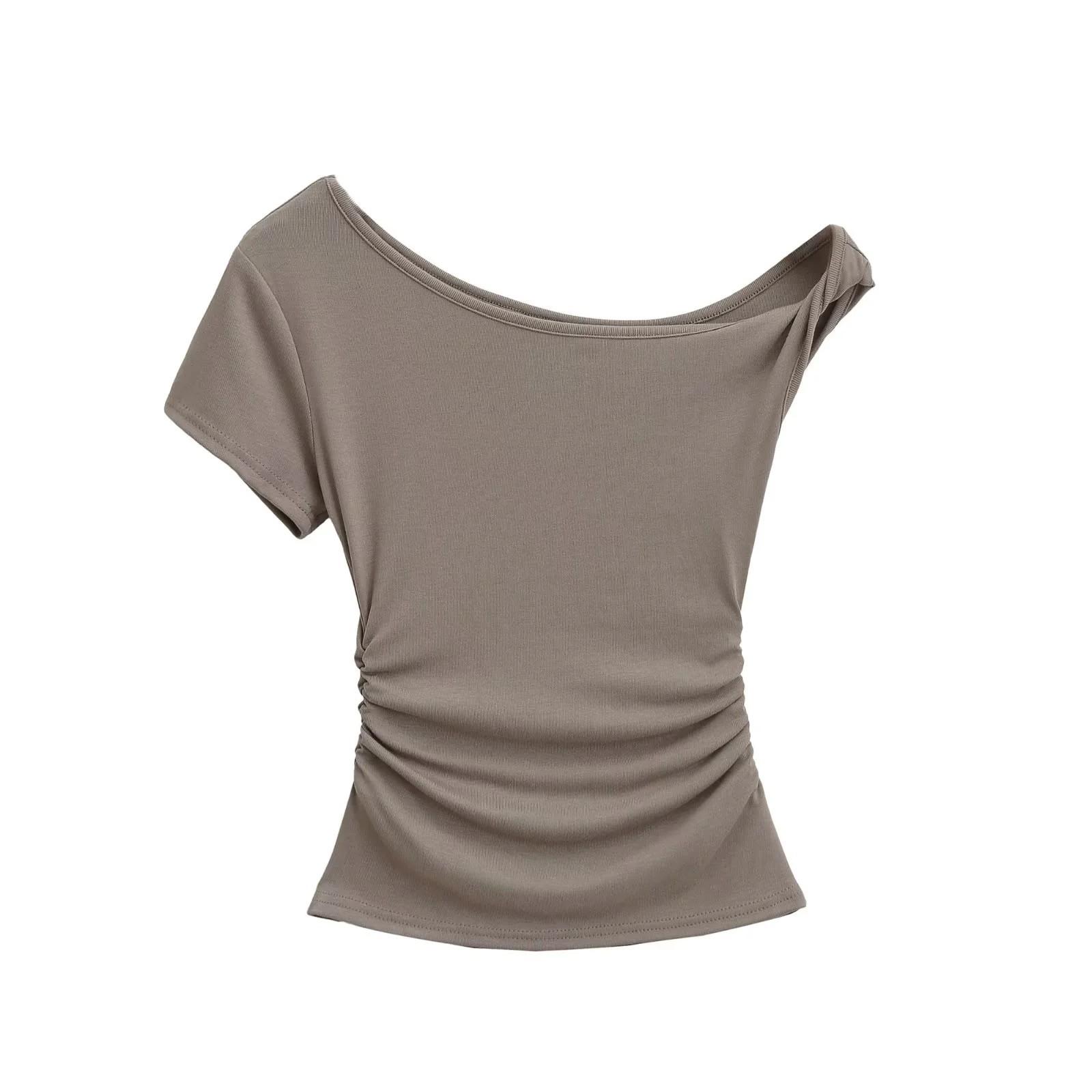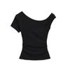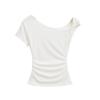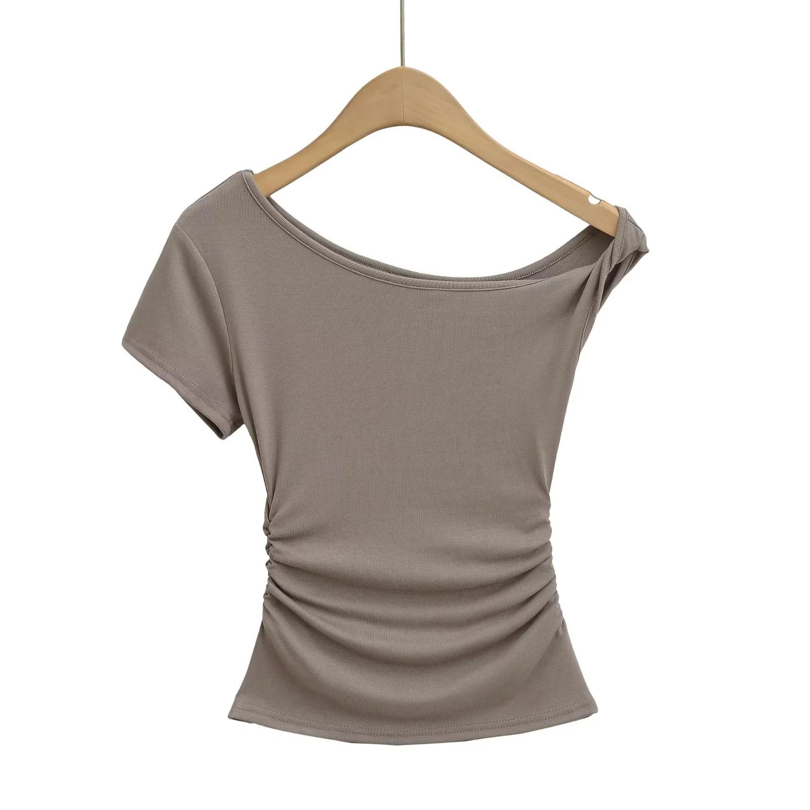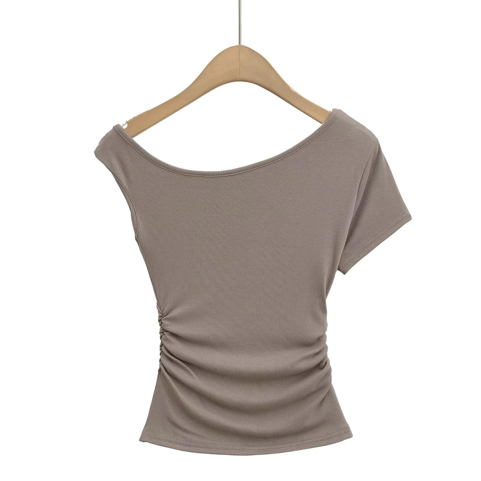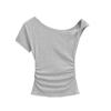 Estilo Chica Caliente Sexy Hombro Descubierto Asimétrico Manga Corta Camiseta Mujer Sencillo Look Adelgazante Top Verano Nueva Moda Camiseta Básica
