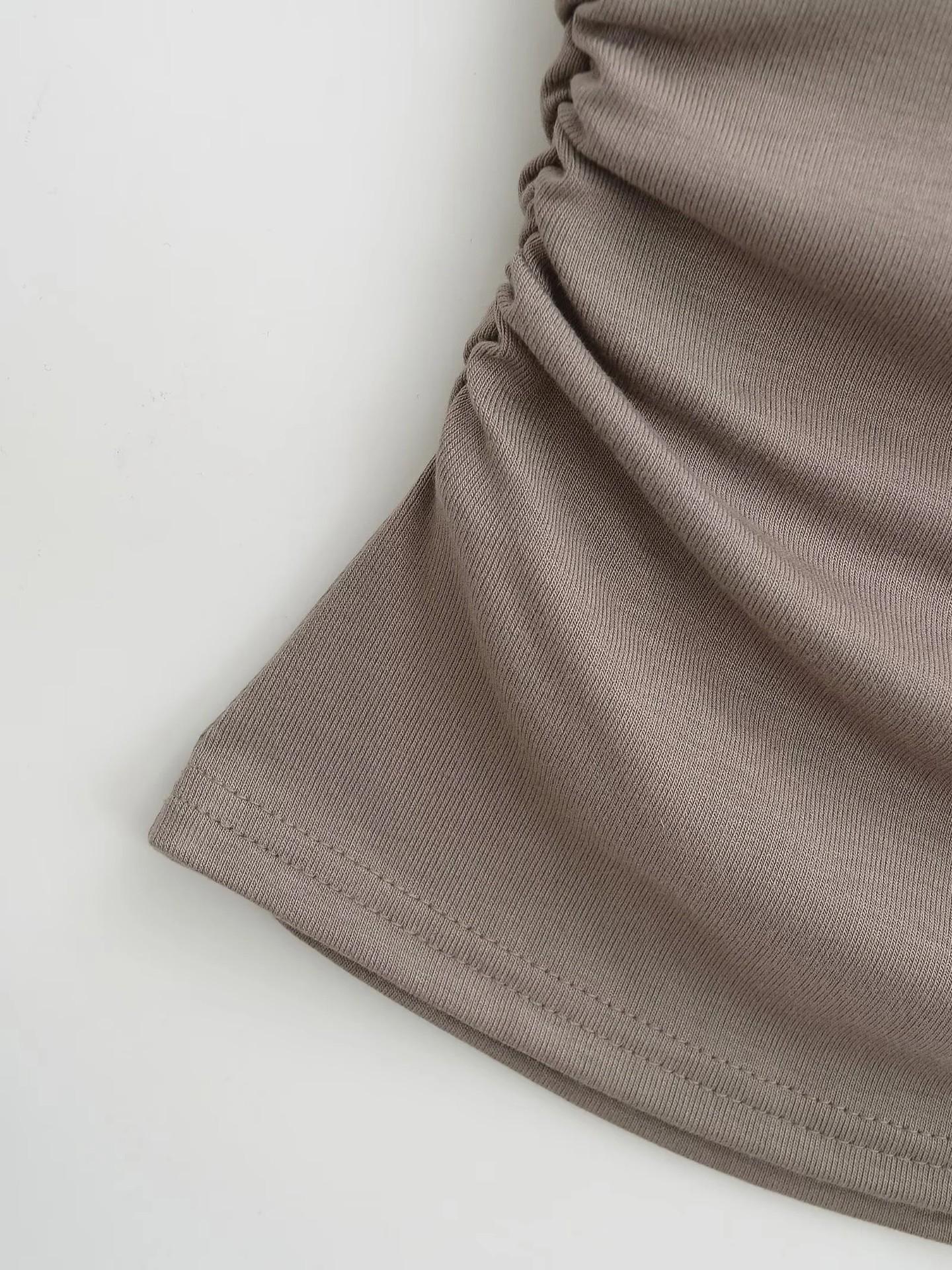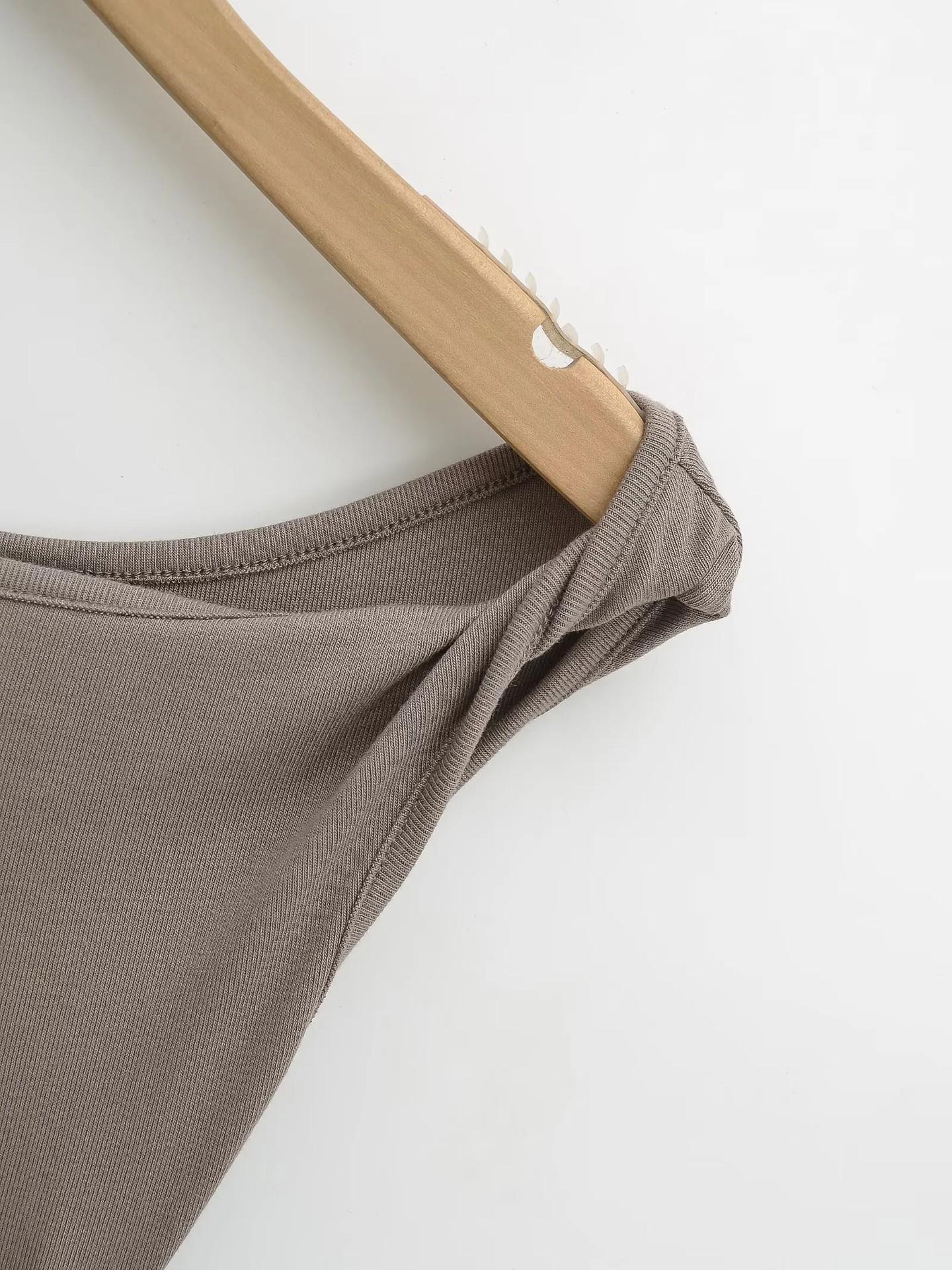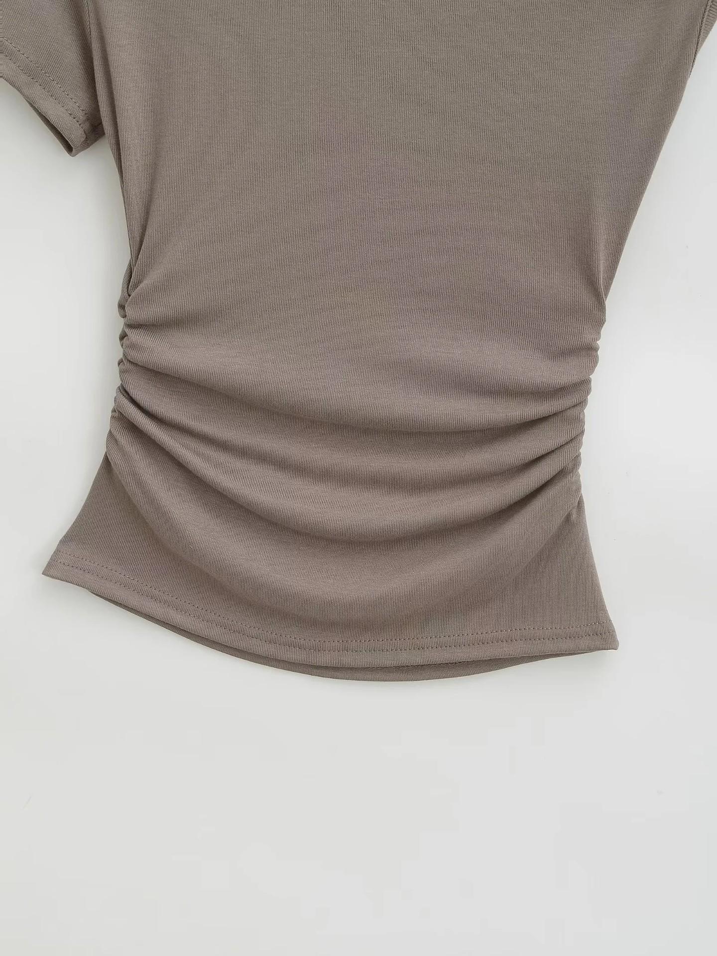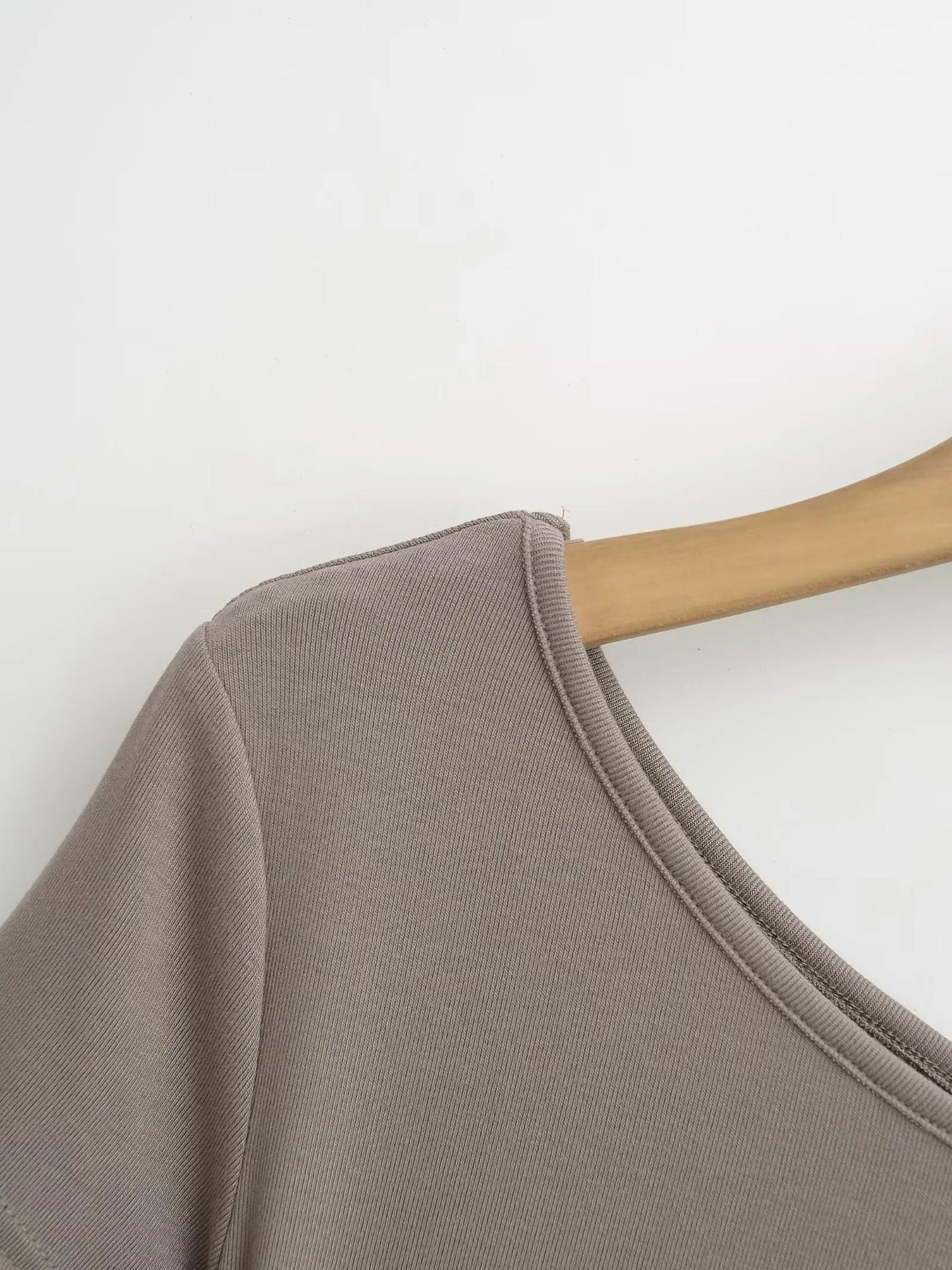 Estilo Chica Caliente Sexy Hombro Descubierto Asimétrico Manga Corta Camiseta Mujer Sencillo Look Adelgazante Top Verano Nueva Moda Camiseta Básica