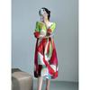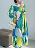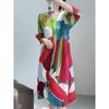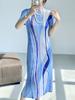 Miyake 2025 Primavera y Verano Nuevo Diseño Original Estampado Cuello Redondo Ajustado Vestido Plisado Falda Elegante Cubre Carne de Largo Medio