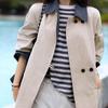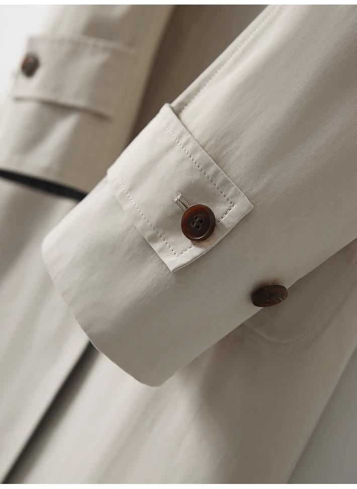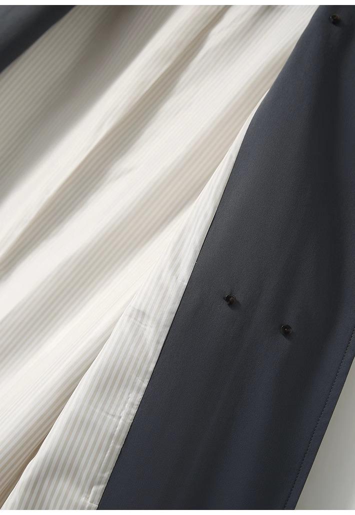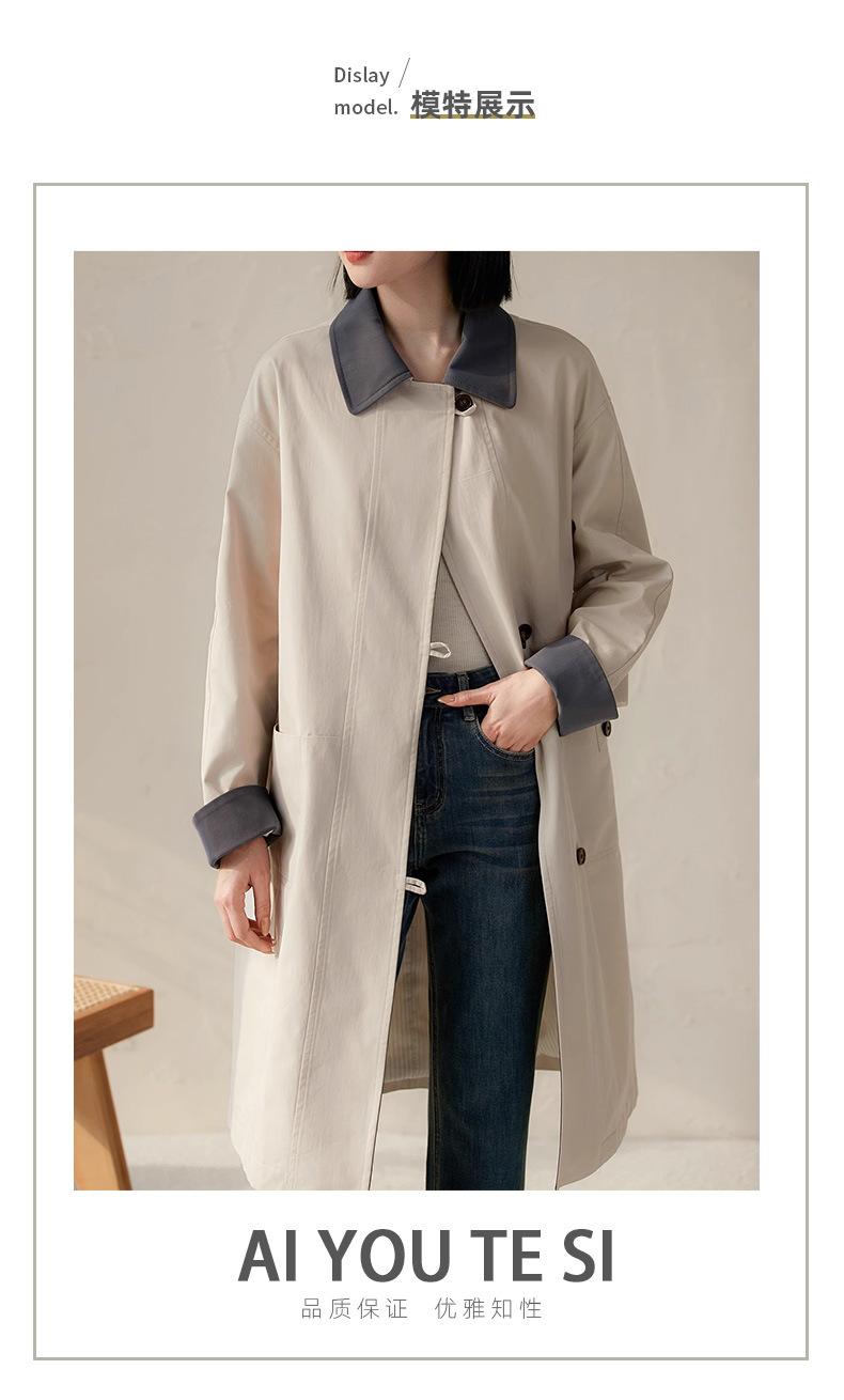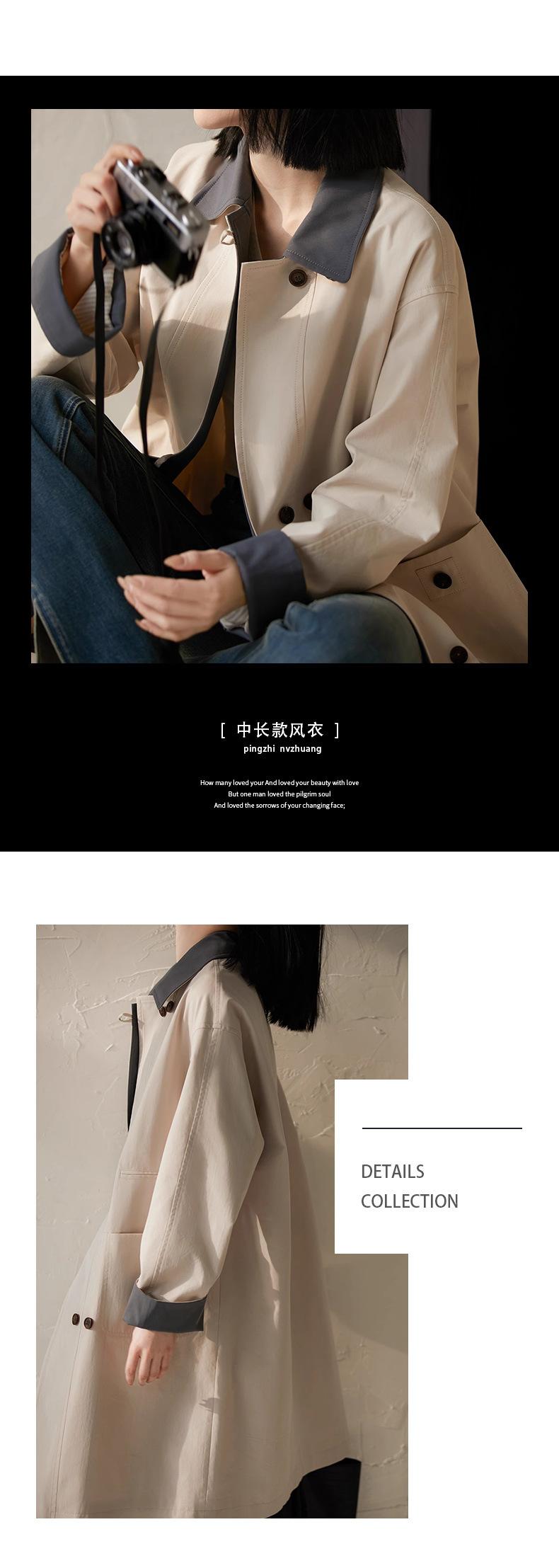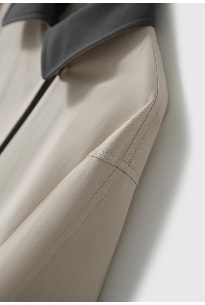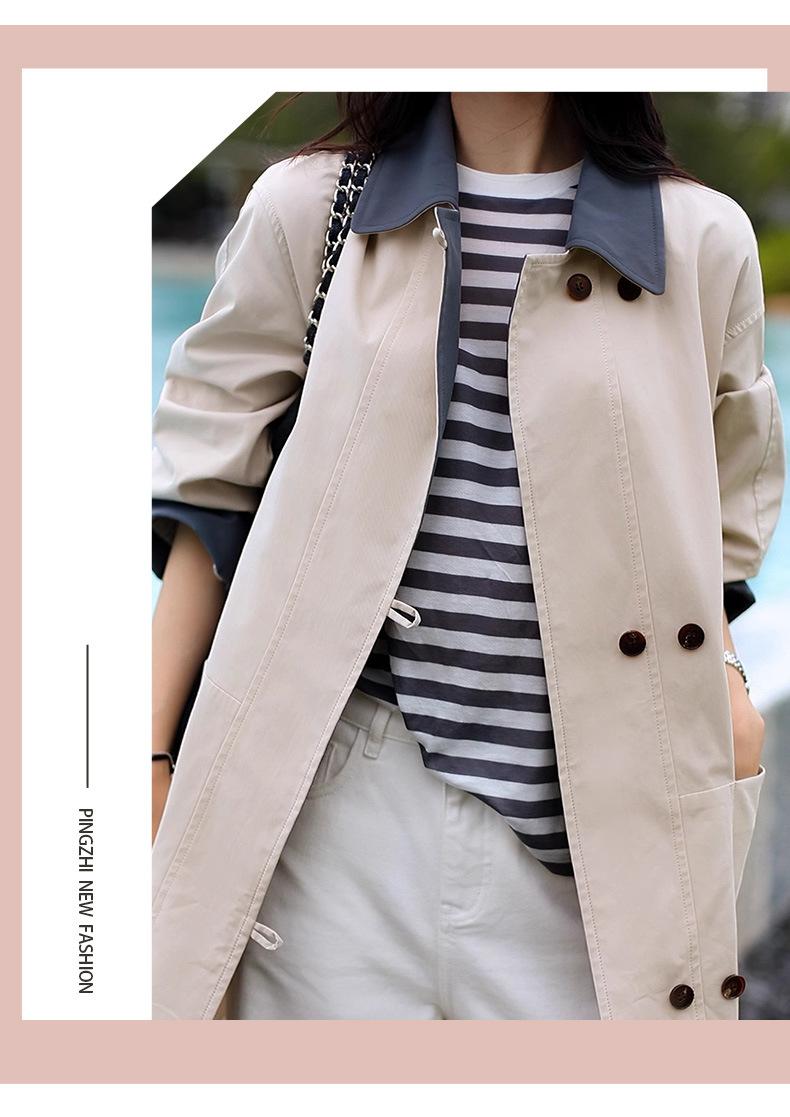 Abrigo Trench de Doble Botonadura con Cuello Patchwork Texturizado, Abrigo Holgado de Largo Medio Moderno y Artístico, Ropa Nueva para Mujer Primavera y Otoño 2025