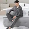 Pijama de hombre de primavera y otoño, cárdigan de manga larga, traje sencillo a rayas de alta gama, 100% algodón, ropa informal fina para el hogar