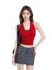 Camisola Roja Halter Diseño de Verano para Mujer Espalda Descubierta Espalda Hermosa Base Interior Top Corto sin Mangas Spice Girl