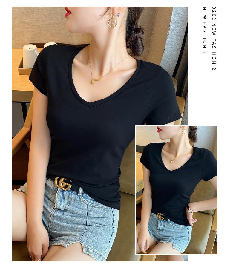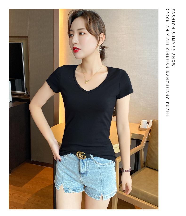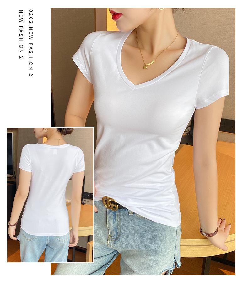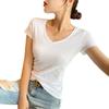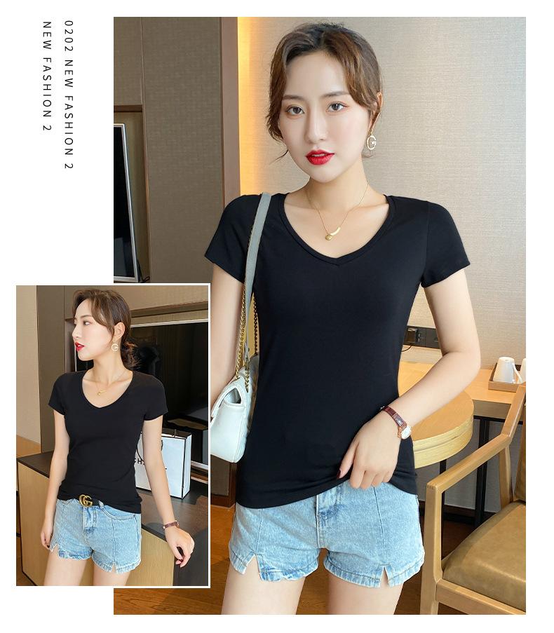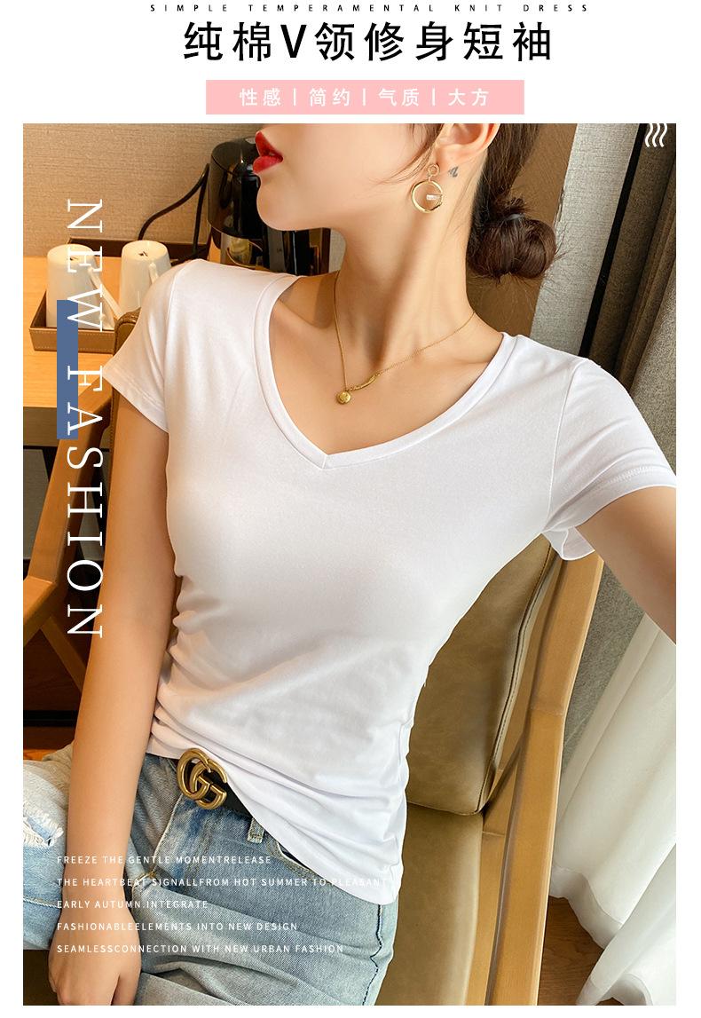 Compra Top de Mujer de Algodón Puro de Hombro Regular y Manga Corta 2025 Verano Nuevo Cuello en V Slim Sencillo Camiseta de Manga Corta para Mujer Camiseta Básica al Por Mayor al por mayor en Joom.pro