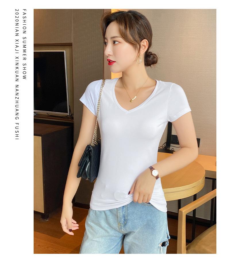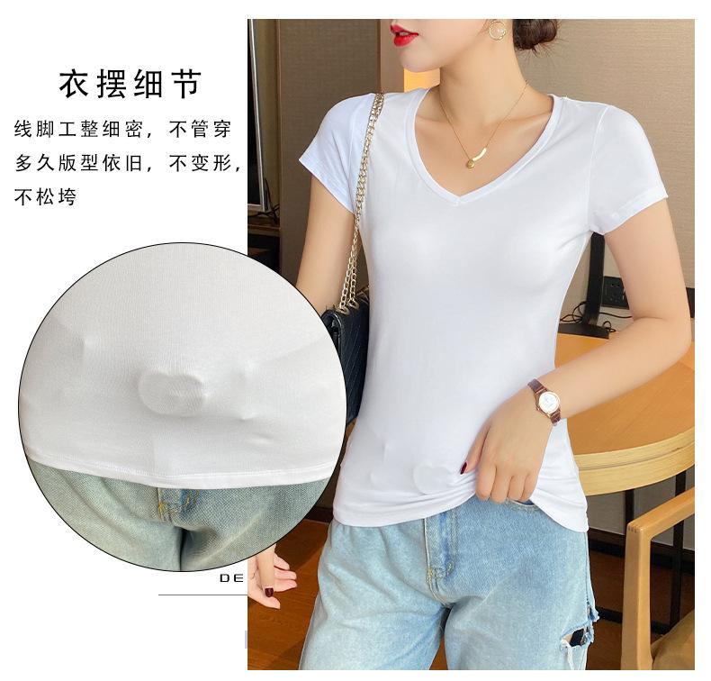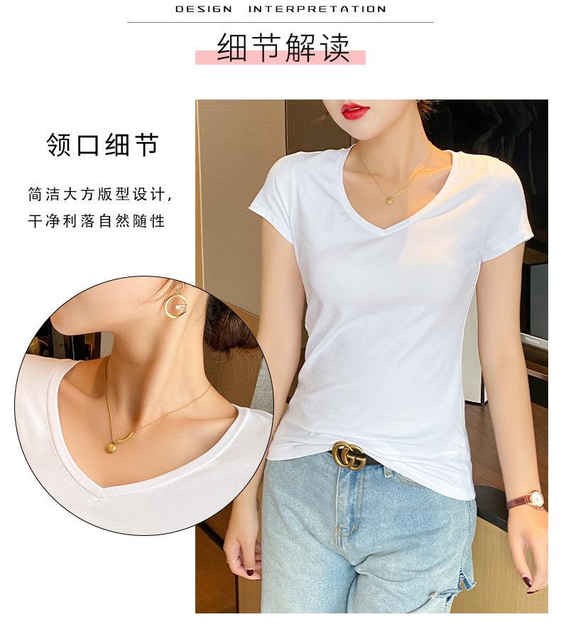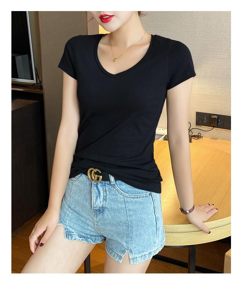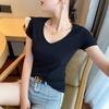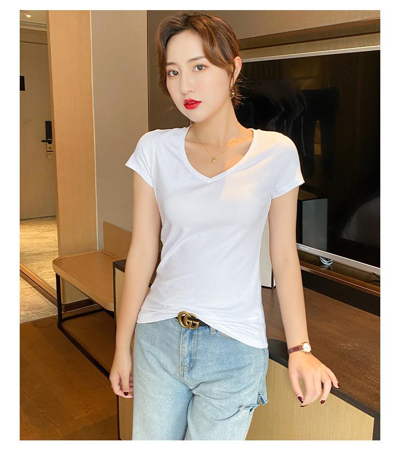 Compra Top de Mujer de Algodón Puro de Hombro Regular y Manga Corta 2025 Verano Nuevo Cuello en V Slim Sencillo Camiseta de Manga Corta para Mujer Camiseta Básica al Por Mayor al por mayor en Joom.pro