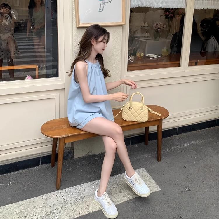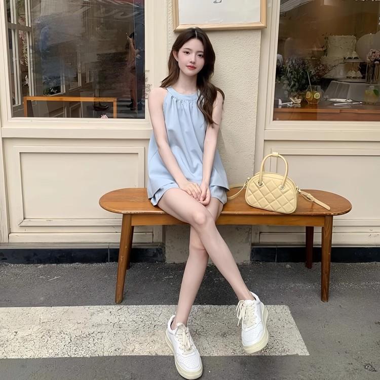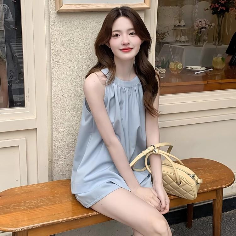 Traje de Maternidad Delgado 2025 Nuevo Estilo Estilo Holgazán Cómodo y Delgado Rosa Cuello Redondo Top sin Mangas Shorts Conjunto de Dos Piezas