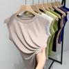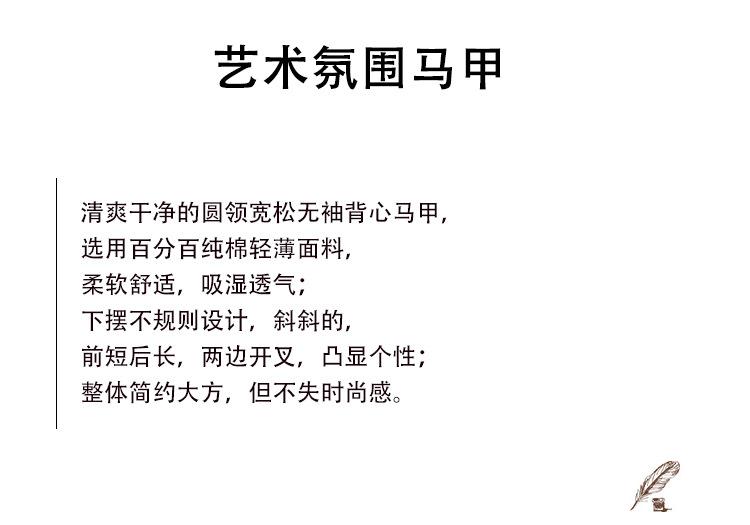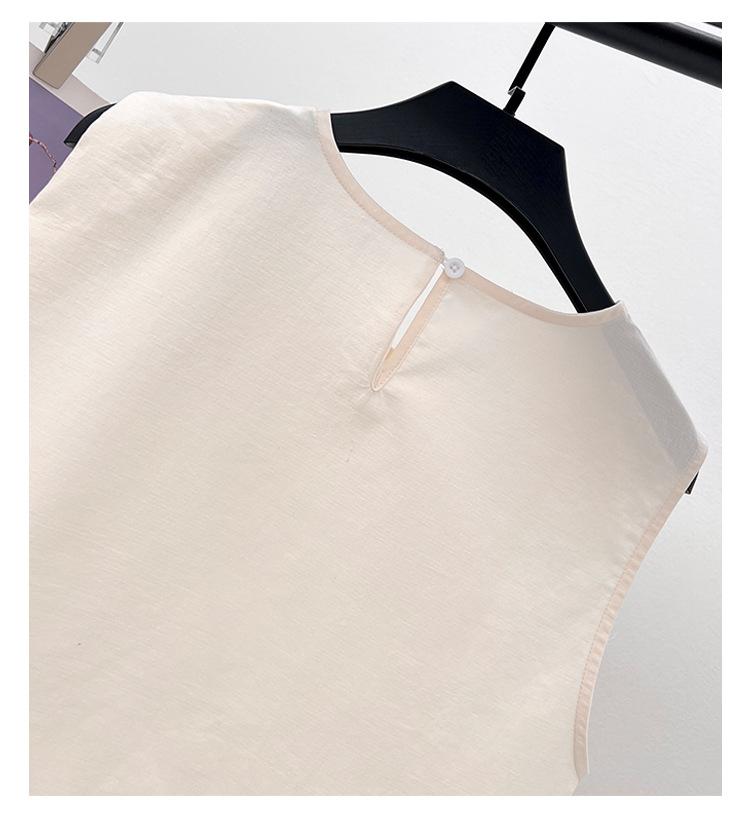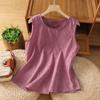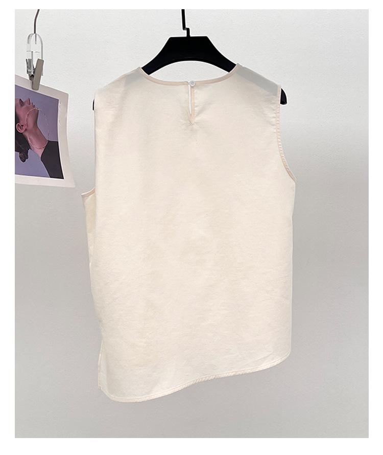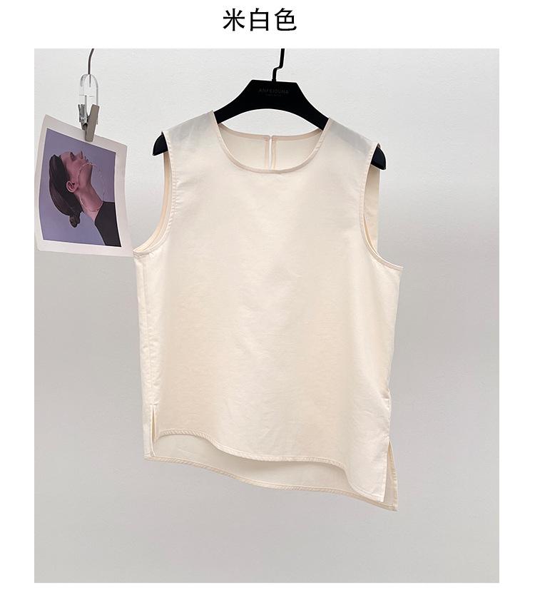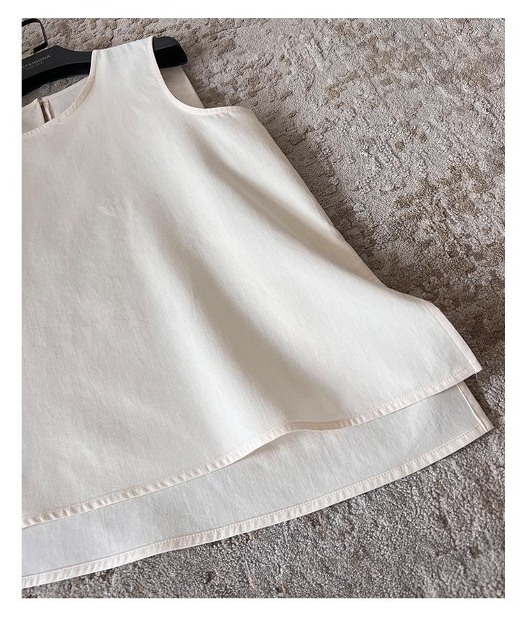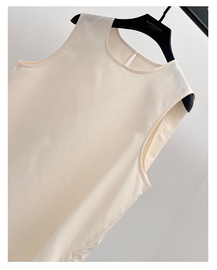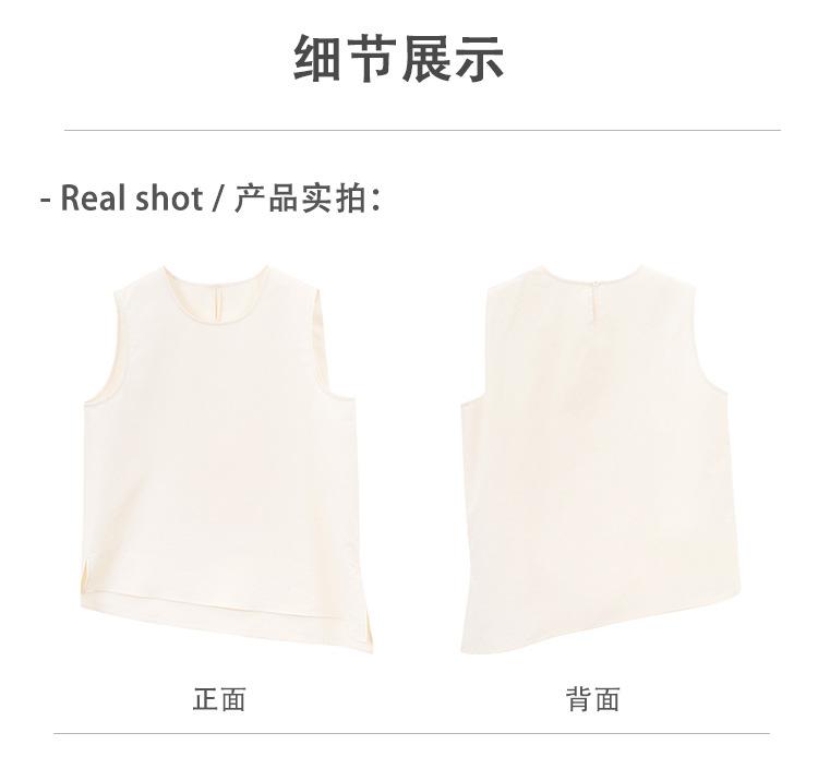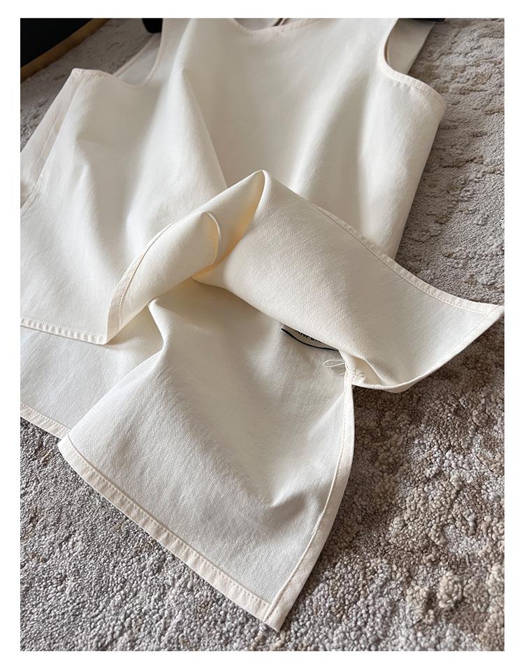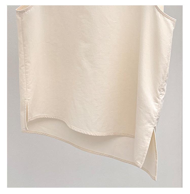Amfiona 2025 Nuevo Estilo Blanco Roto Algodón Puro Dobladillo con Abertura Asimétrica Cuello Redondo Chaleco sin Mangas Chaleco de Mujer