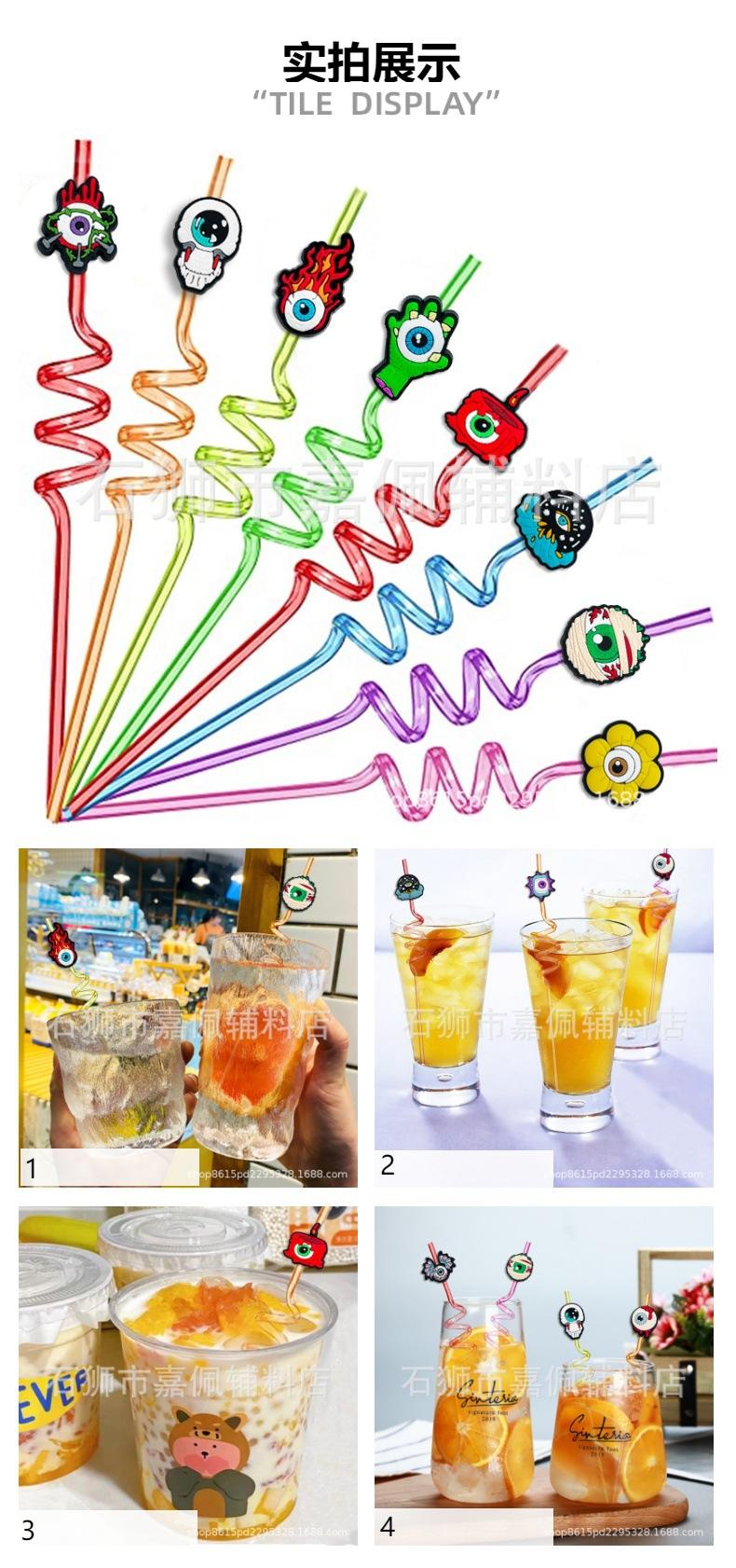 Pajita Ojo del Diablo Mascota Pajita Espiral Succión Dibujos Animados Personalizada Parche Pajita Grado Alimenticio Color Decorativo Tubo Flexible