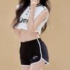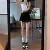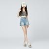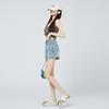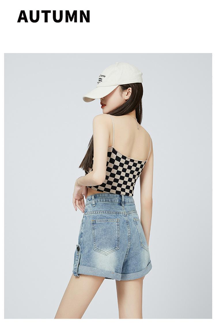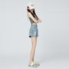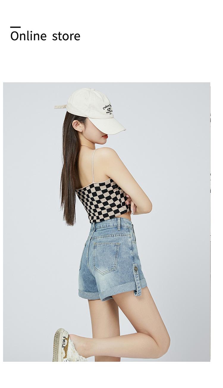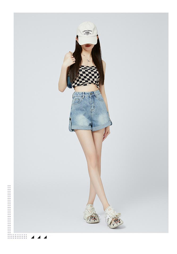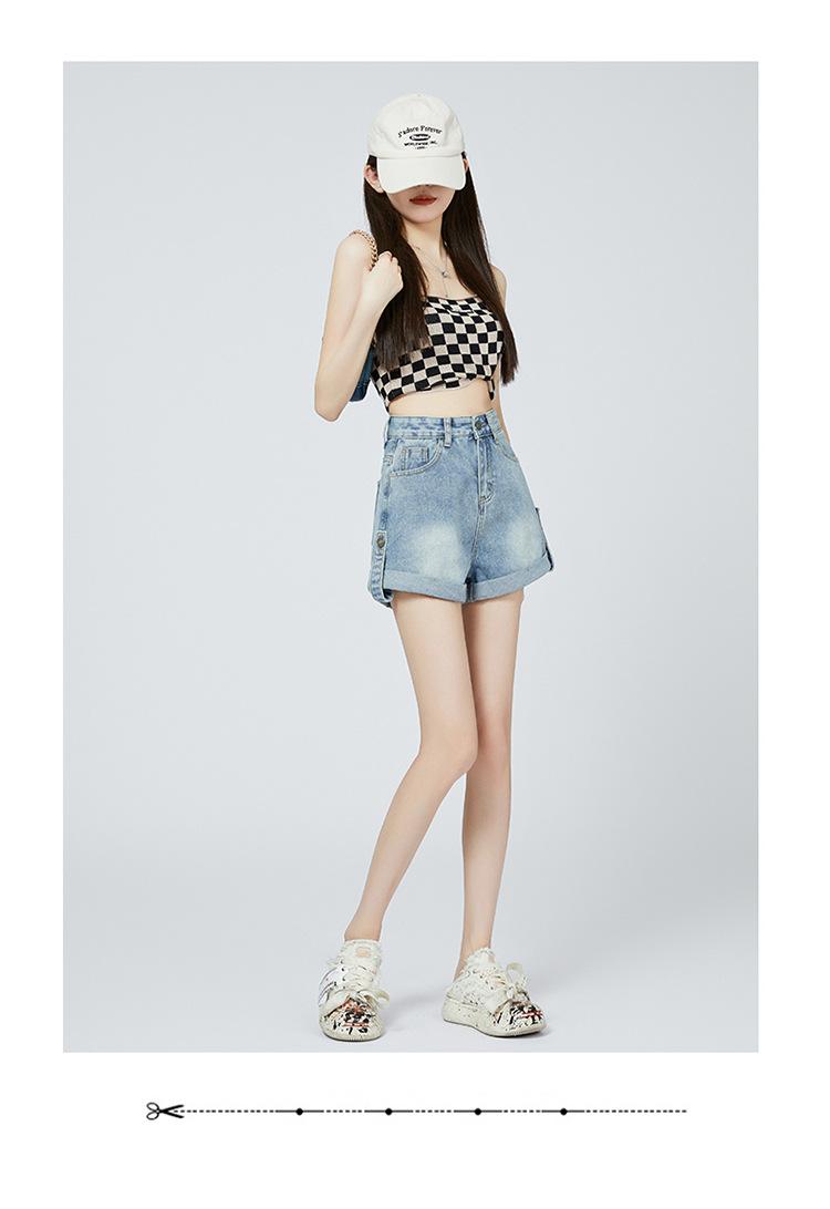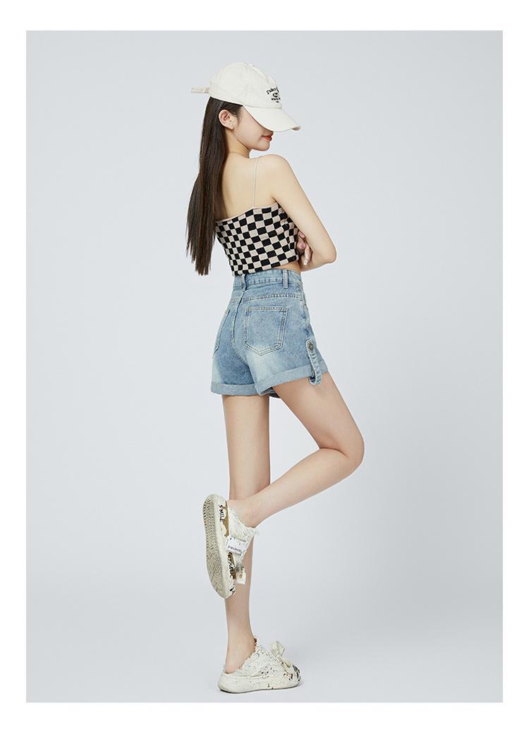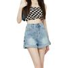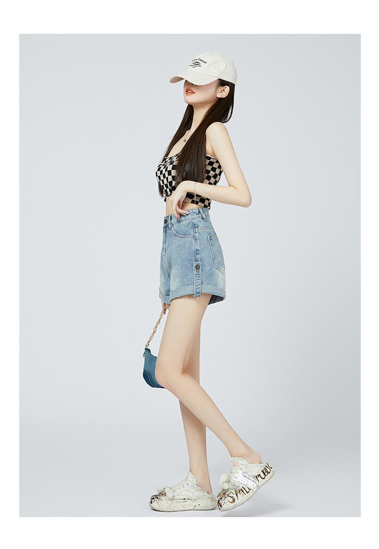 Pantalones cortos de mezclilla de cintura alta estilo americano de pierna ancha para mujer, pantalones cortos cortos tipo A, pantalones cortos hot pants, verano para mujer, azul nostálgico, elastano