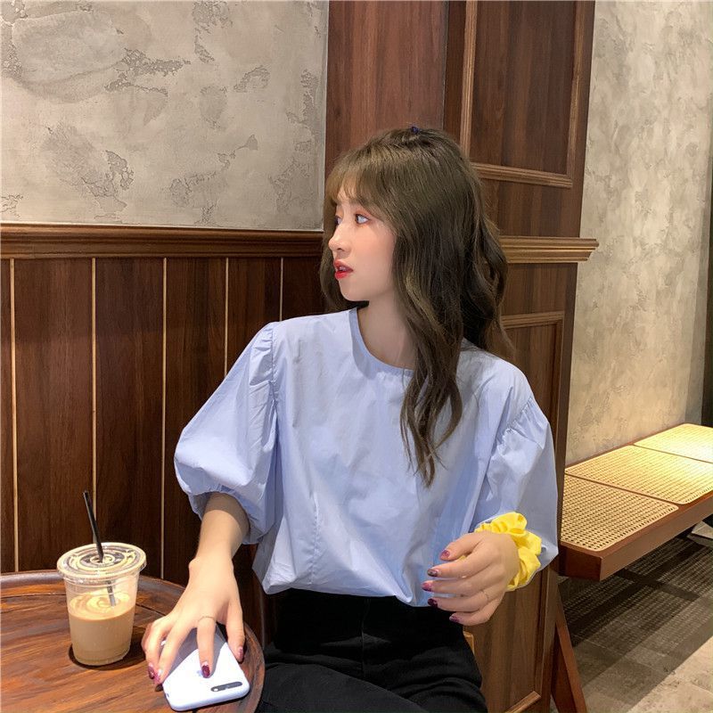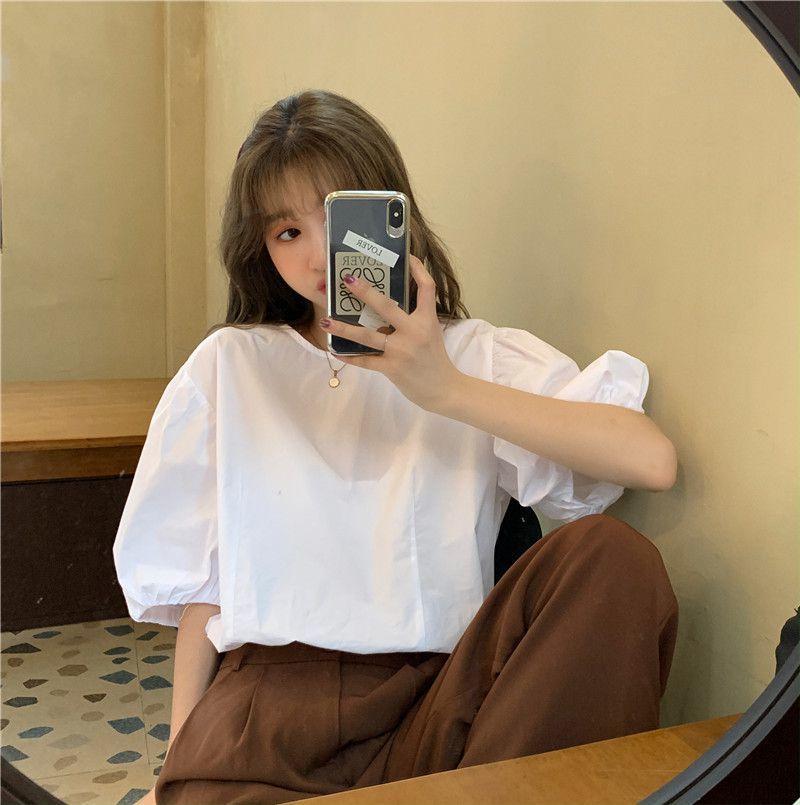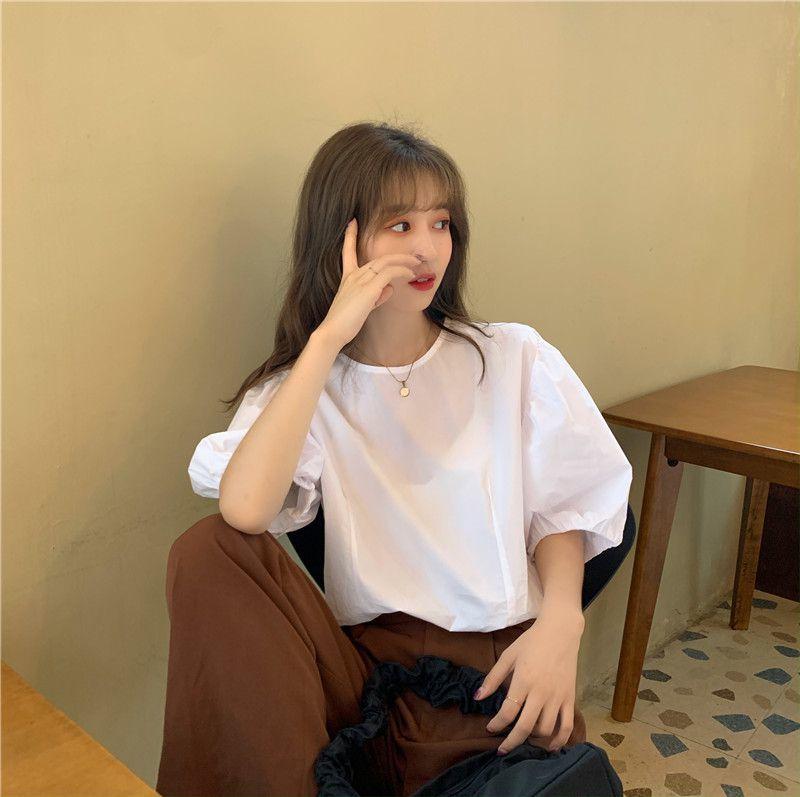 Compra Top Blanco de Manga Abullonada para Mujer, Camisa Holgada de Manga Corta Estilo Francés con Sentido del Diseño, Versátil Moda Trendy Estilo Hong Kong al por mayor en Joom.pro