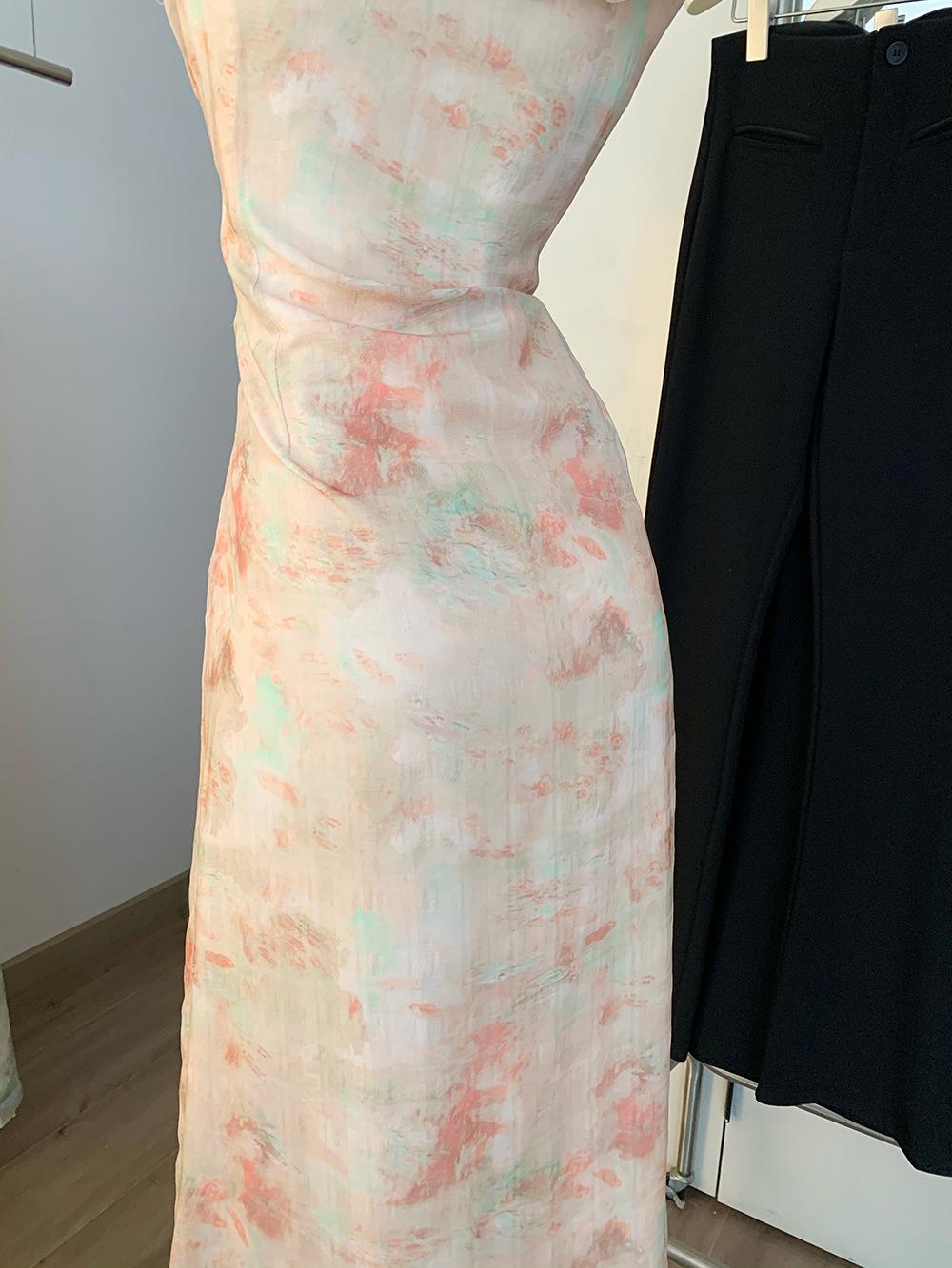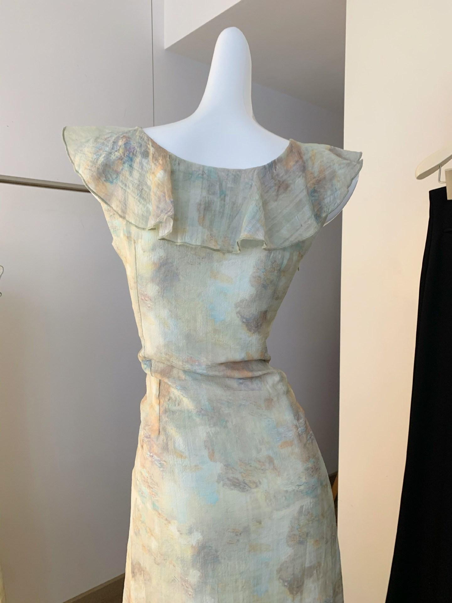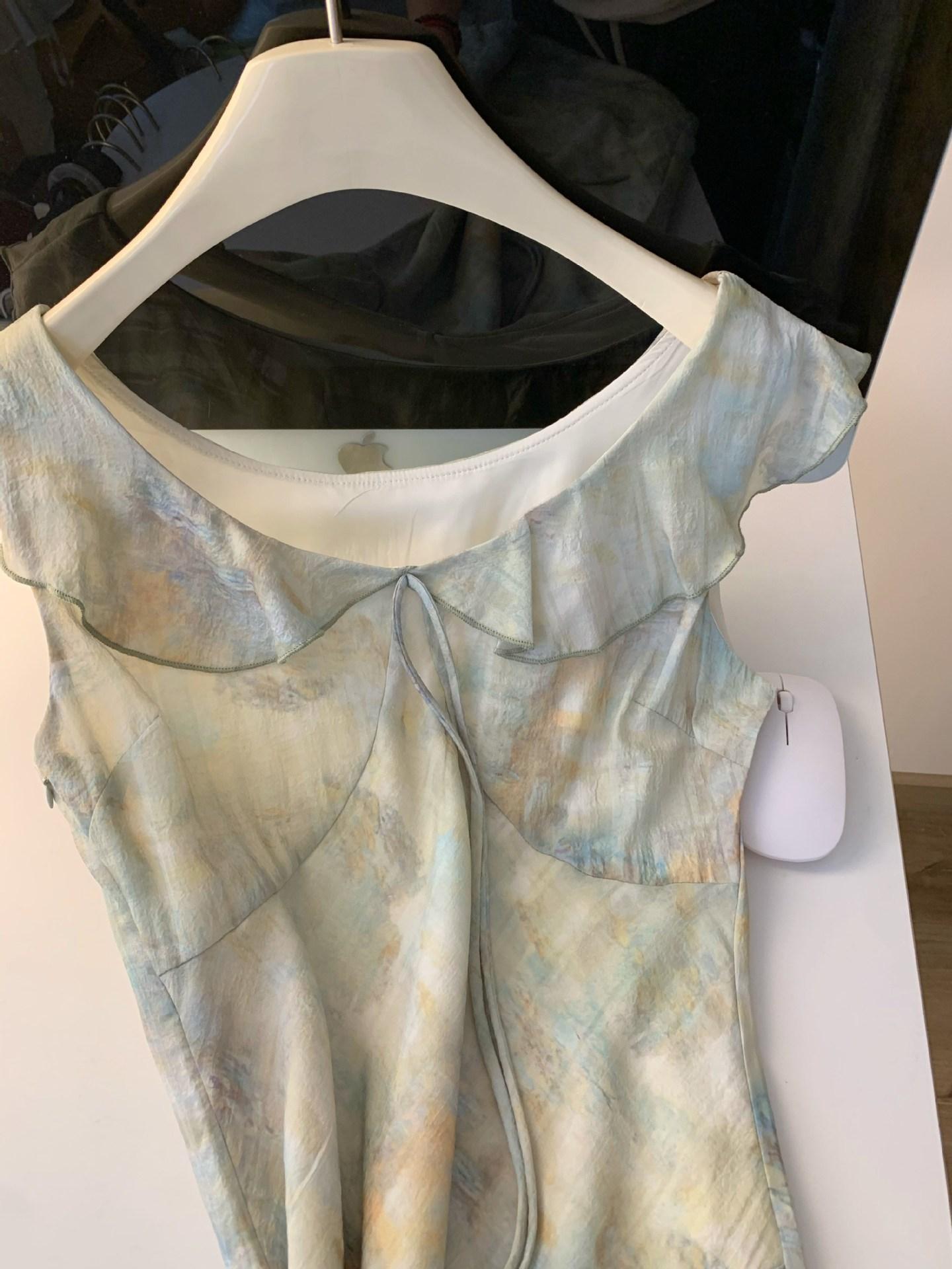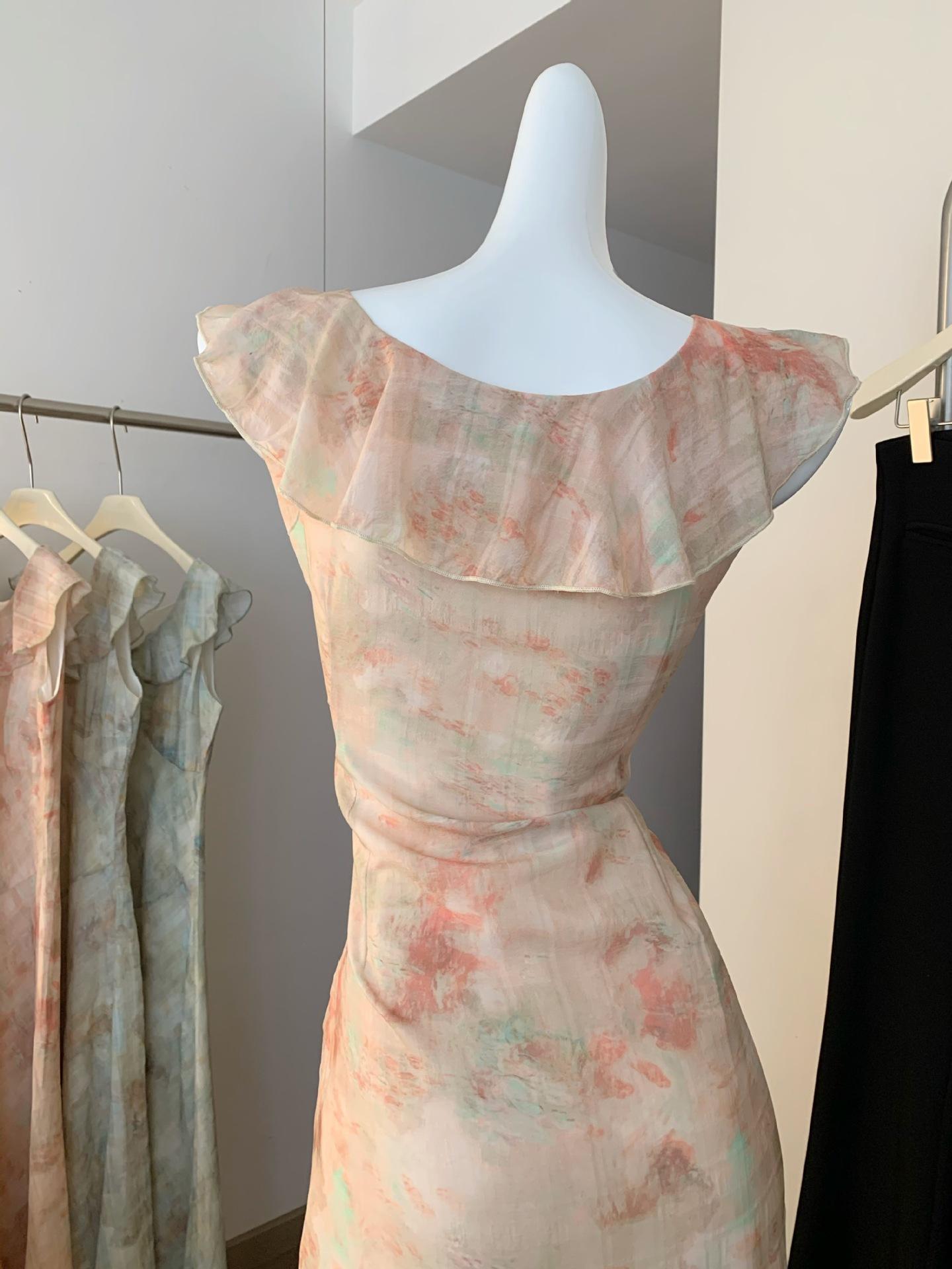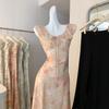 Falda Estampado Francés Balanceándose Nuevo Jacquard Tridimensional de Alta Riqueza Tie-dye Tirantes Vestido de Tirantes Verano Mujer Lazo Cuello U Largo